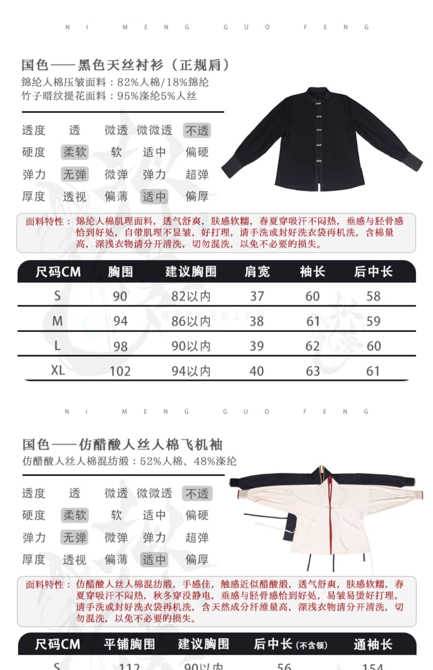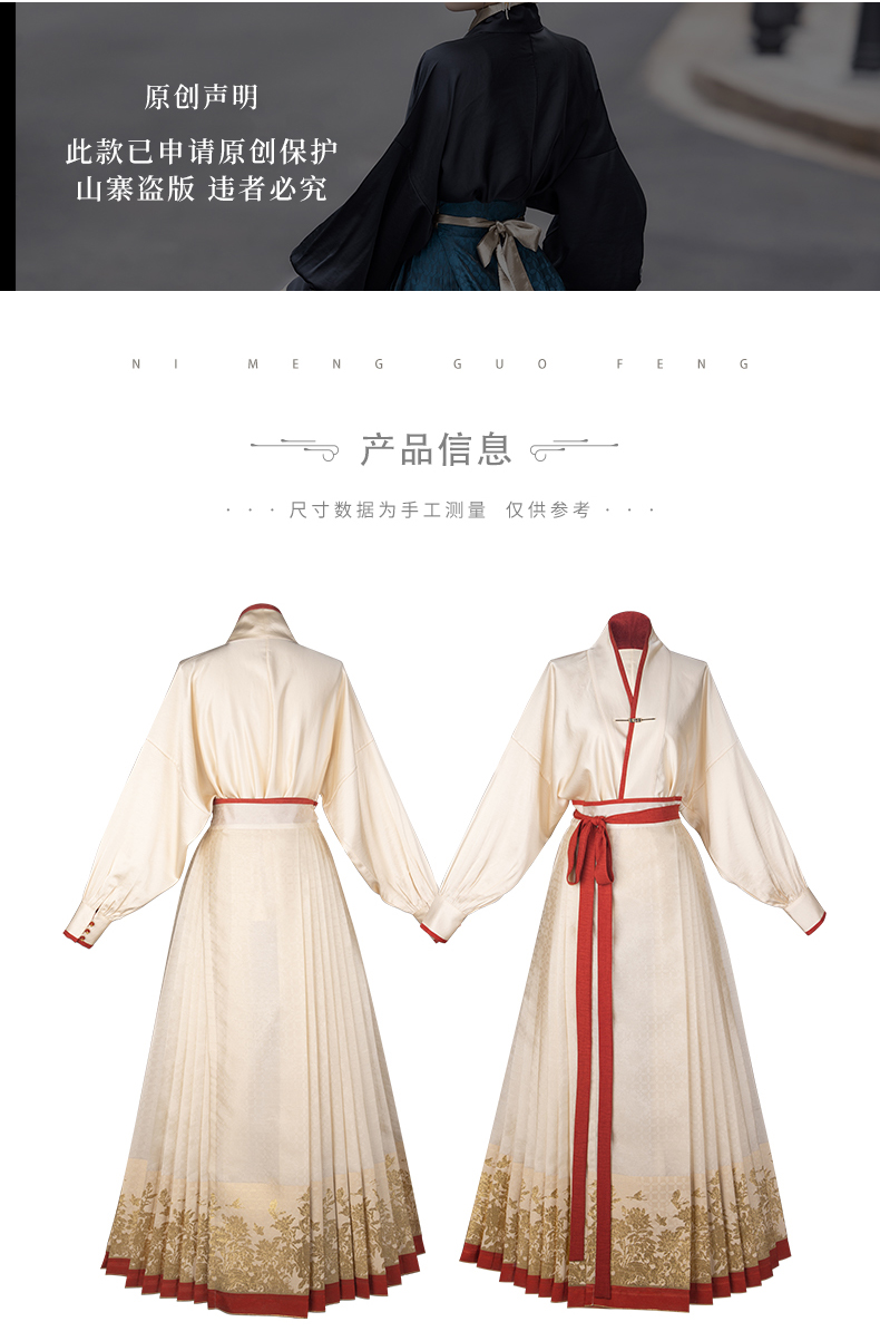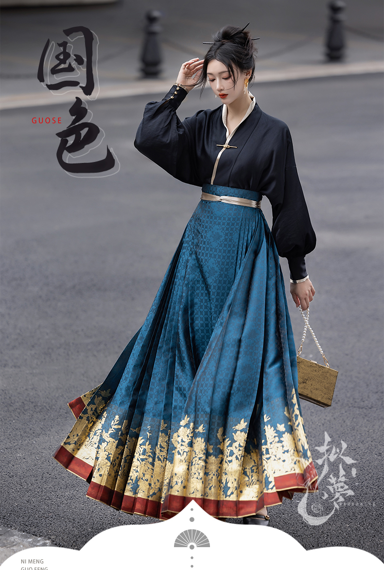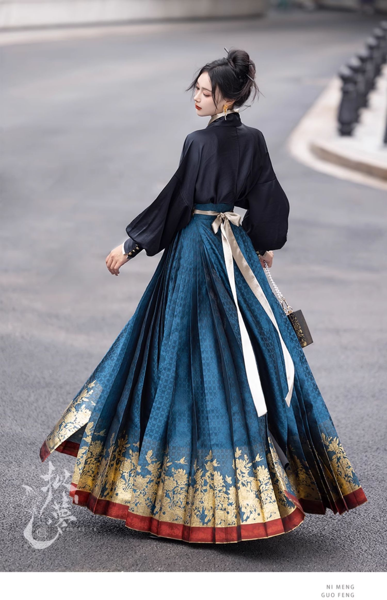 | Color classification | National color black gold 6-meter horse face skirt (please wear underskirt) National color blue gold 6-meter horse face skirt (please wear underskirt) National color white gold 6-meter horse face skirt (please wear underskirt) Oriental Bone New Chinese style black shirt National color black gold airplane sleeves National color red and white airplane sleeves |