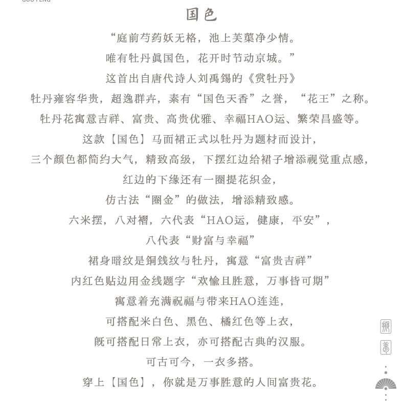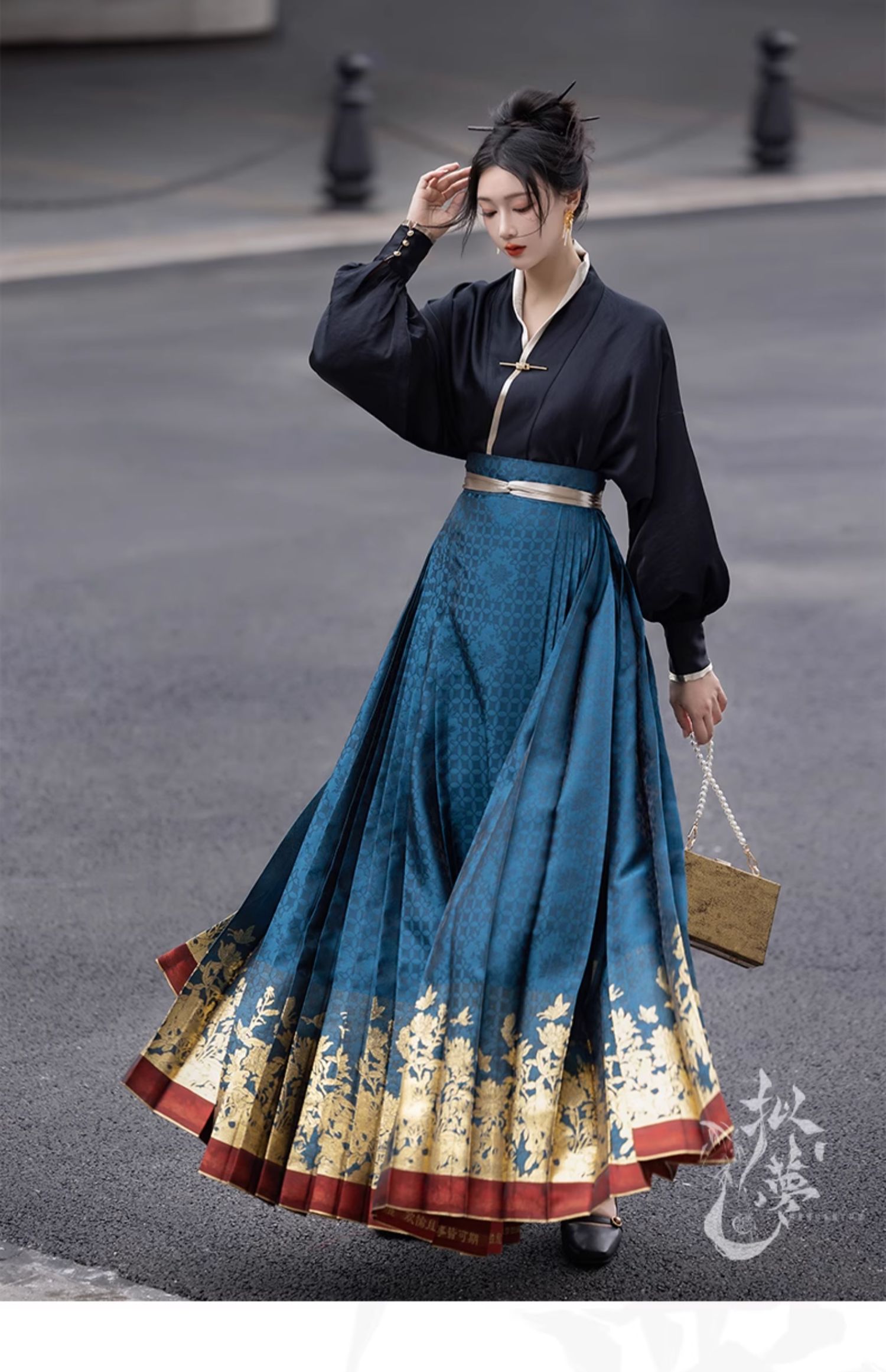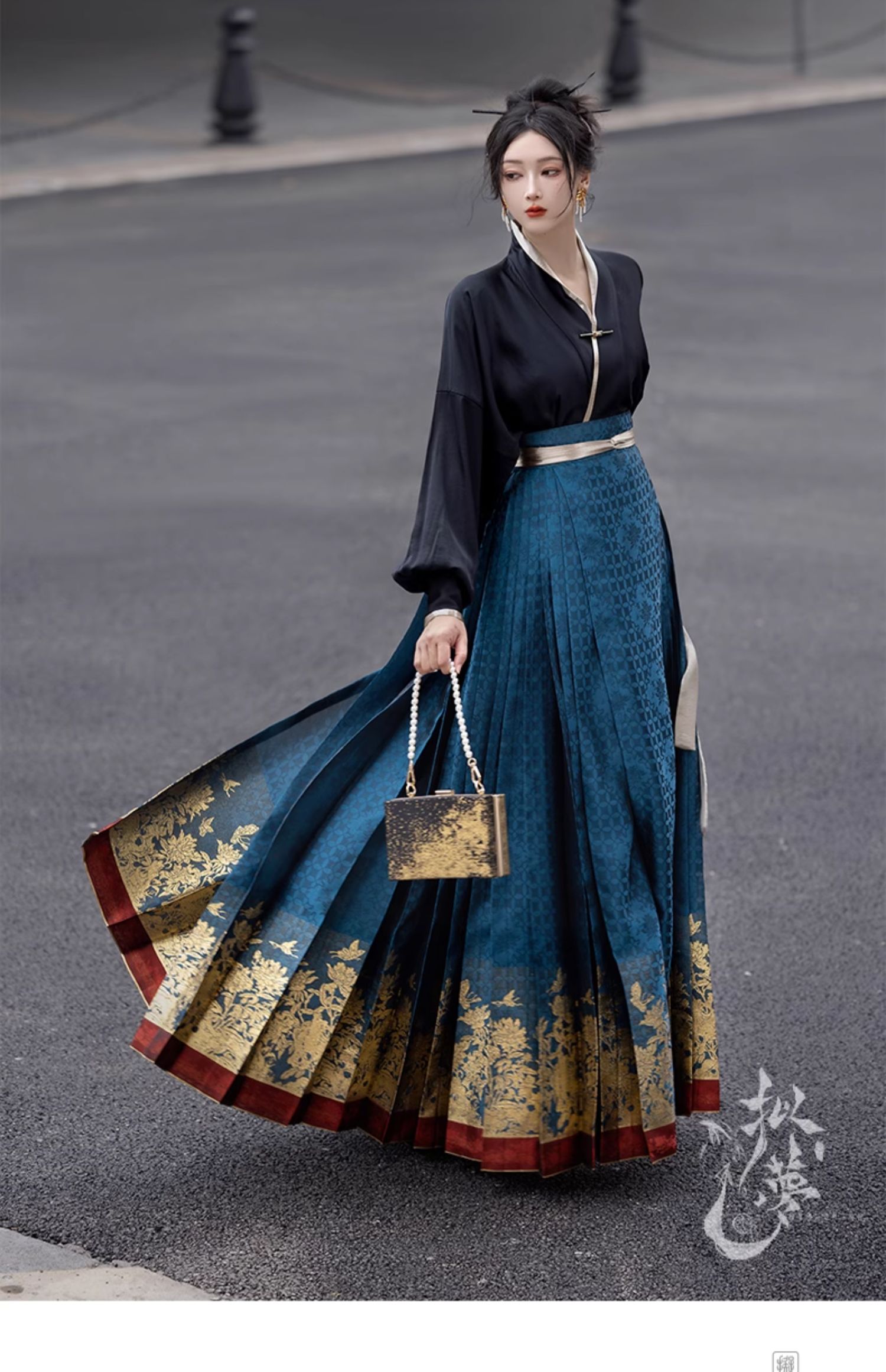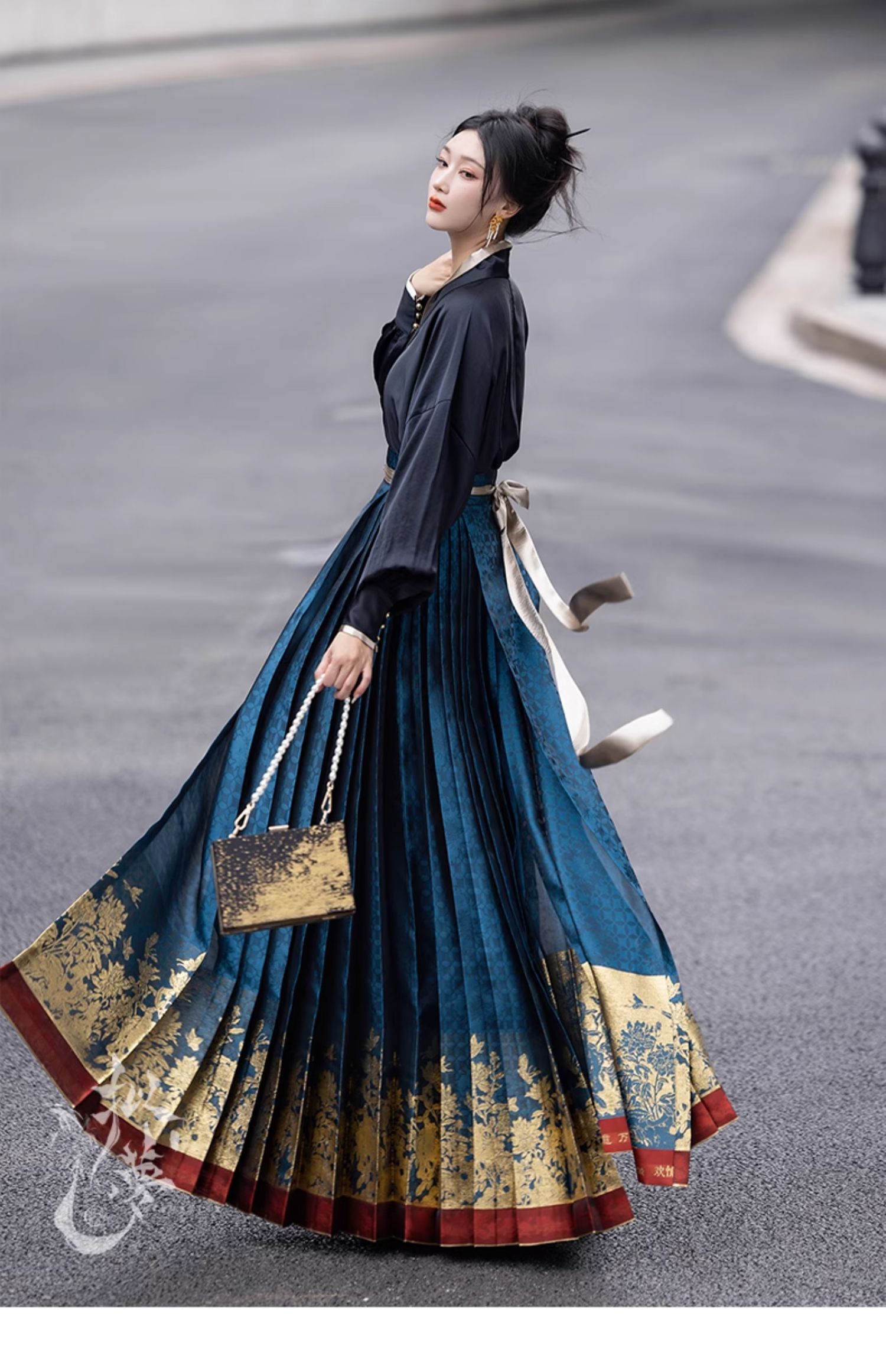 | Color classification | National color black gold 6-meter horse face skirt (please wear underskirt) National color blue gold 6-meter horse face skirt (please wear underskirt) National color white gold 6-meter horse face skirt (please wear underskirt) Oriental Bone New Chinese style black shirt National color black gold airplane sleeves National color red and white airplane sleeves |
