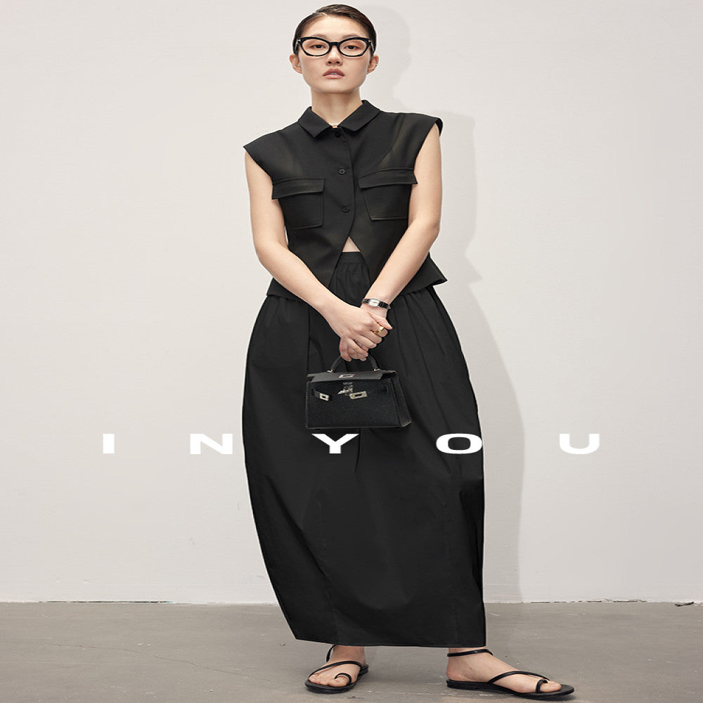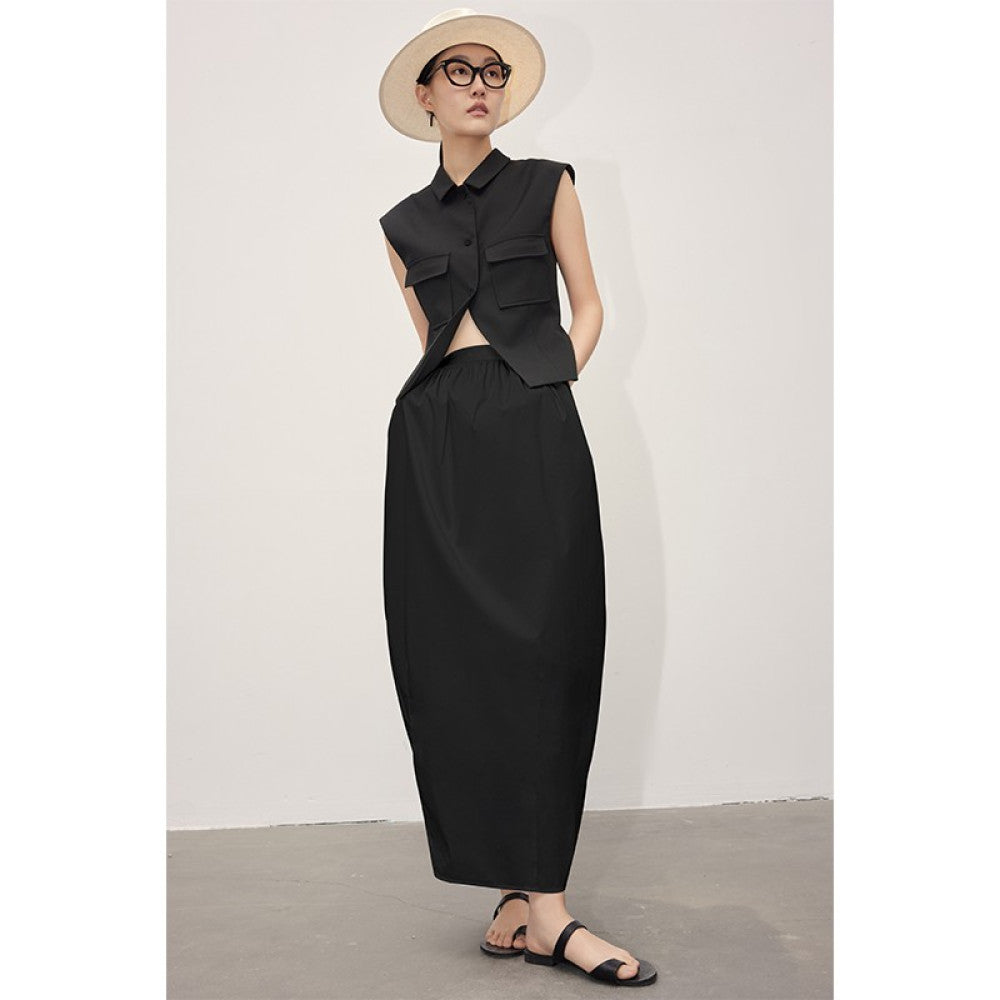 ASAYA-3799: High-Waist A-Line Skirt in Classic Black & White🤍✨