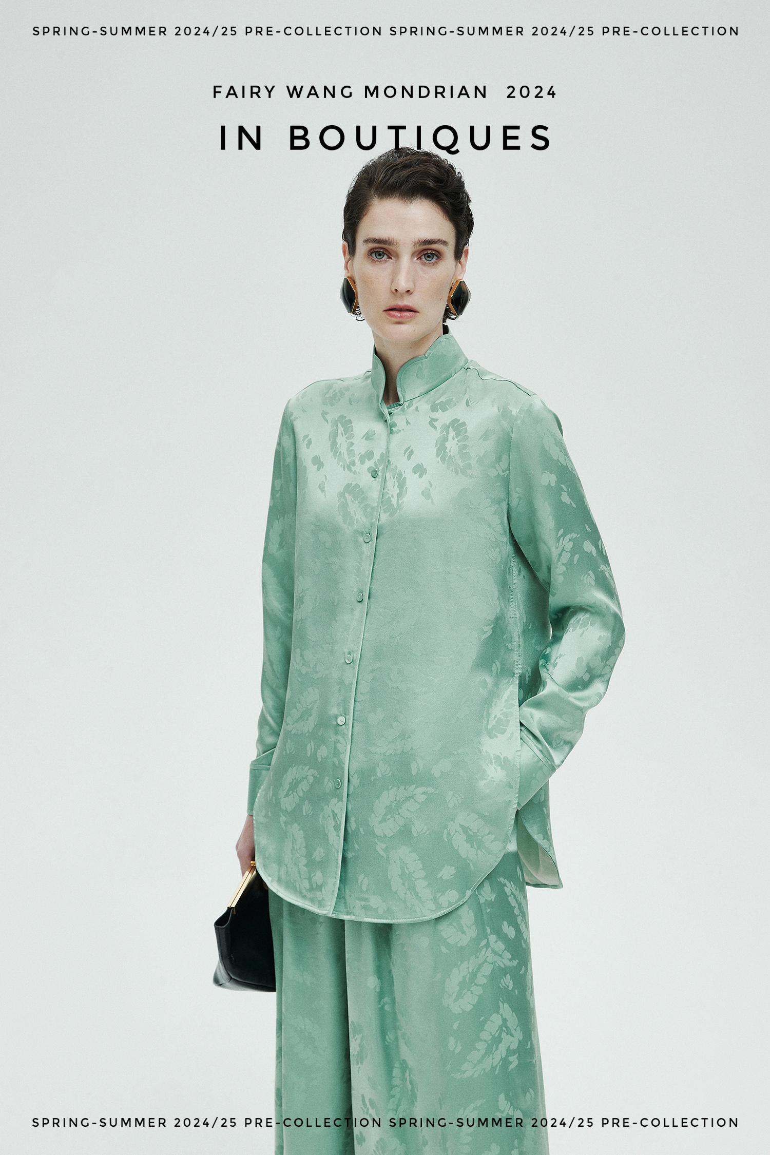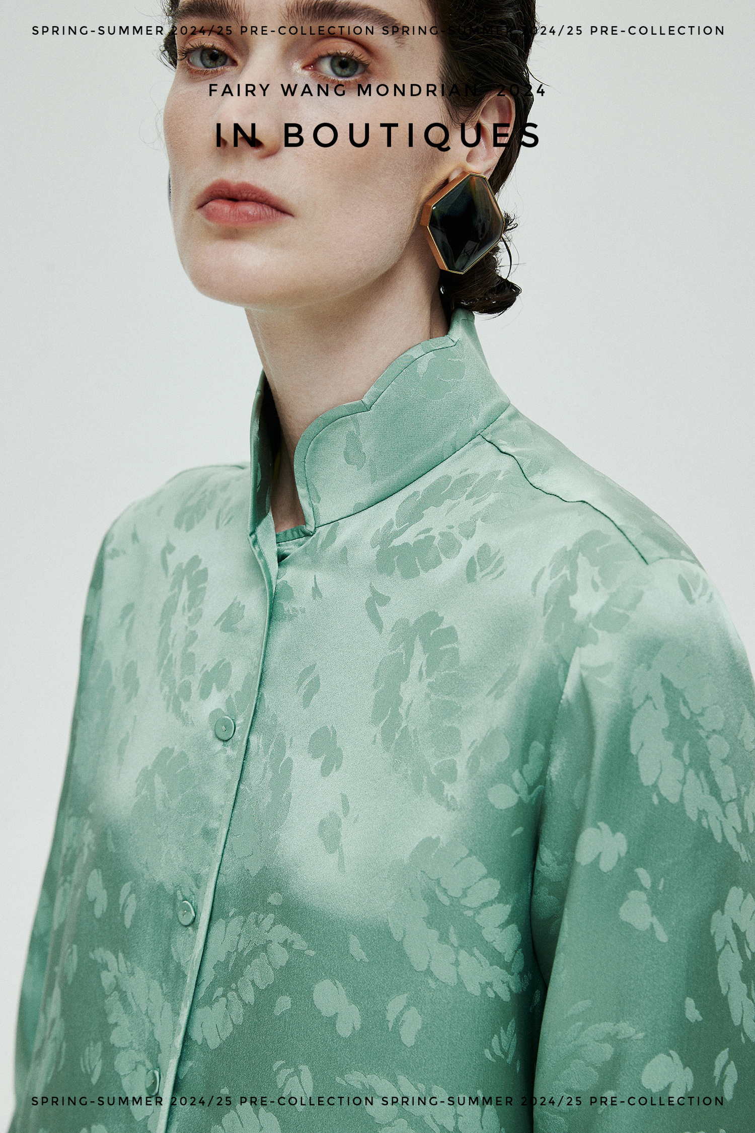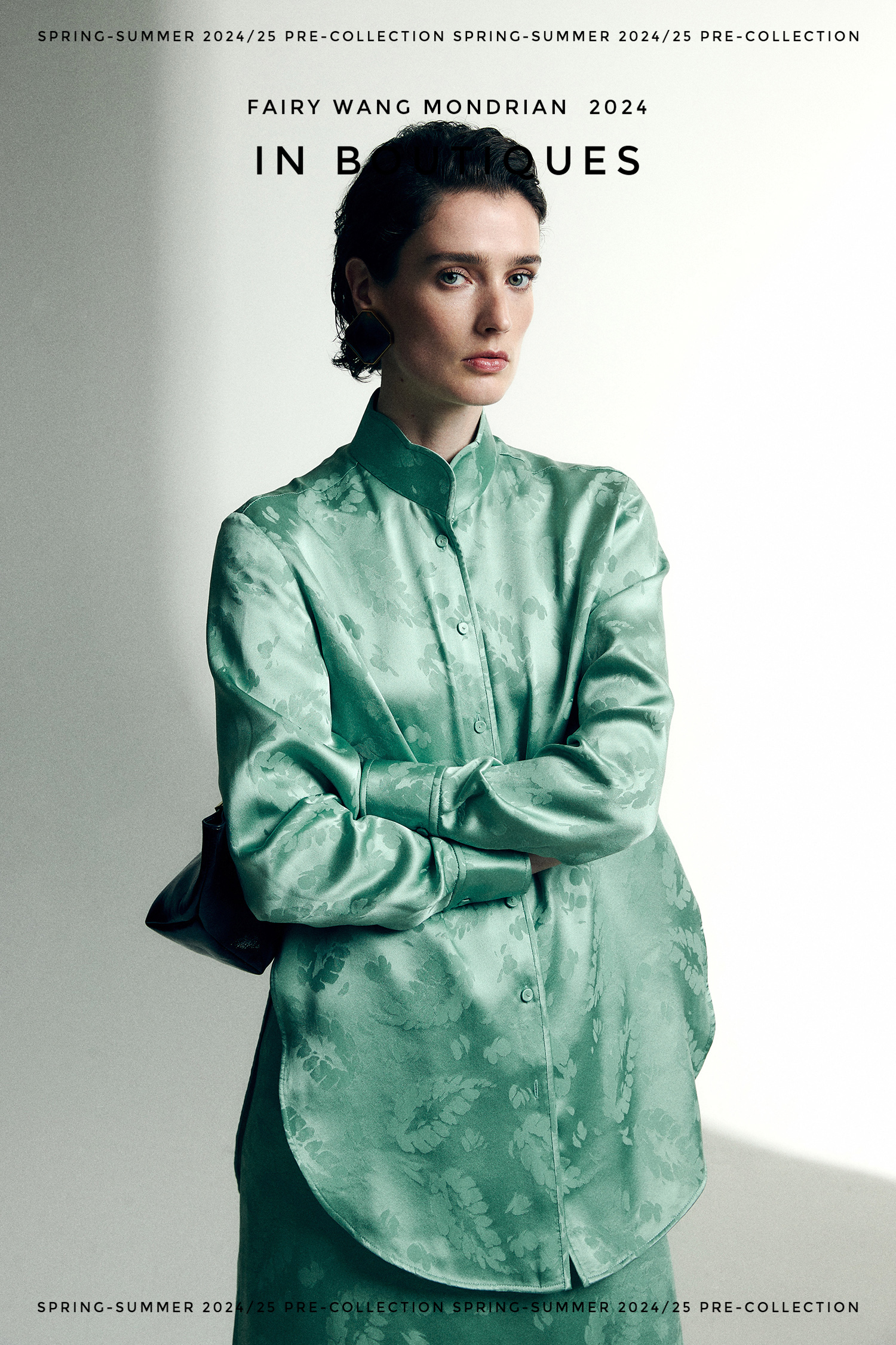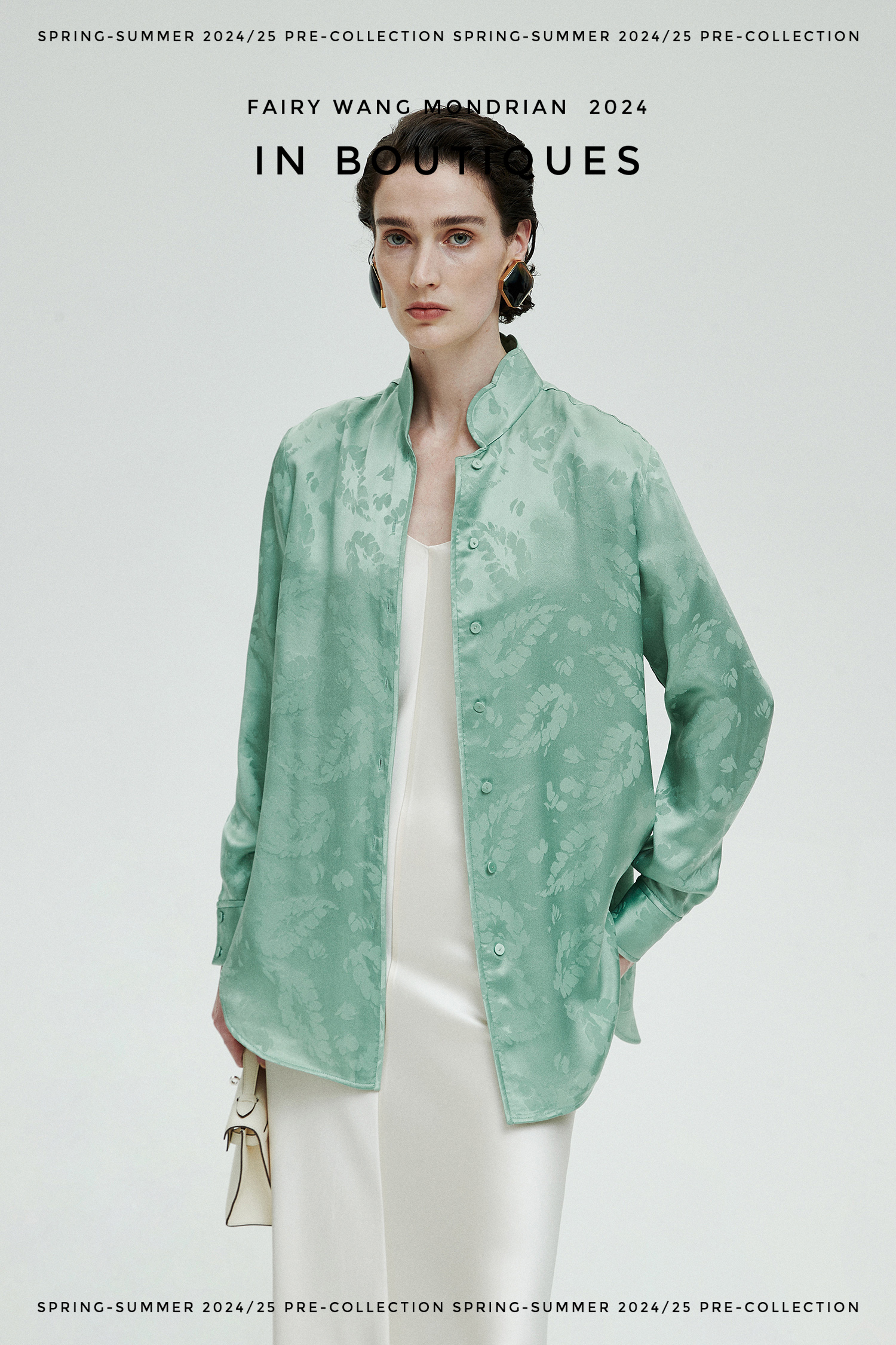 ASAYA3354 Italian imported base fabric 100% mulberry silk feather jacquard new Chinese Top