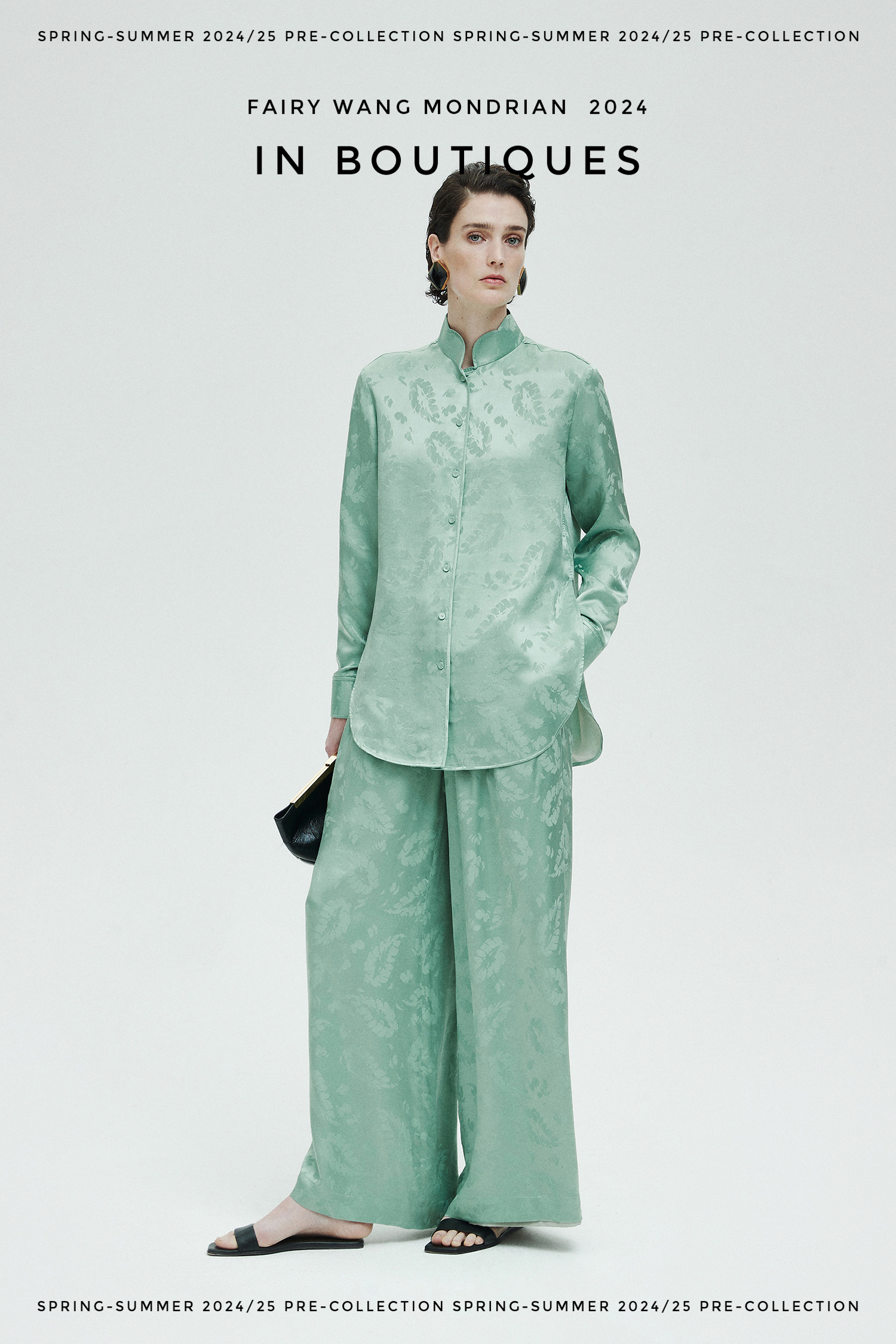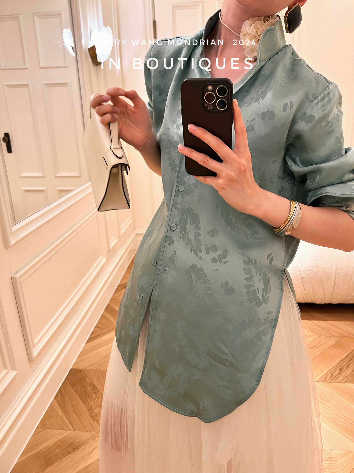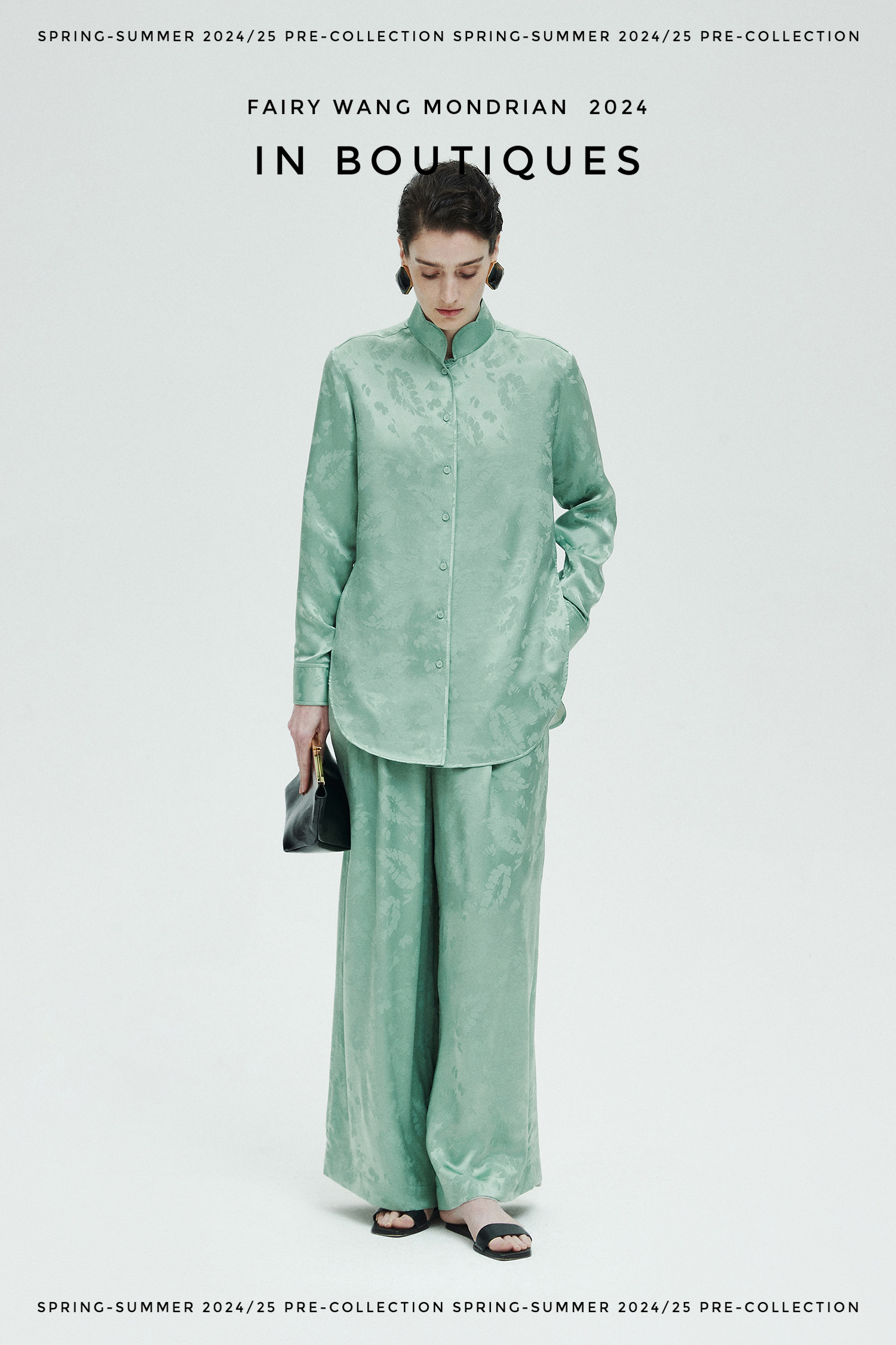 ASAYA3354 Italian imported base fabric 100% mulberry silk feather jacquard new Chinese Top