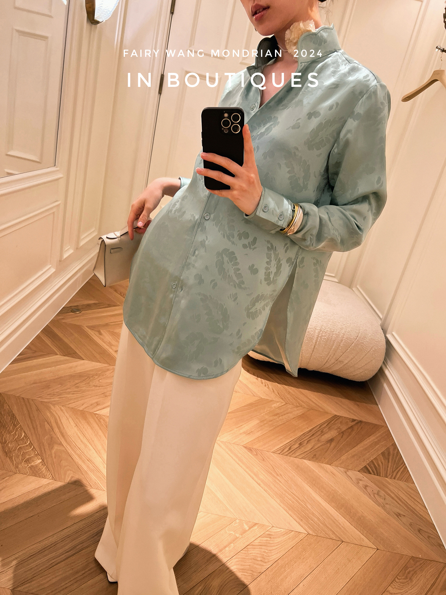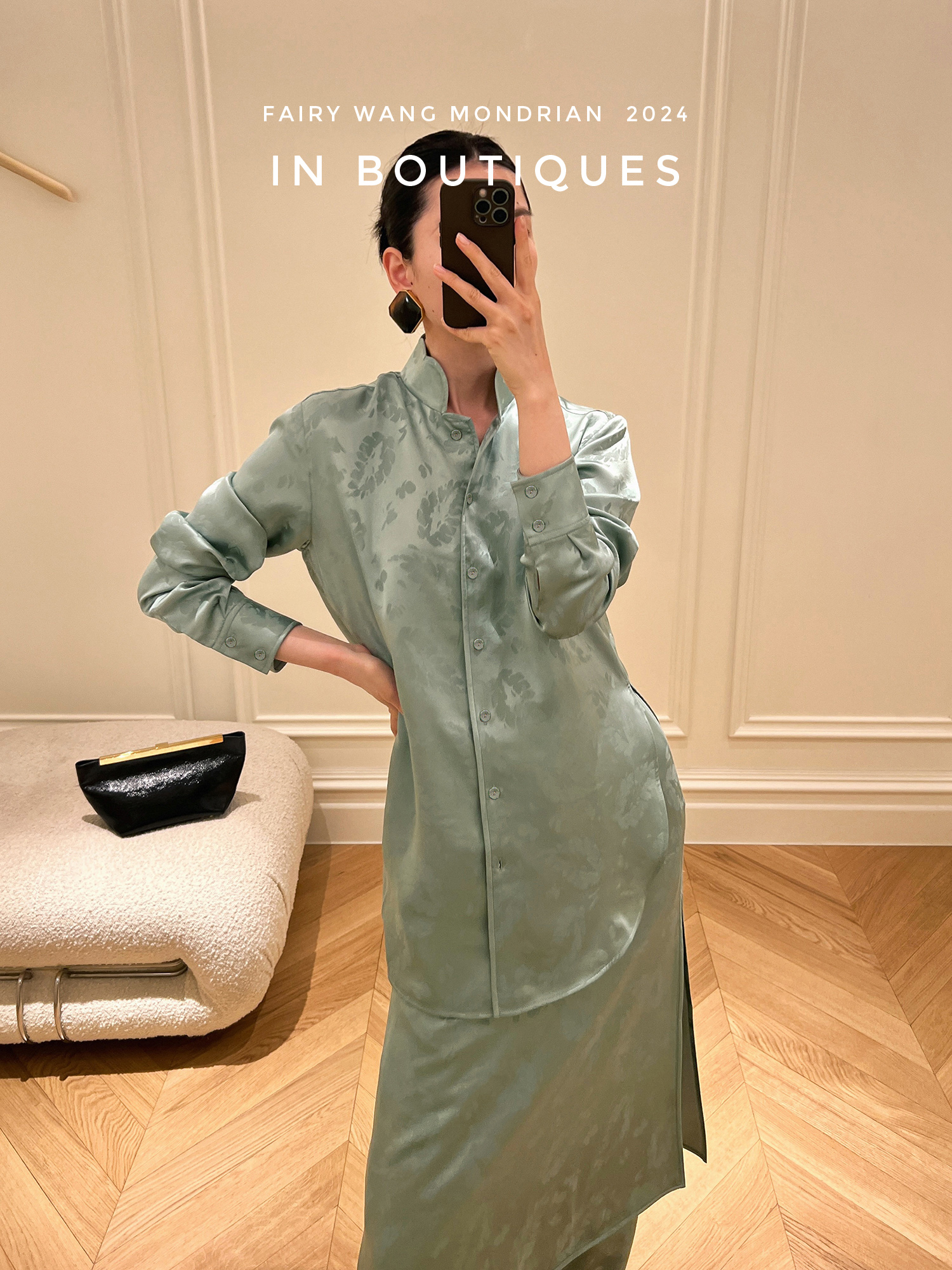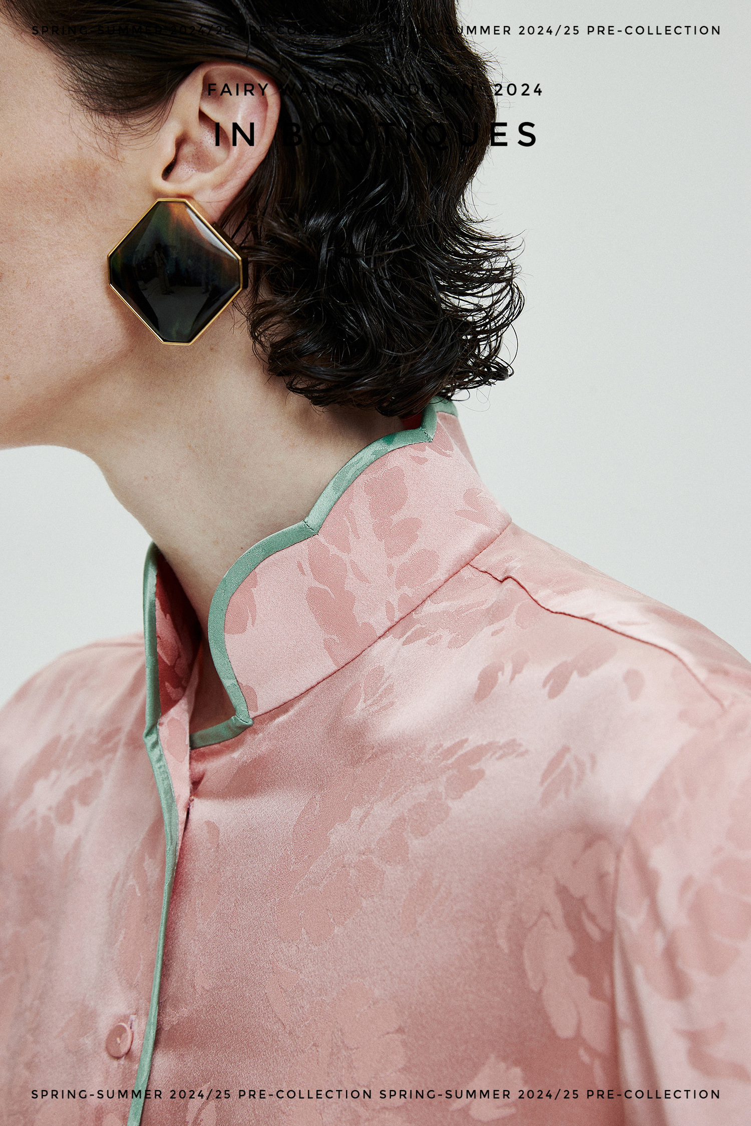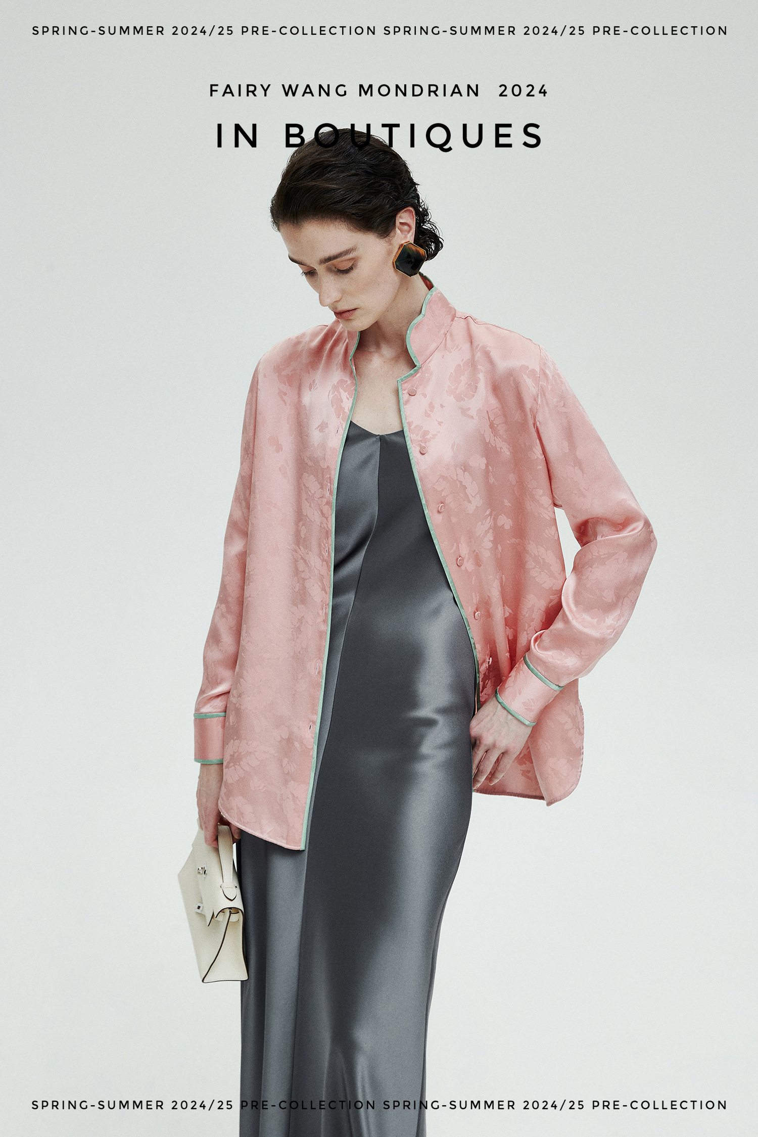 ASAYA3354 Italian imported base fabric 100% mulberry silk feather jacquard new Chinese Top