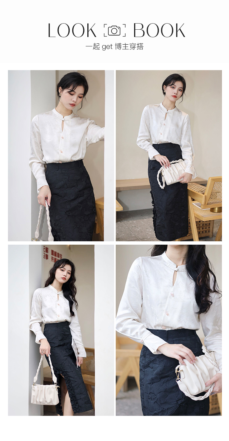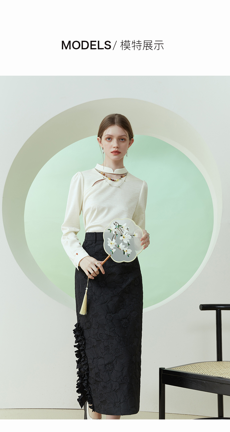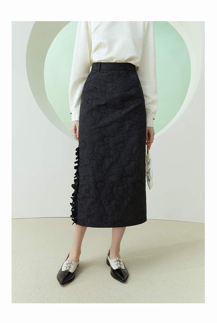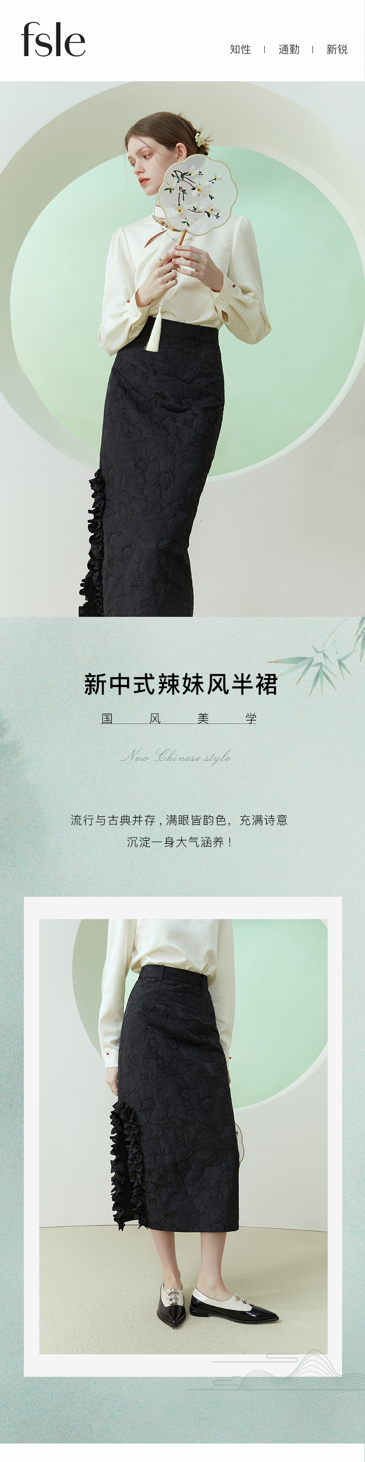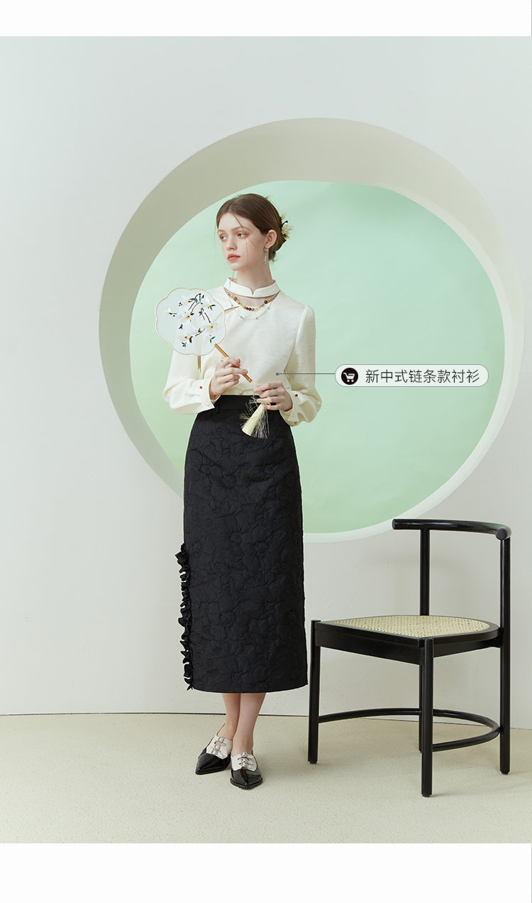 ASAYA2367 New Chinese style black jacquard skirt for women autumn high waist straight slit skirt