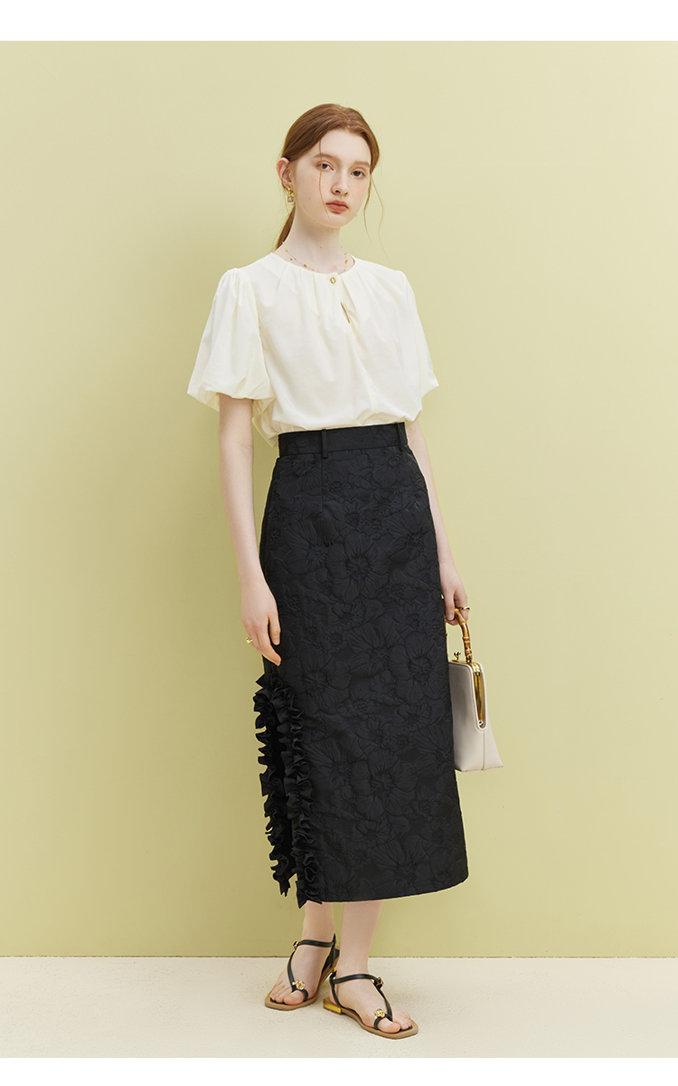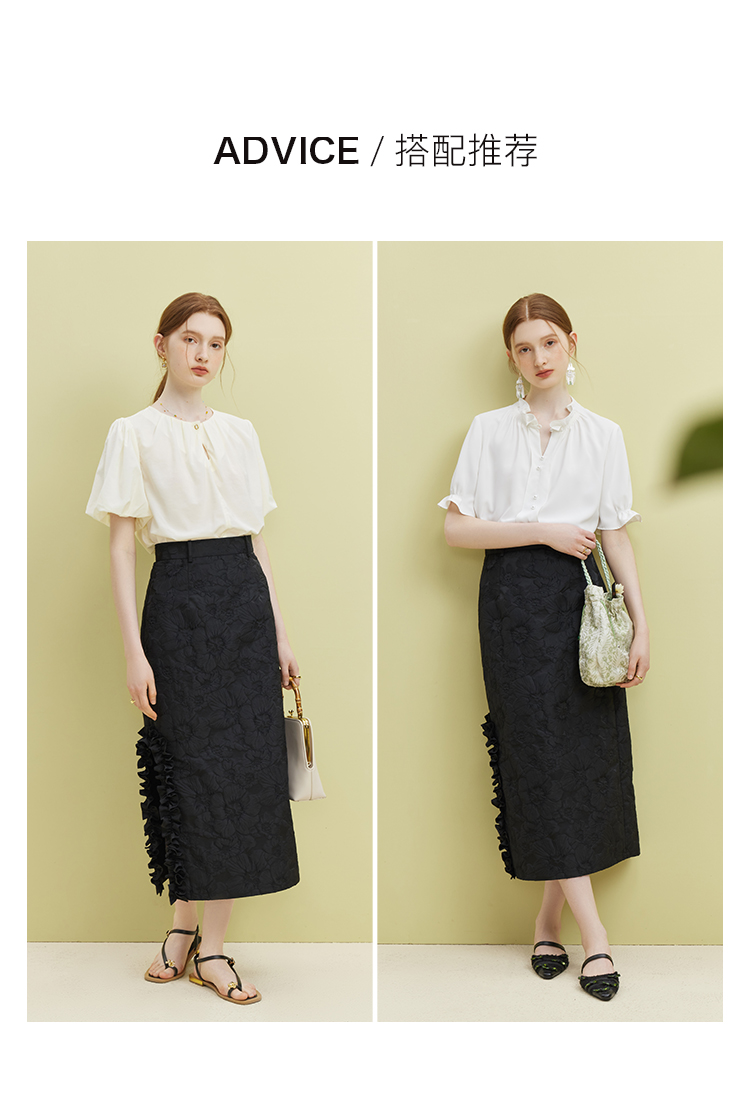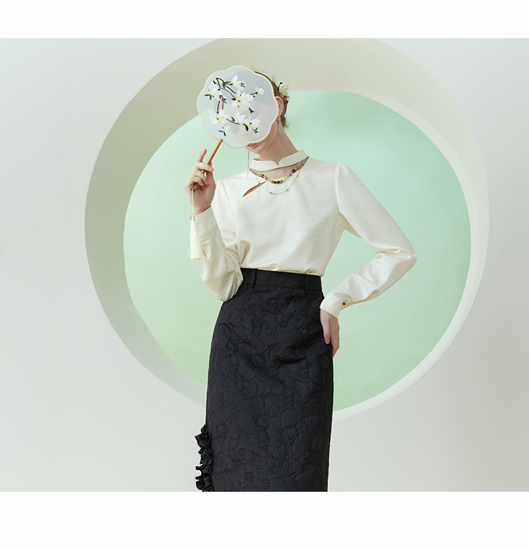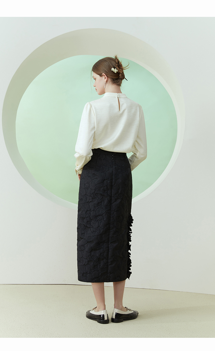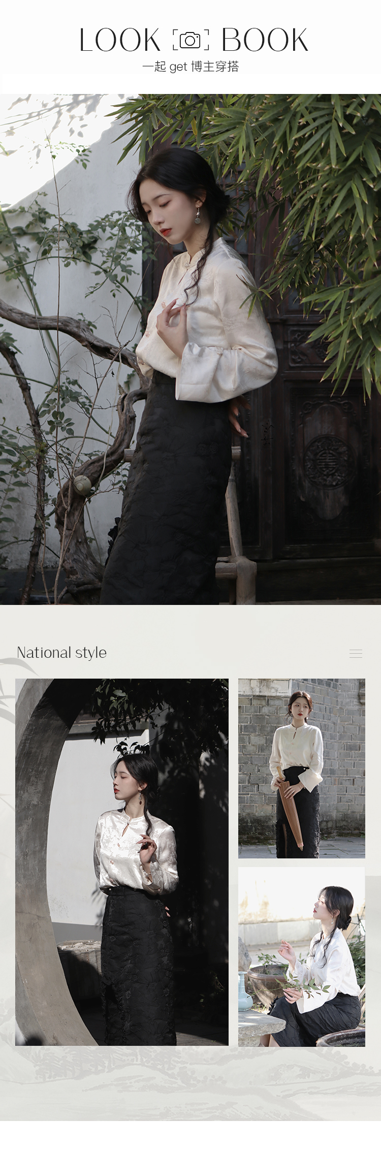ASAYA2367 New Chinese style black jacquard skirt for women autumn high waist straight slit skirt