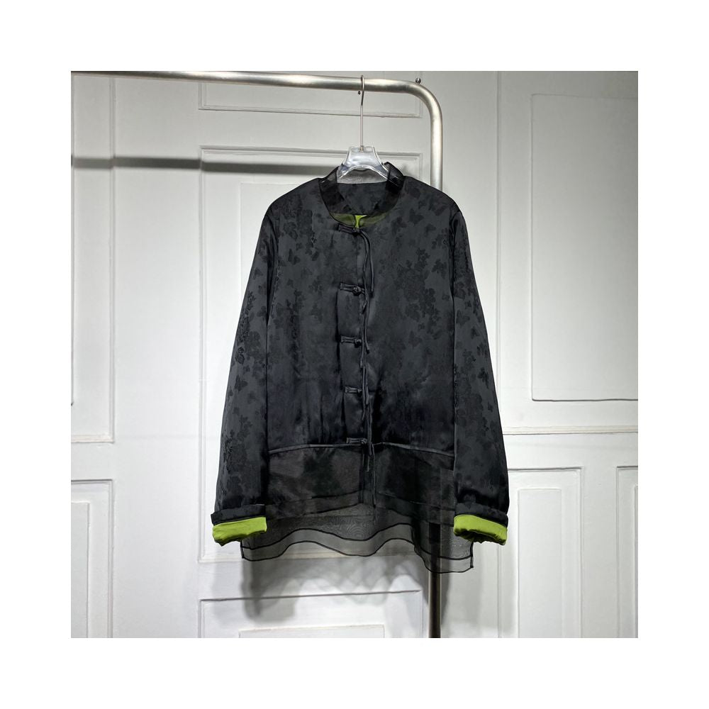 Asaya1330 - Fashionable Chinese style light luxury plate buckle satin thin cotton clothing