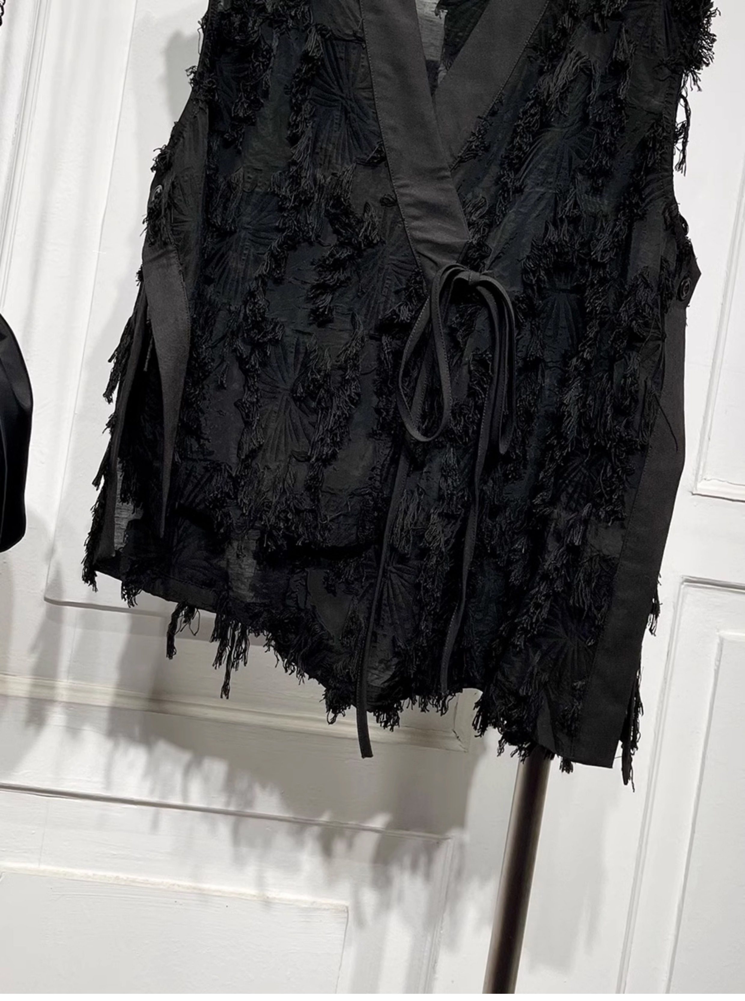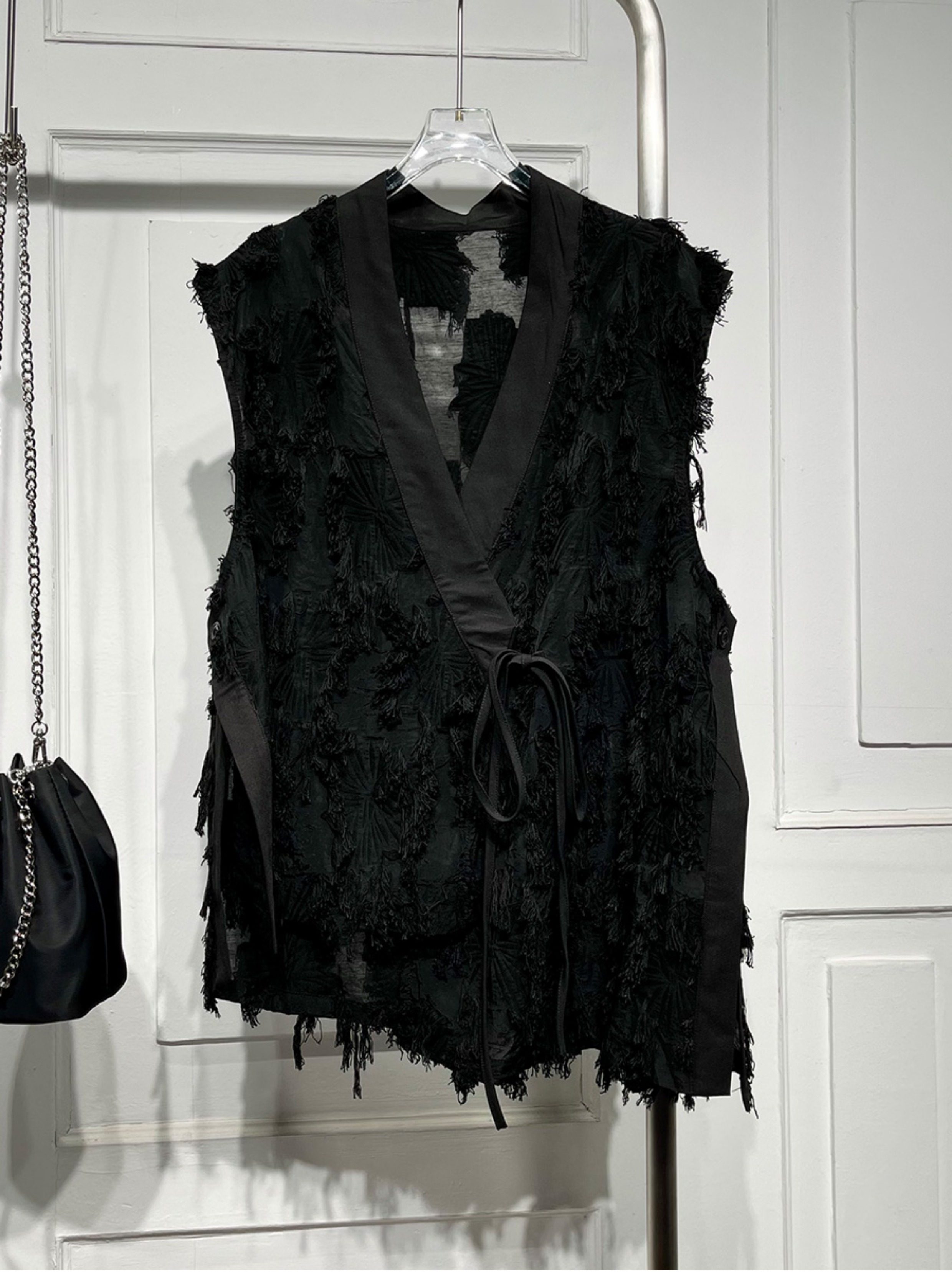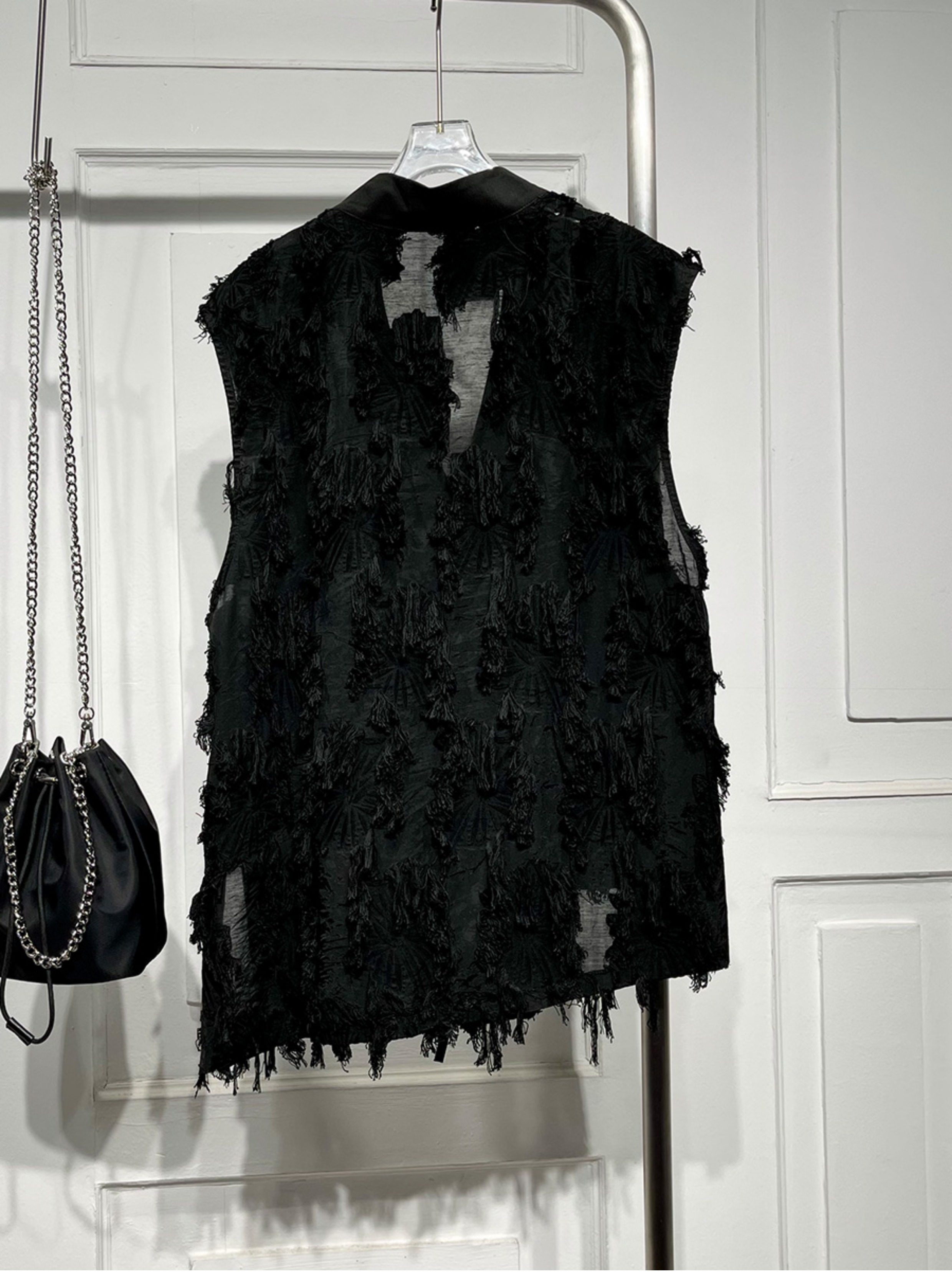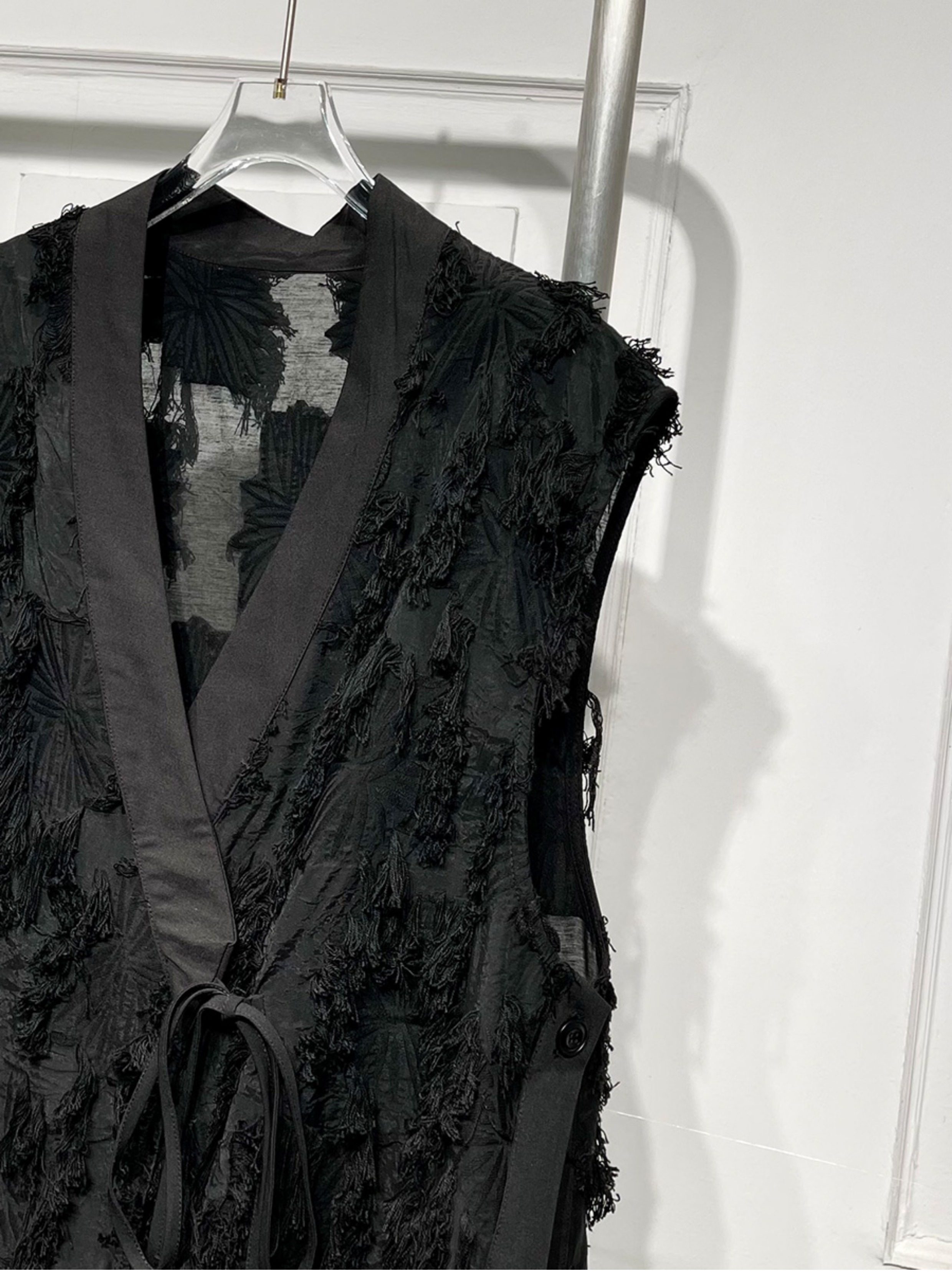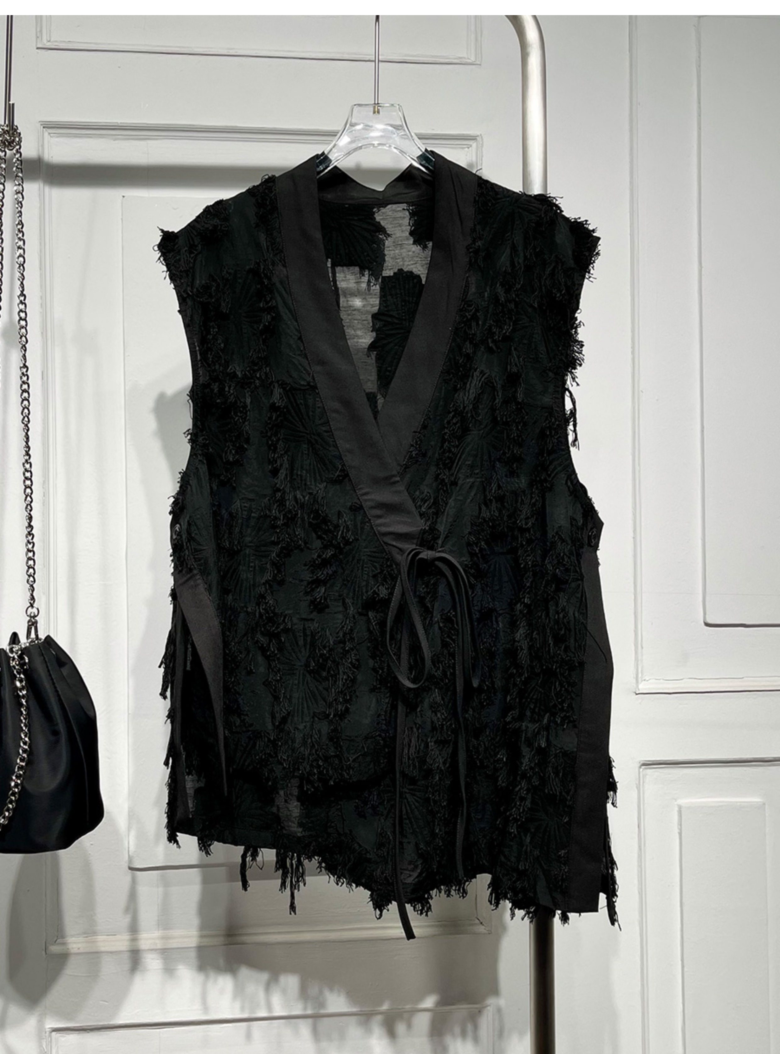 ASAYA5143 – Noir Textured Kimono Vest 🖤🌑