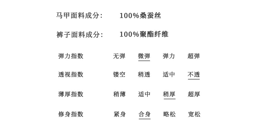 | Color classification | Mulberry silk vest, acetate skirt, set (vest+skirt) |