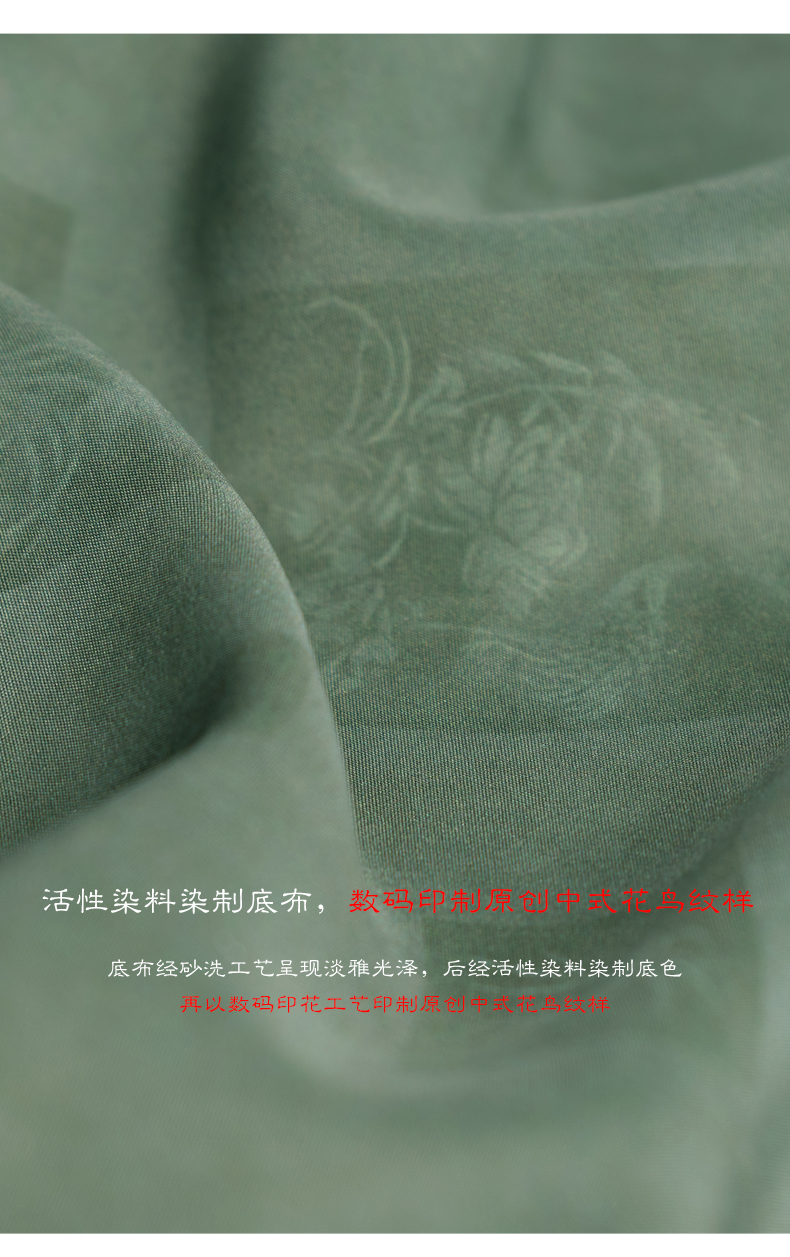 Asaya1074 - Flower and Tree Deep Ancient Method Flat Cutting Improved Cheongsam Silk Vintage Printed Dress Loose Sleeve Chinese Style Dress