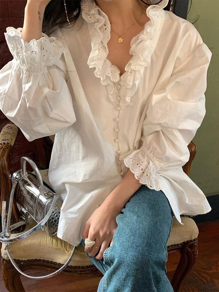 ASAYA5129 – Vintage Poise Ruffle Shirt 🤍🌼