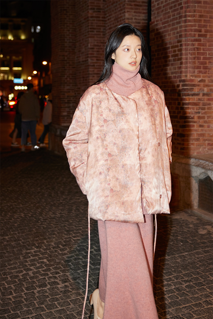 ASAYA253ๅ New Chinese style printing | Double-row folded placket down jacket