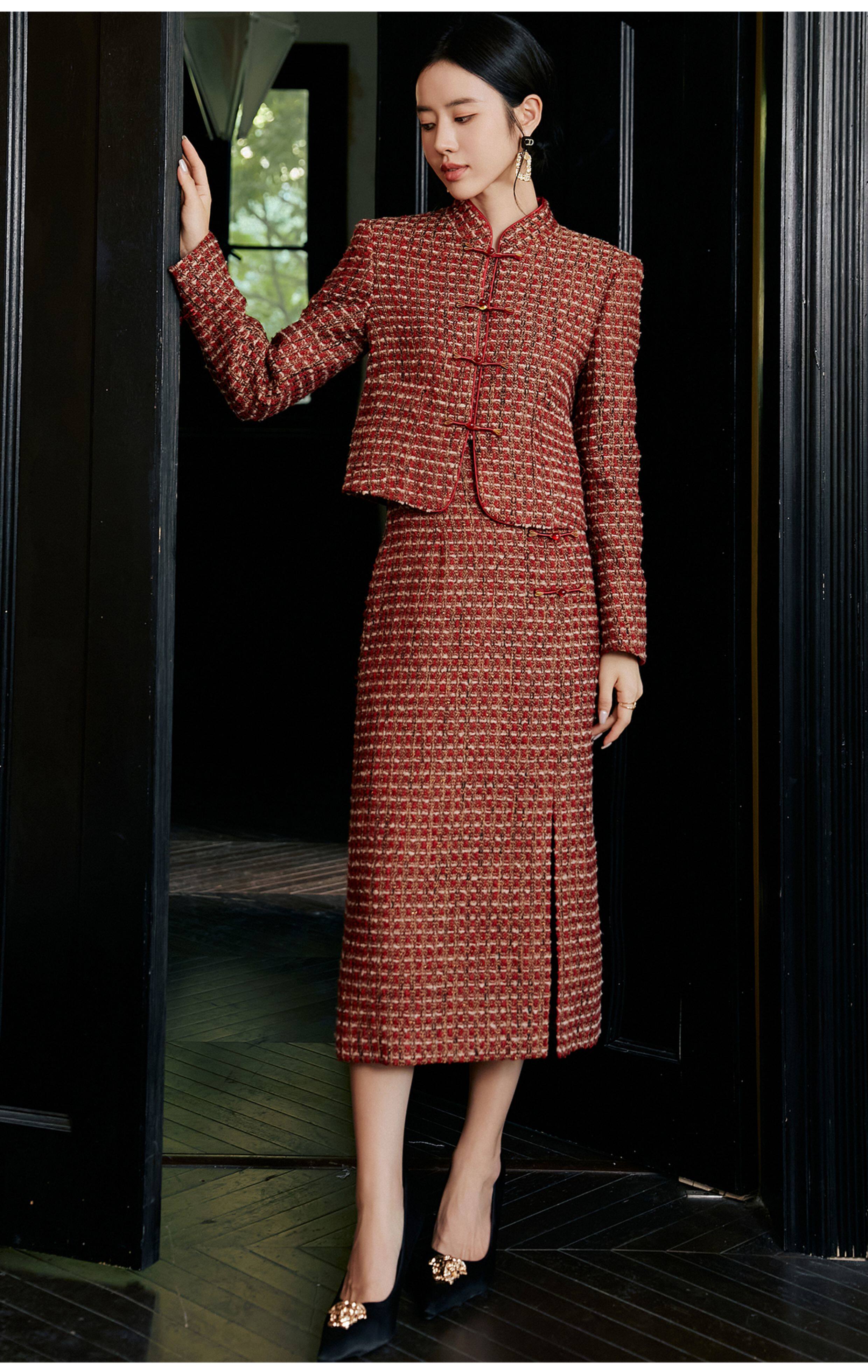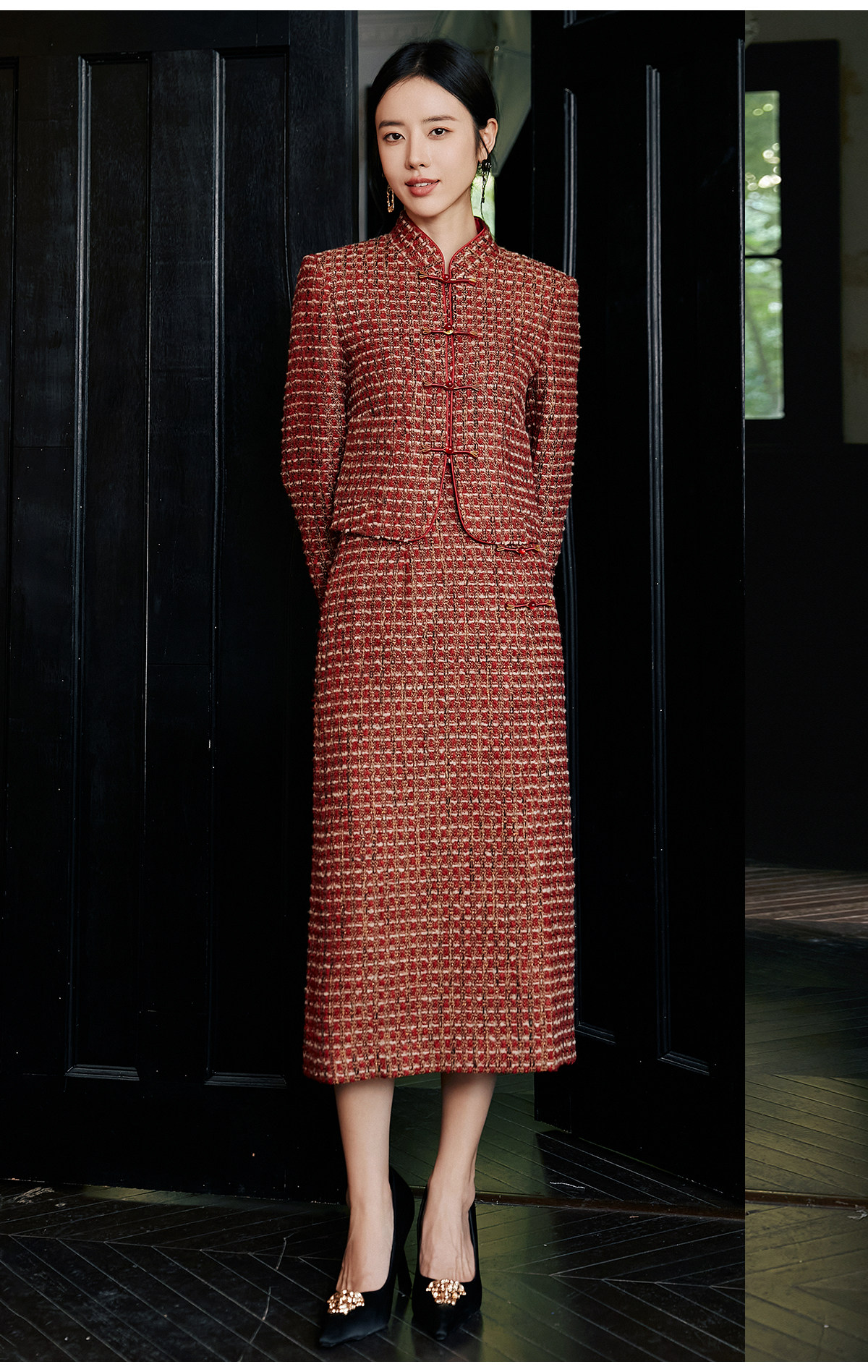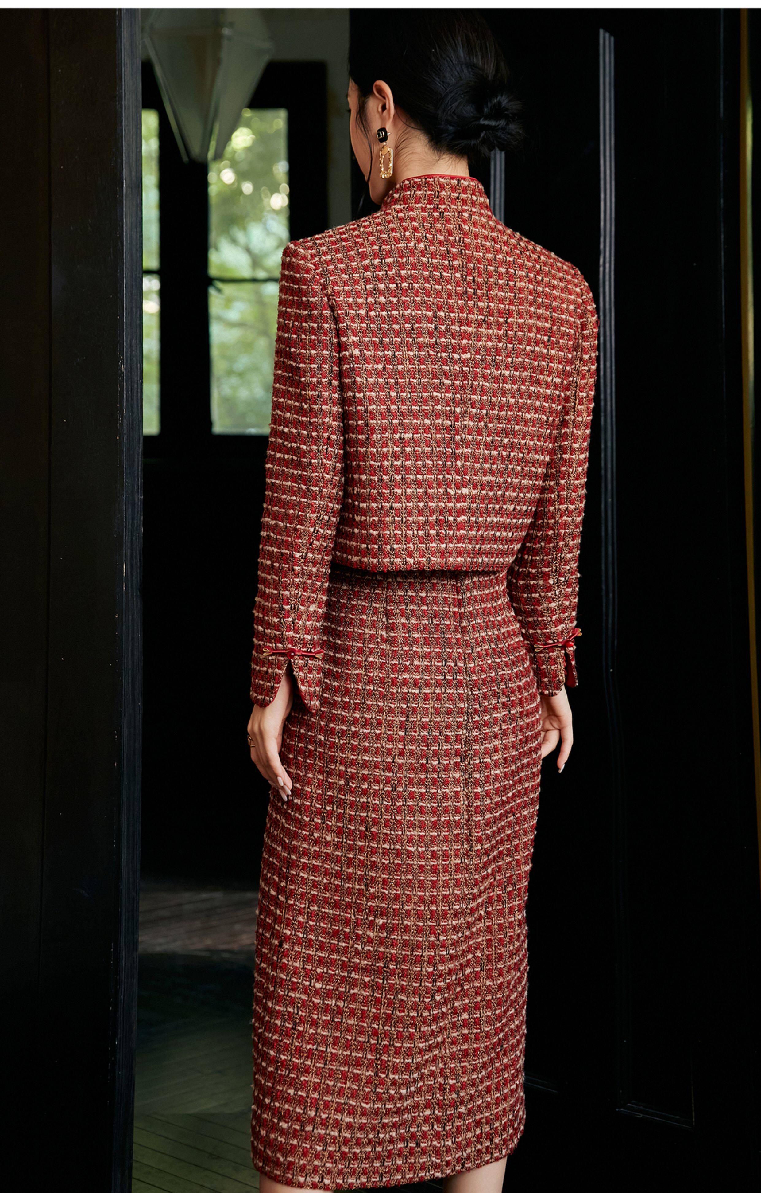 ASAYA5543 – Crimson Heritage Tweed Set ❤️✨