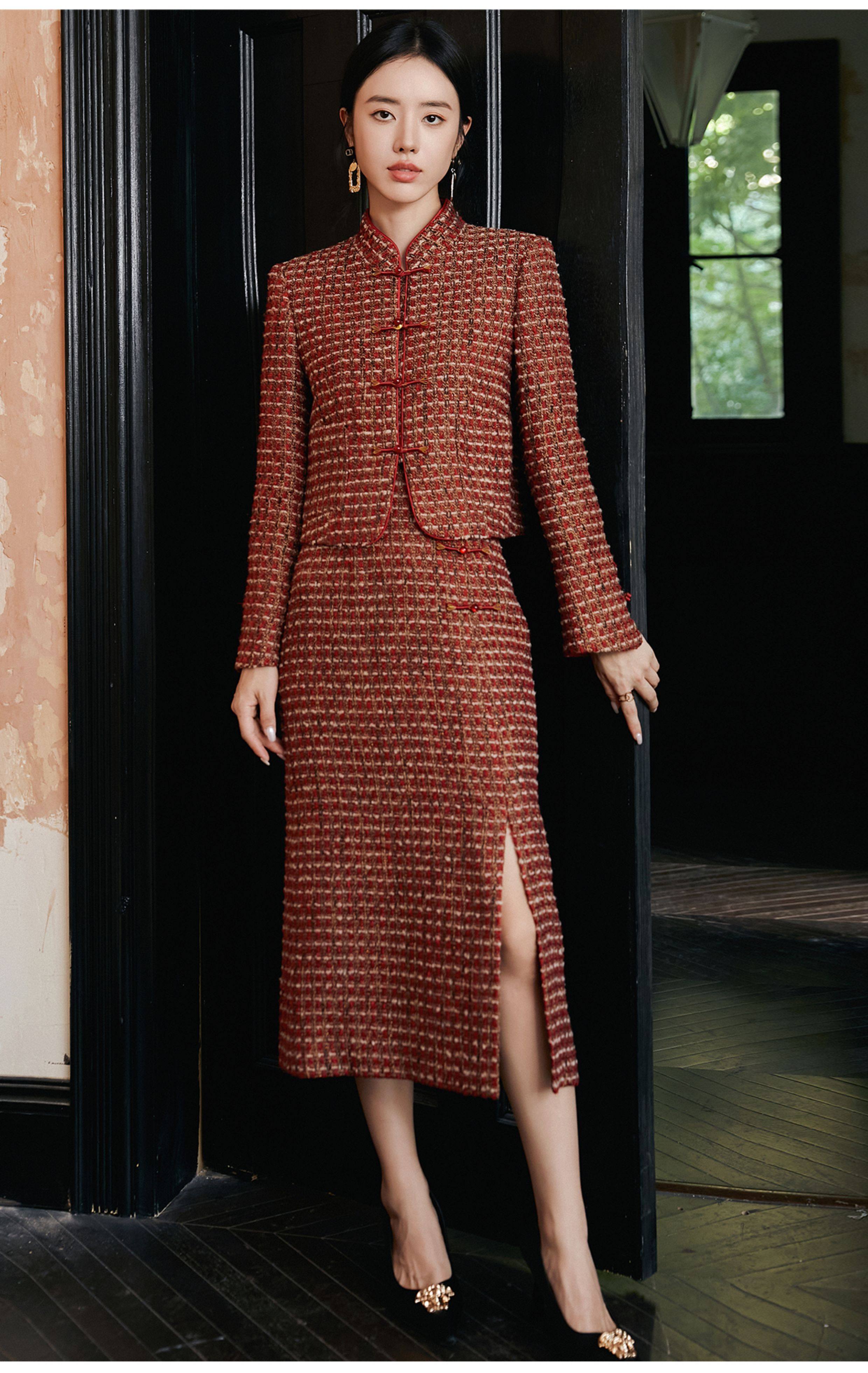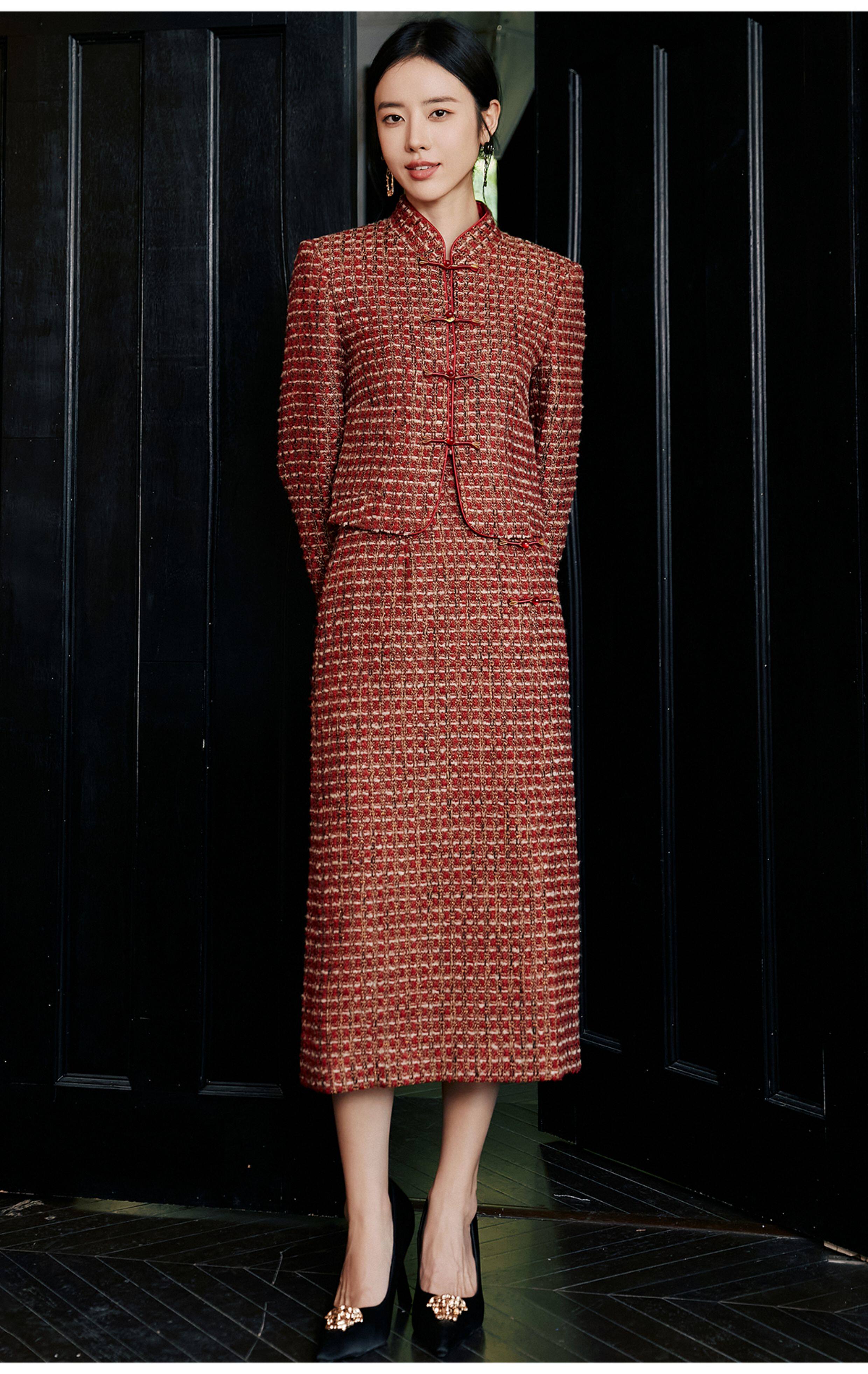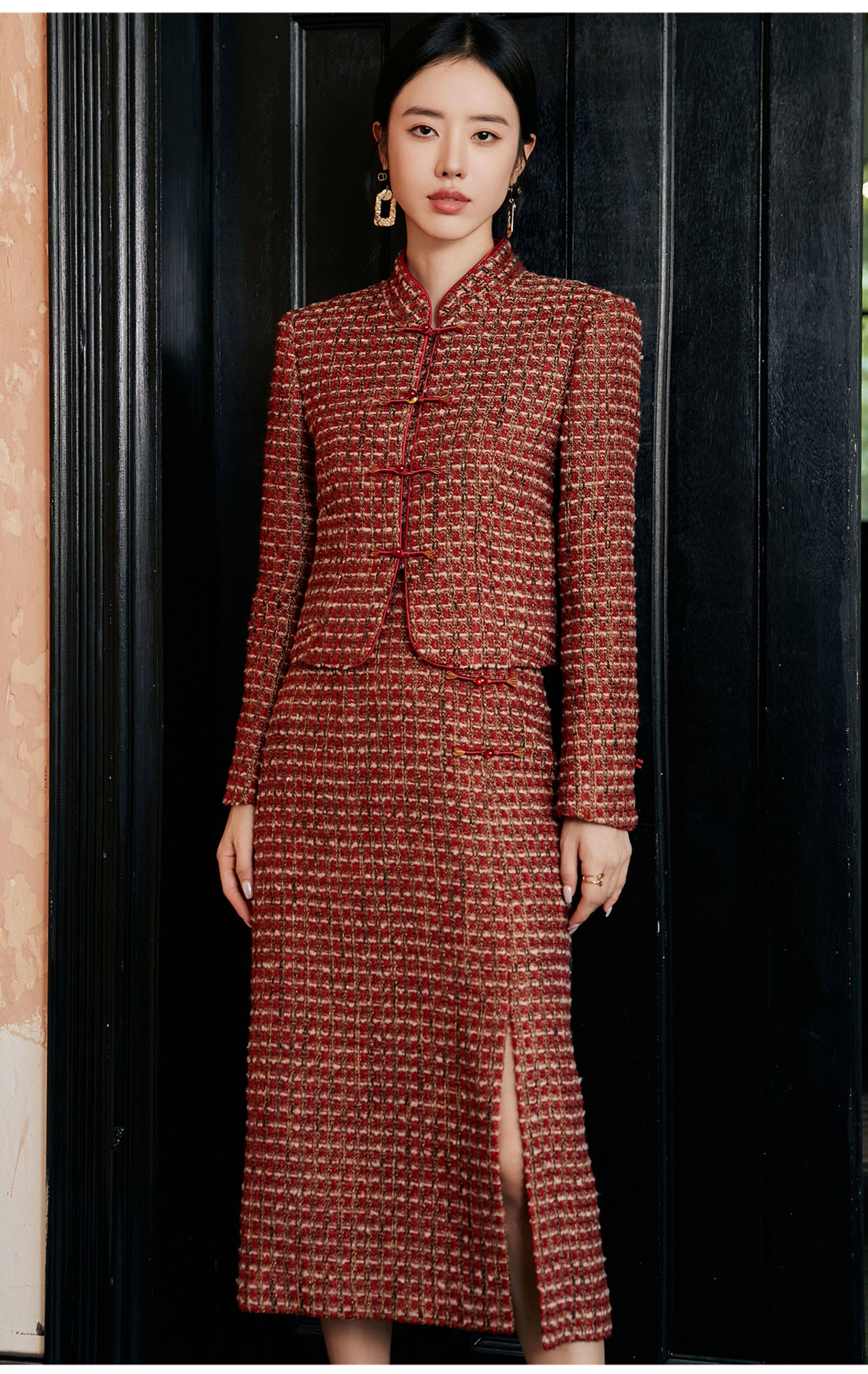 ASAYA5543 – Crimson Heritage Tweed Set ❤️✨