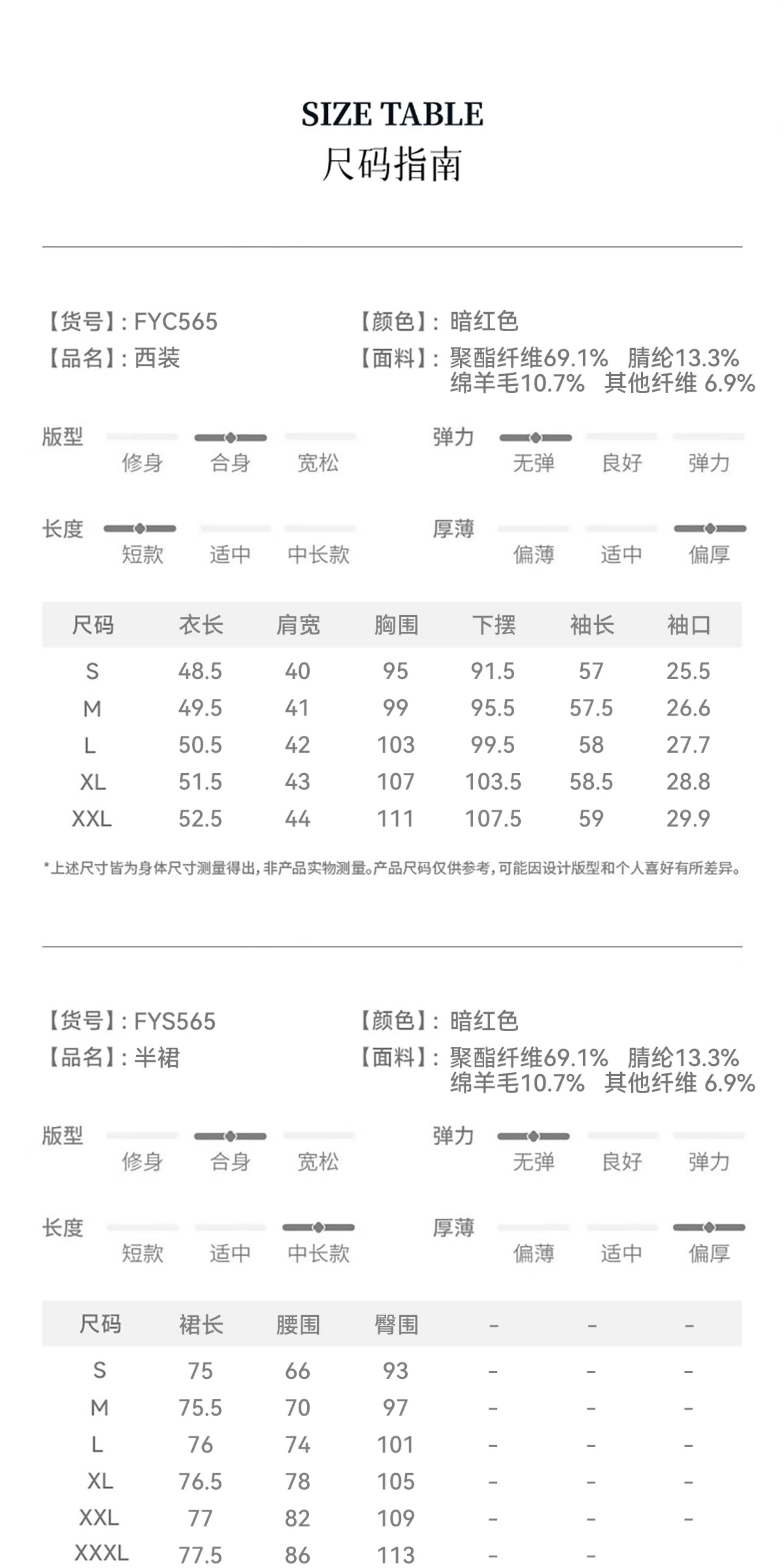 Color classification Dark red, dark red slit, dark red suit+skirt