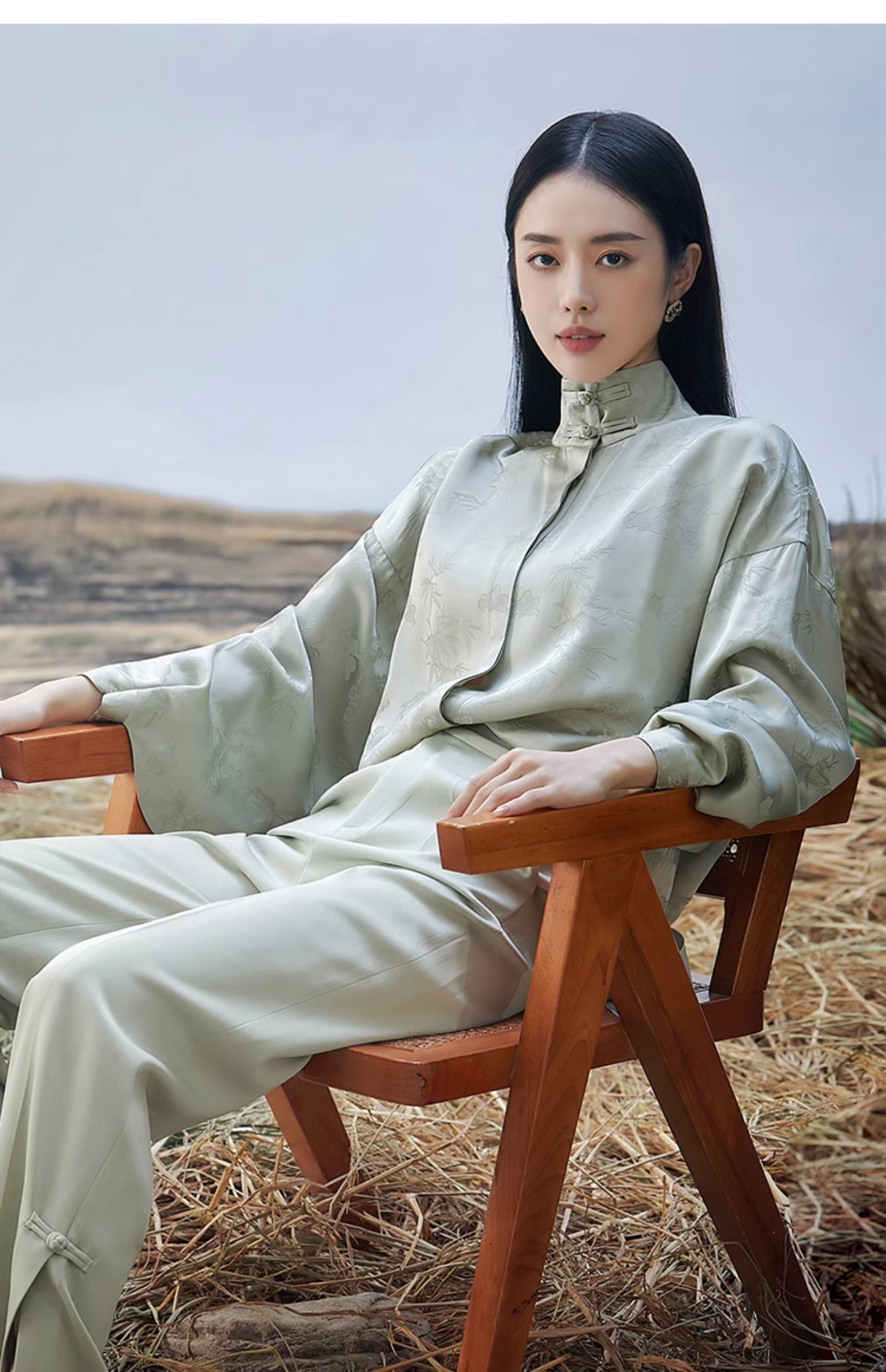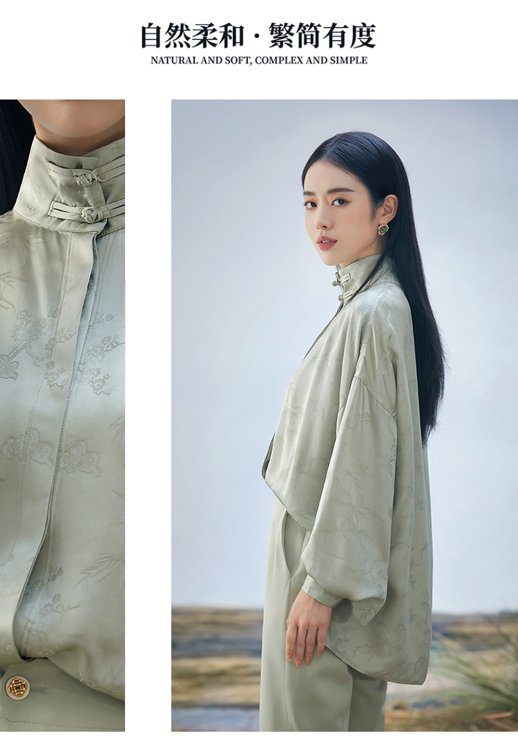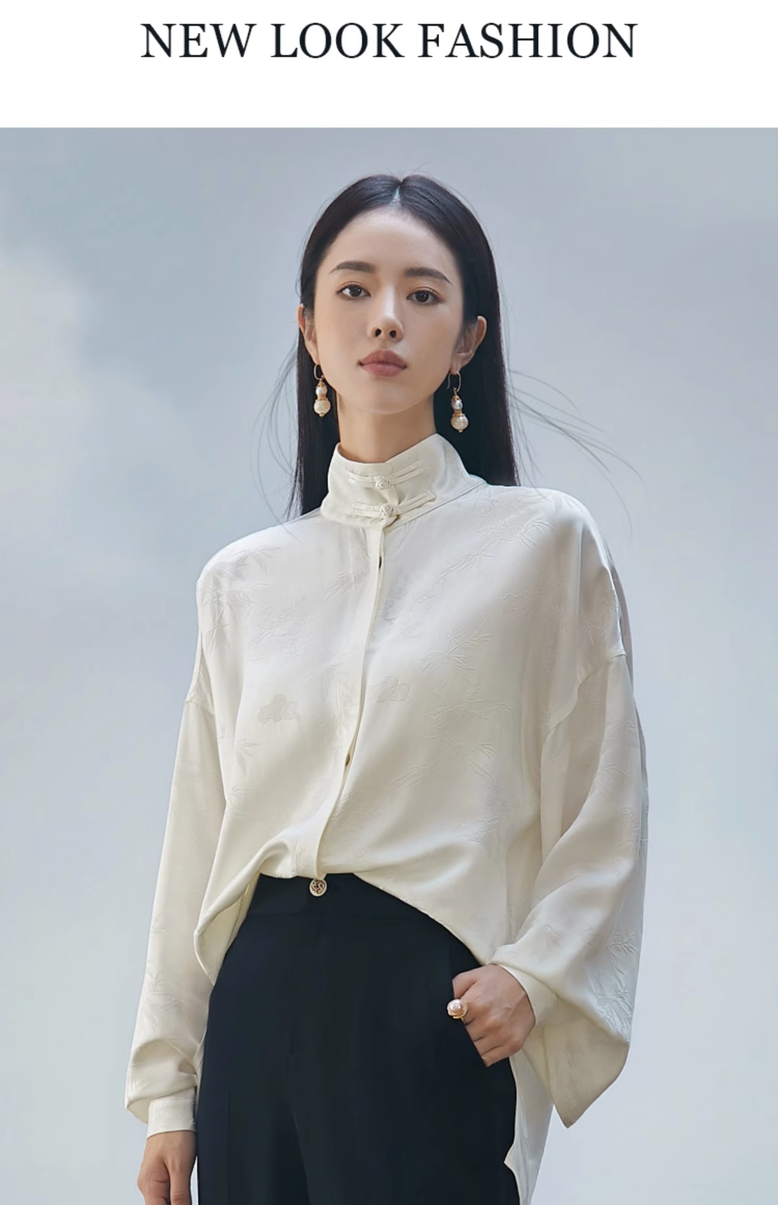 ASAYA3421 Chinese style silk stand collar shirt female retro top