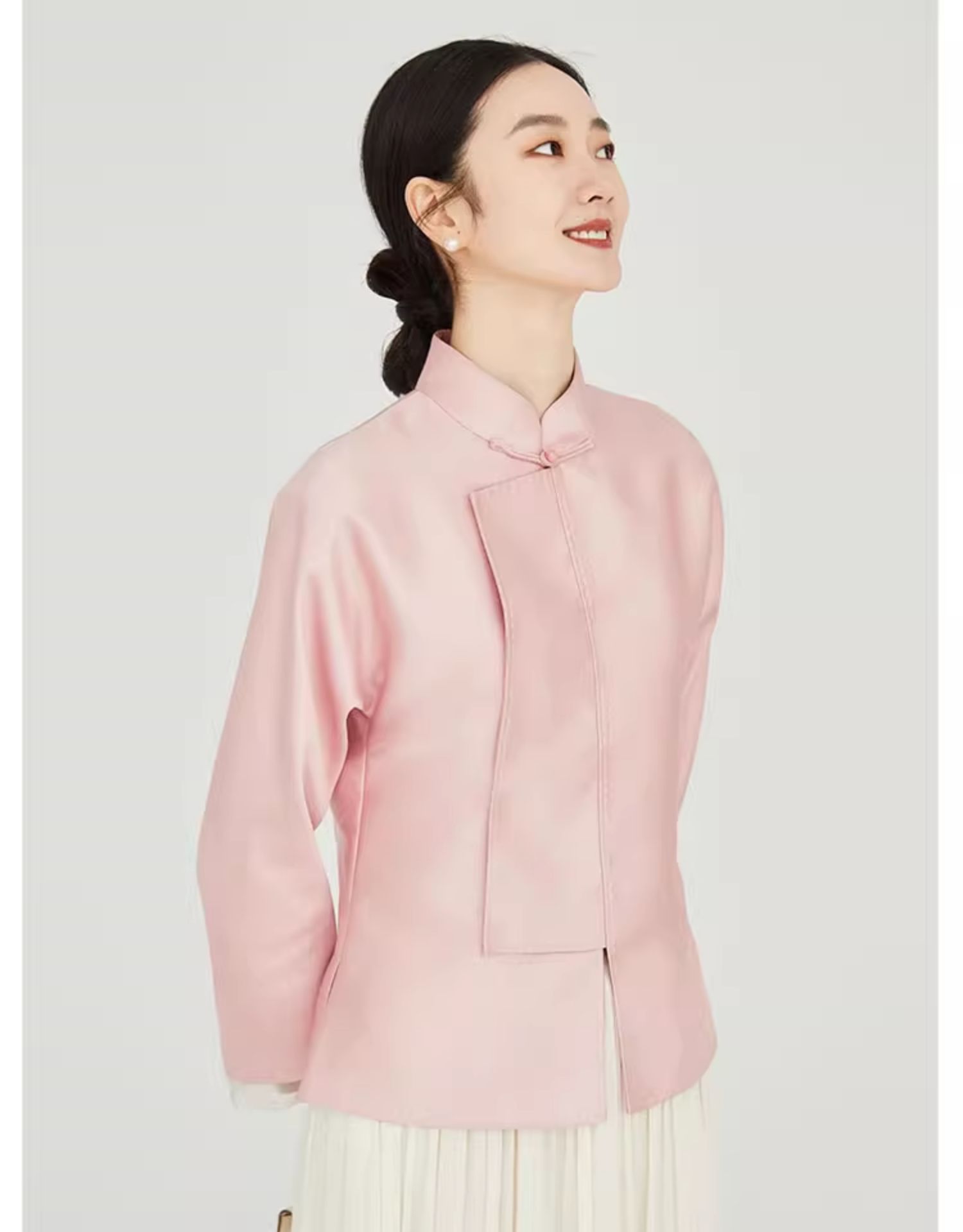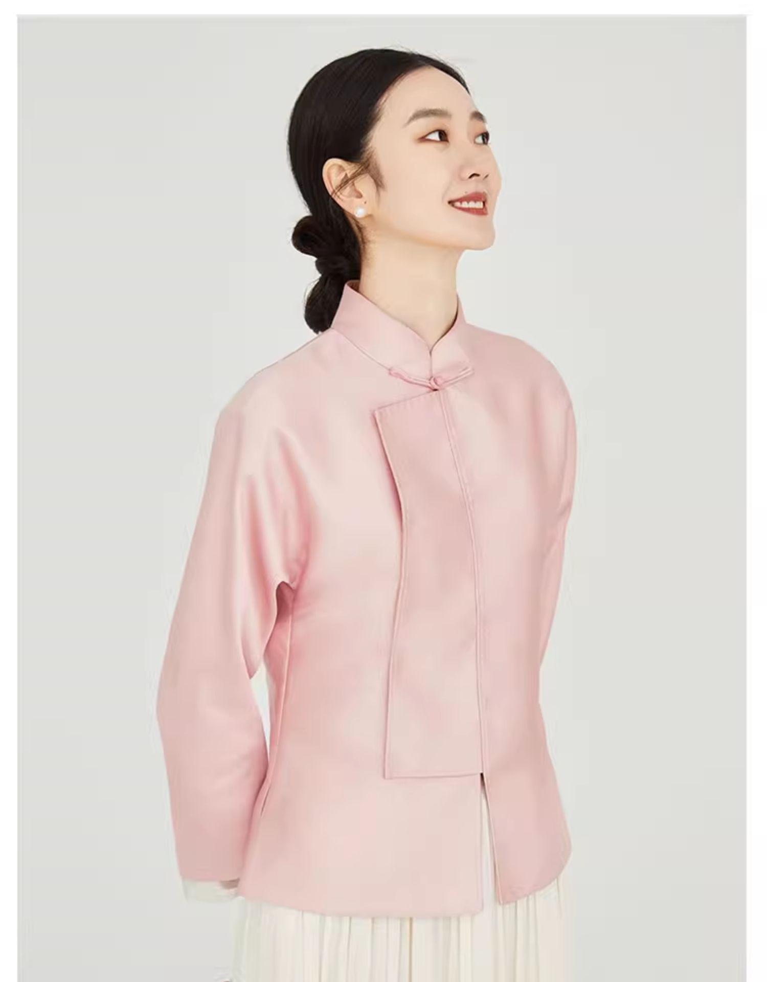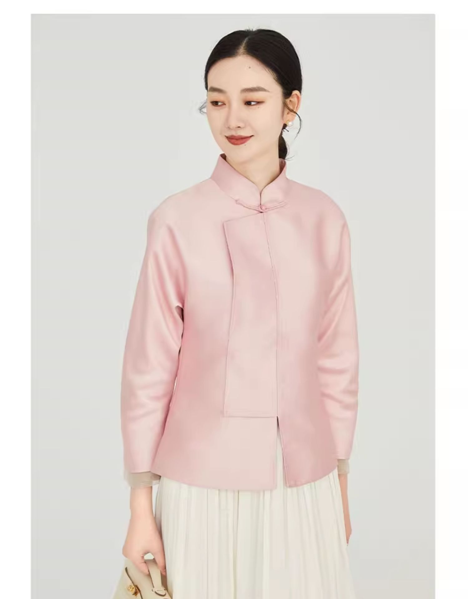 ASAYA1830 "Fuyuntang Ya" neon. Chinese stand up collar buckle pink short coat women's 23 spring national style improved Tang dress