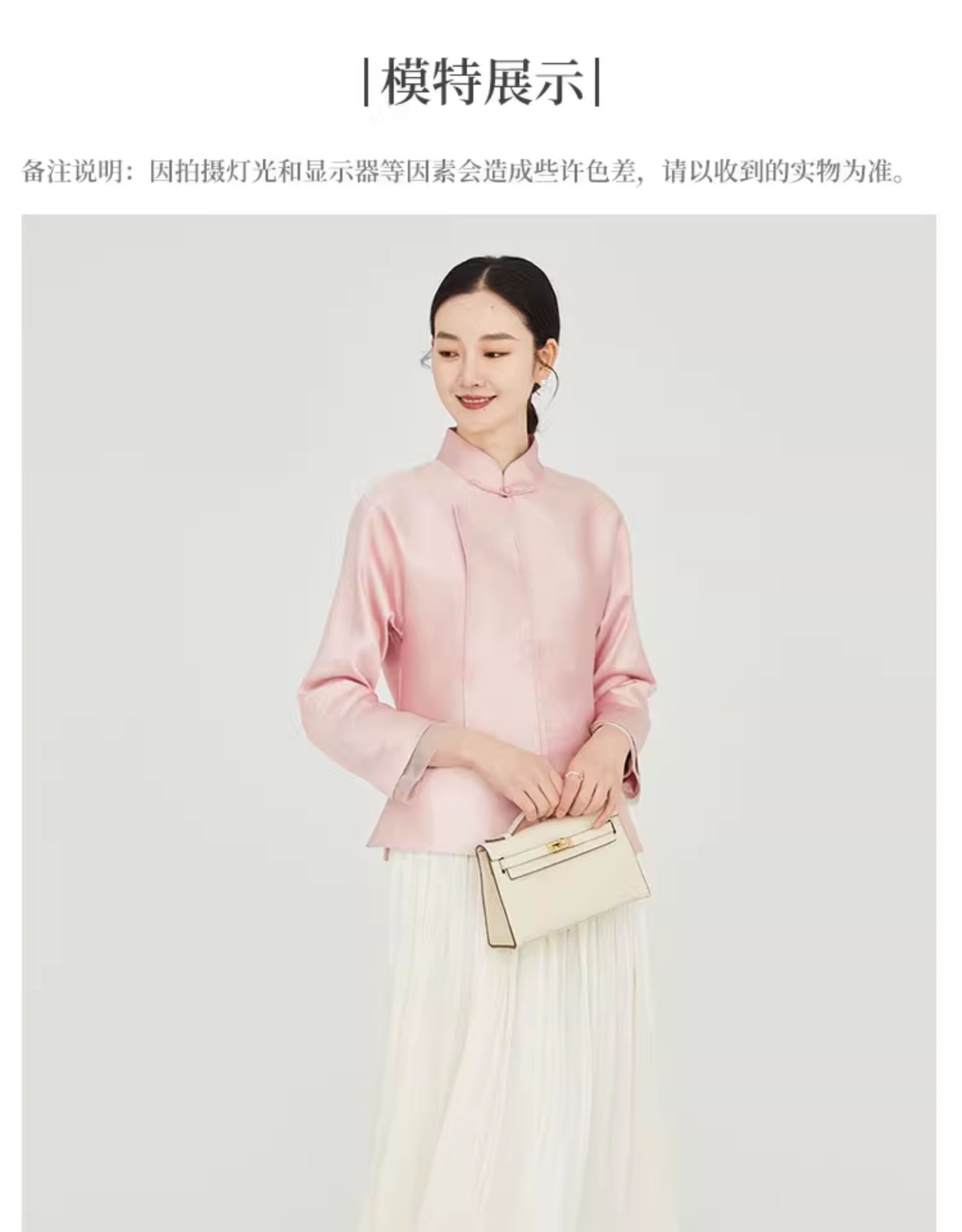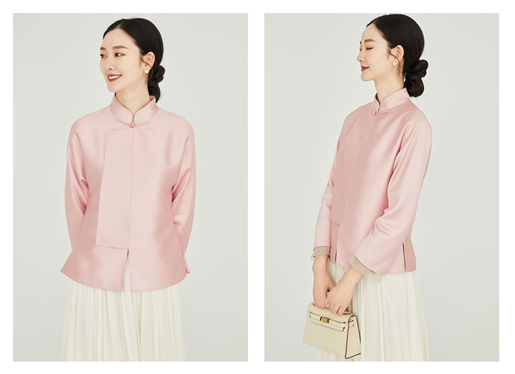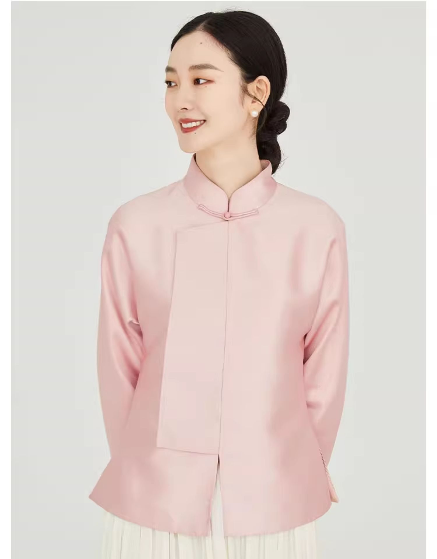 ASAYA1830 "Fuyuntang Ya" neon. Chinese stand up collar buckle pink short coat women's 23 spring national style improved Tang dress