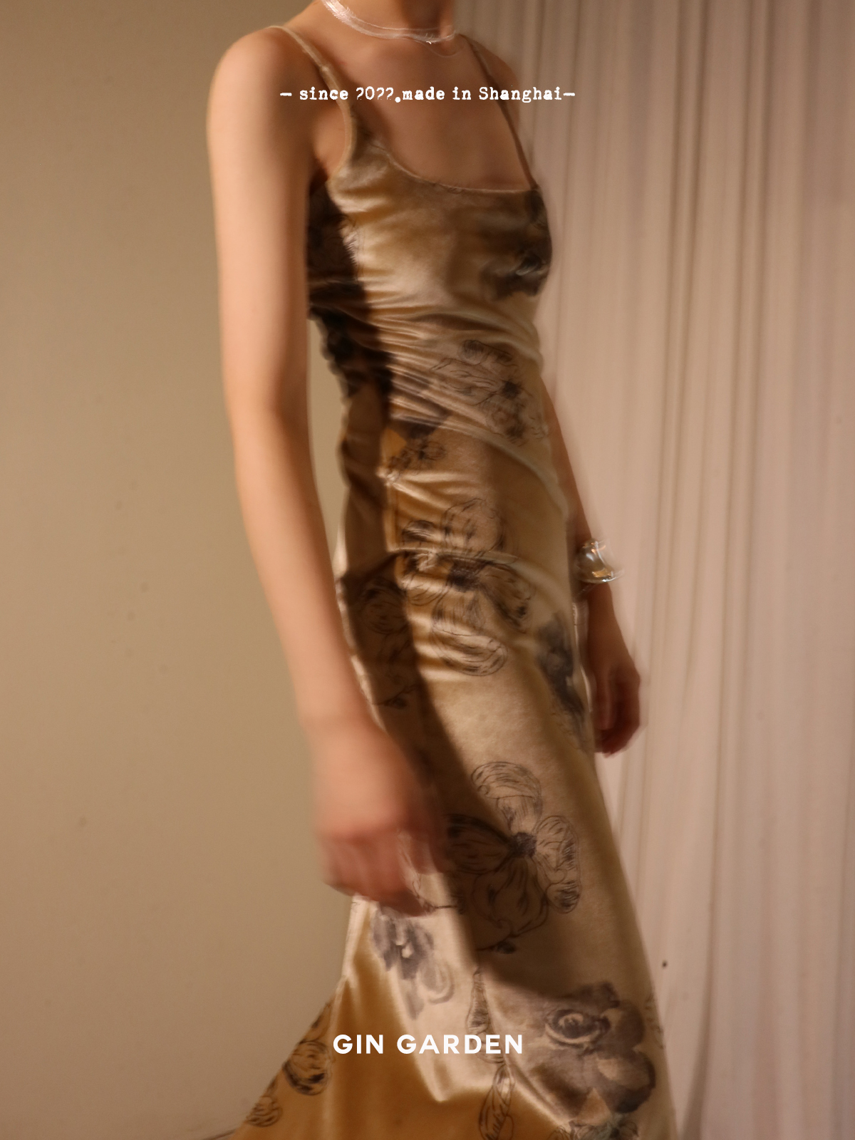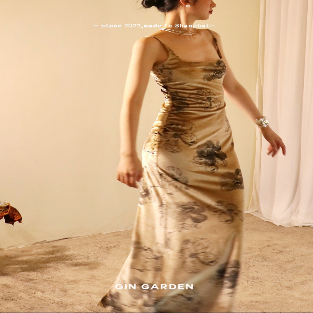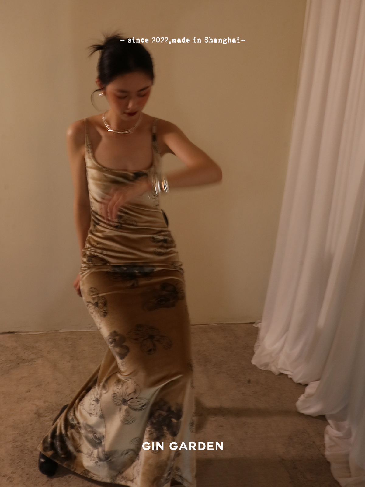 ASAYA3179 Painting velvet exquisite spring and summer suspender skirt