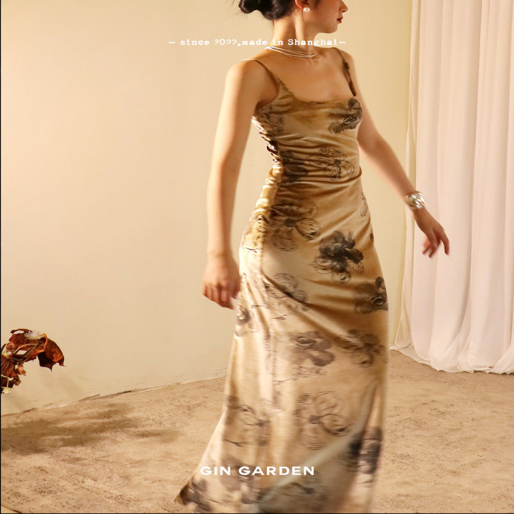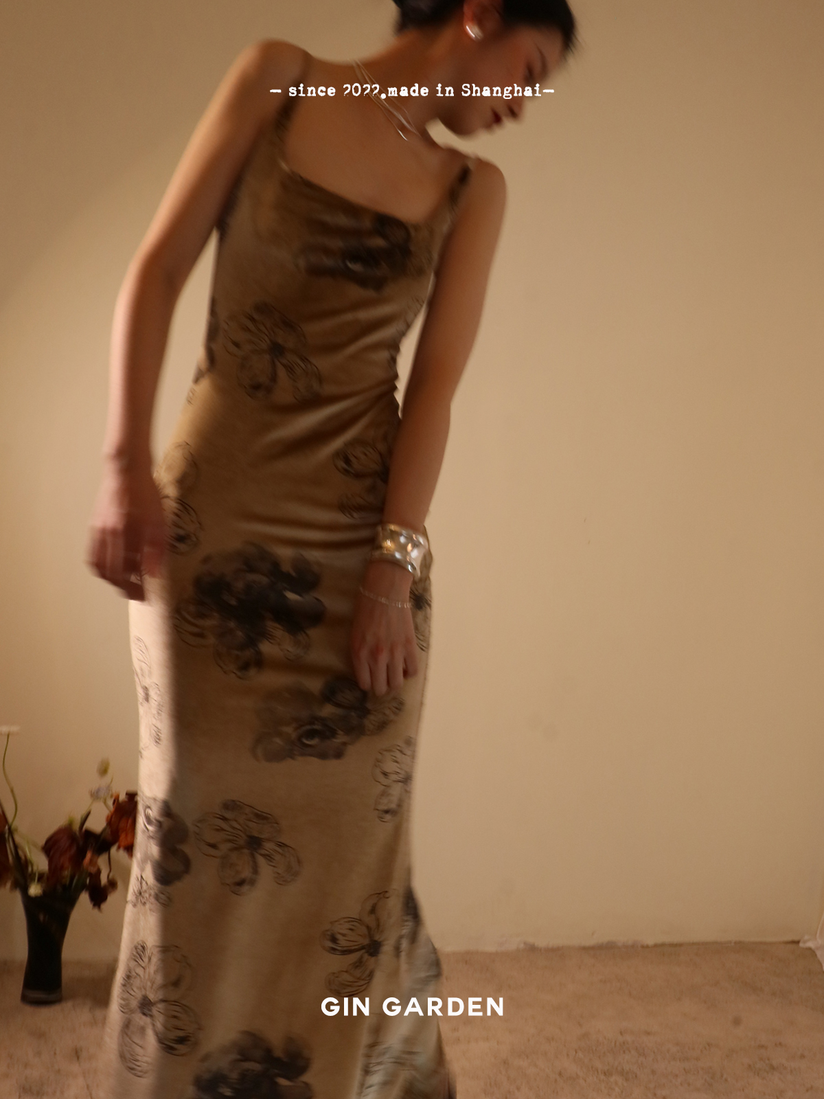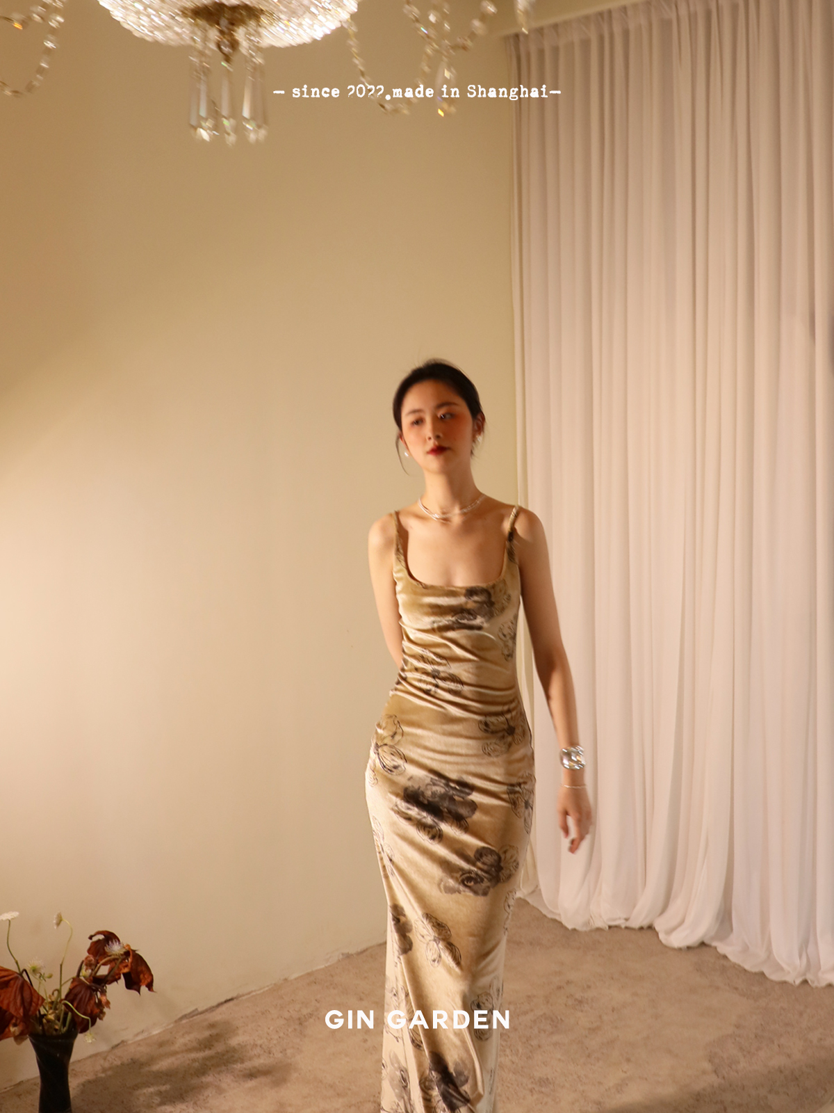 ASAYA3179 Painting velvet exquisite spring and summer suspender skirt