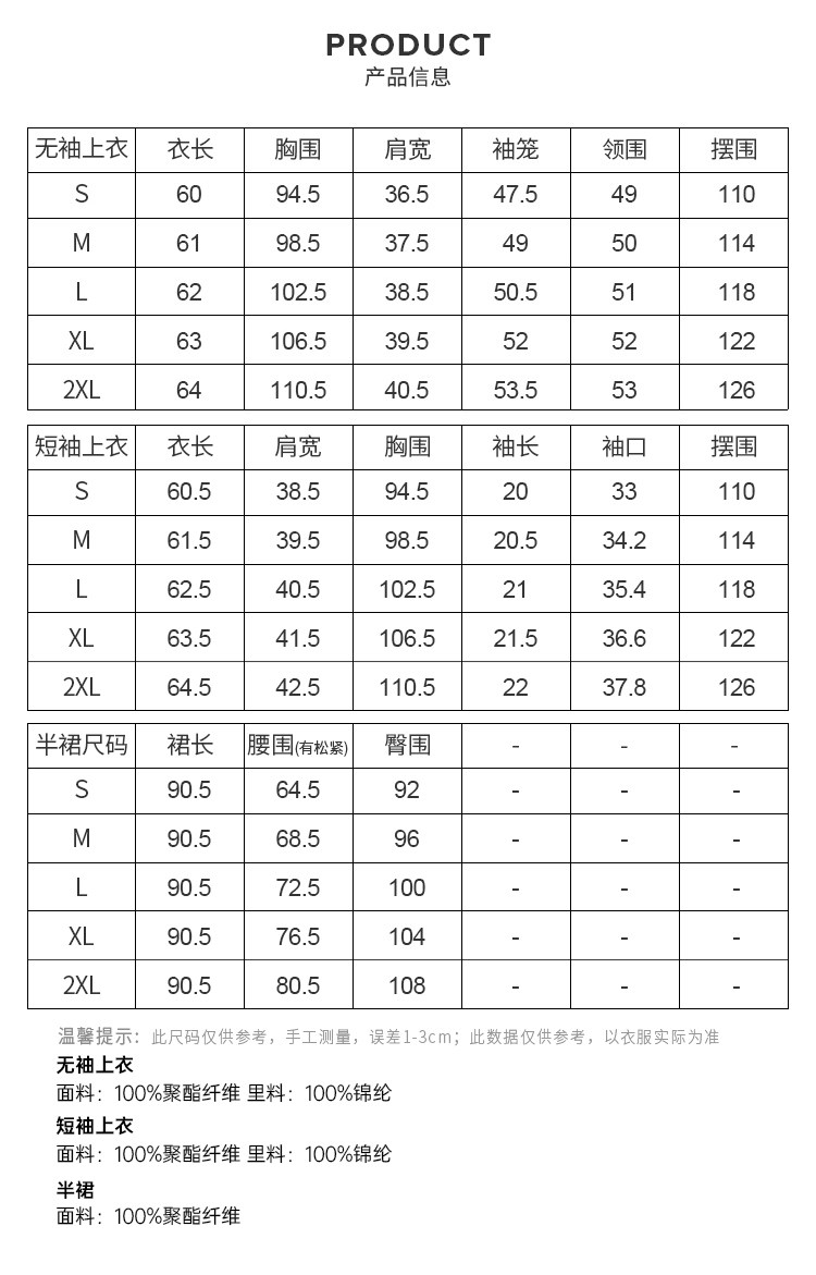 | color classification | Short sleeved top - beige, sleeveless top - beige, half skirt - champagne color, set (short sleeved top+half skirt), set (sleeveless top+half skirt) |
