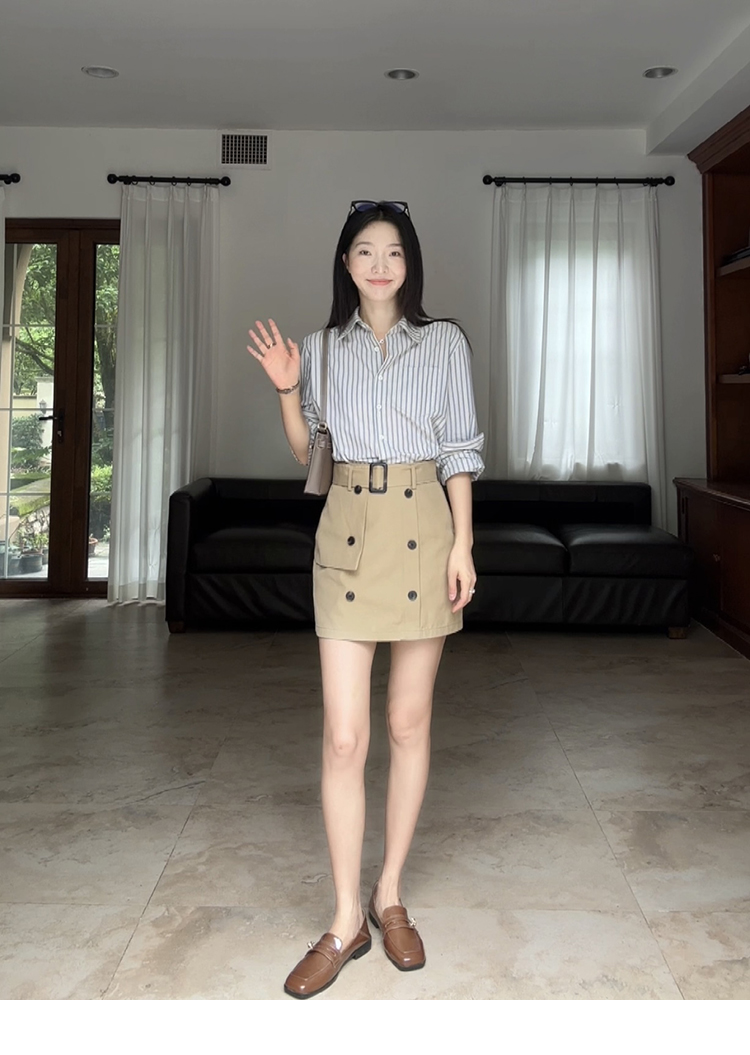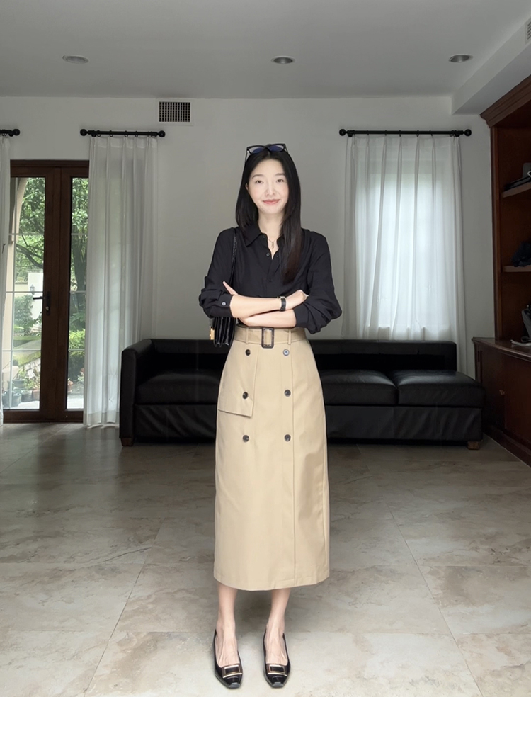 ASAYA3533 Khaki Workwear A-line Skirt with Belt (Short and Long Version)