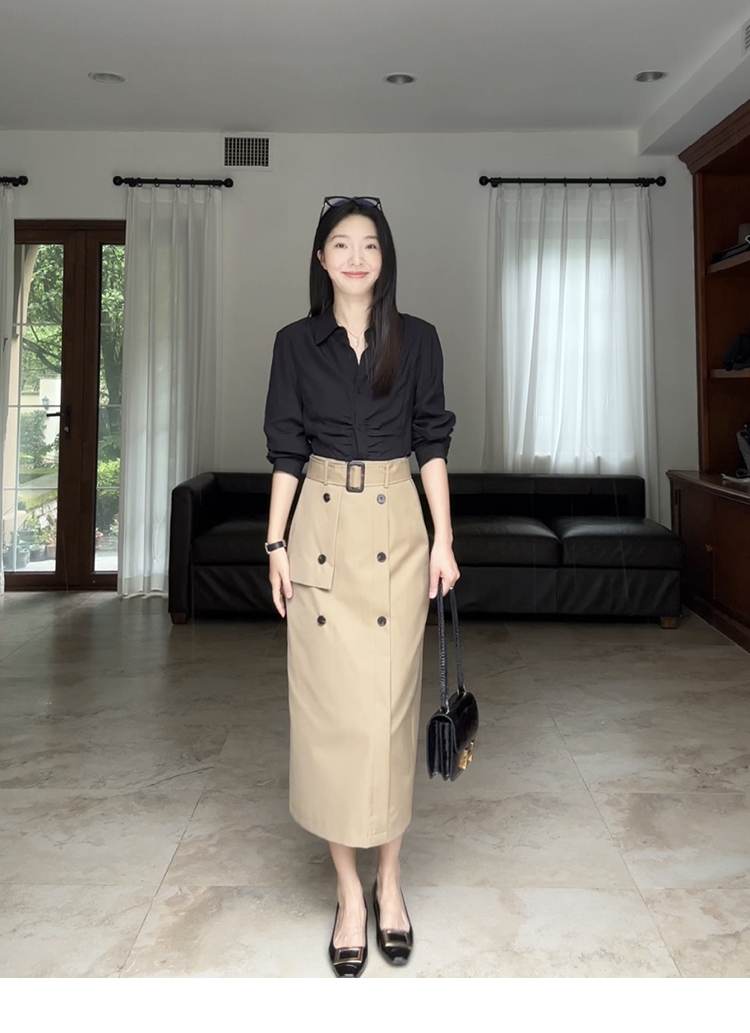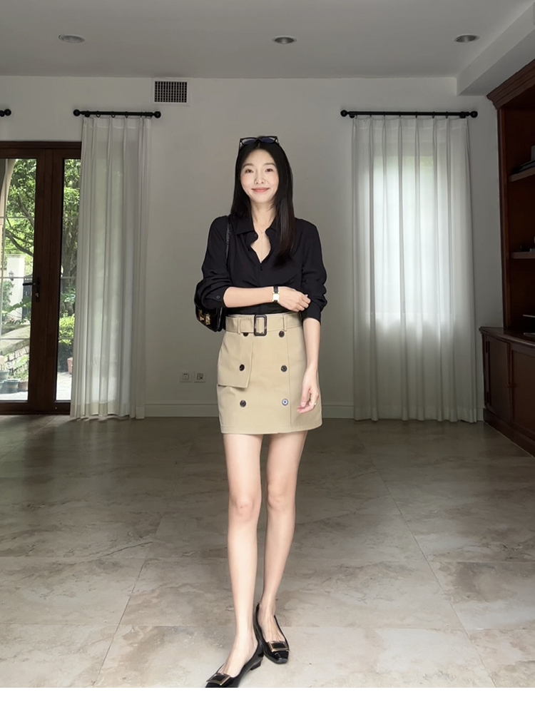 | Color classification | Shirt - Black Pre sale 10 working days Short skirt - Khaki Pre sale 10 working days Short set Pre sale 10 working days Long skirt - Khaki Pre sale 10 working days Long set Pre sale 10 working days |