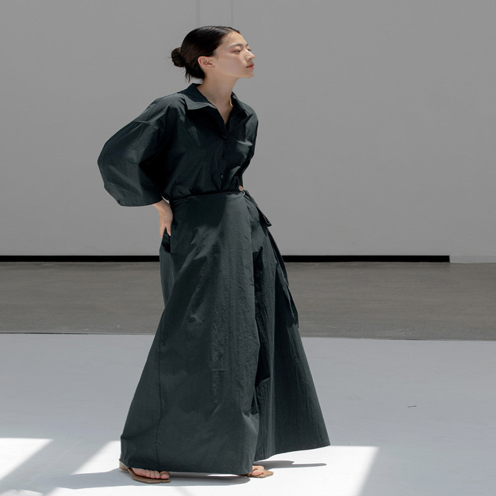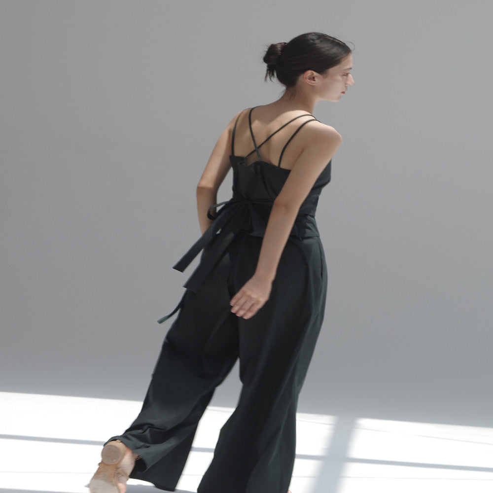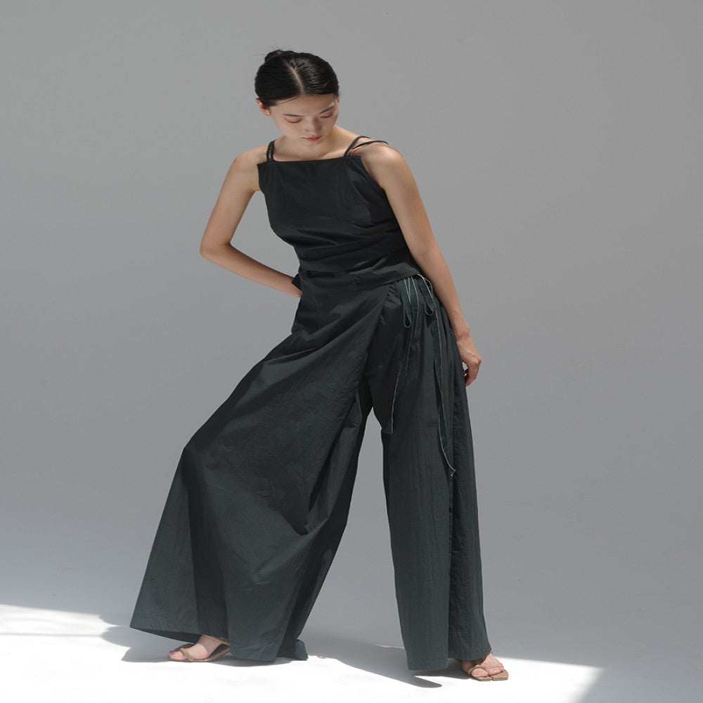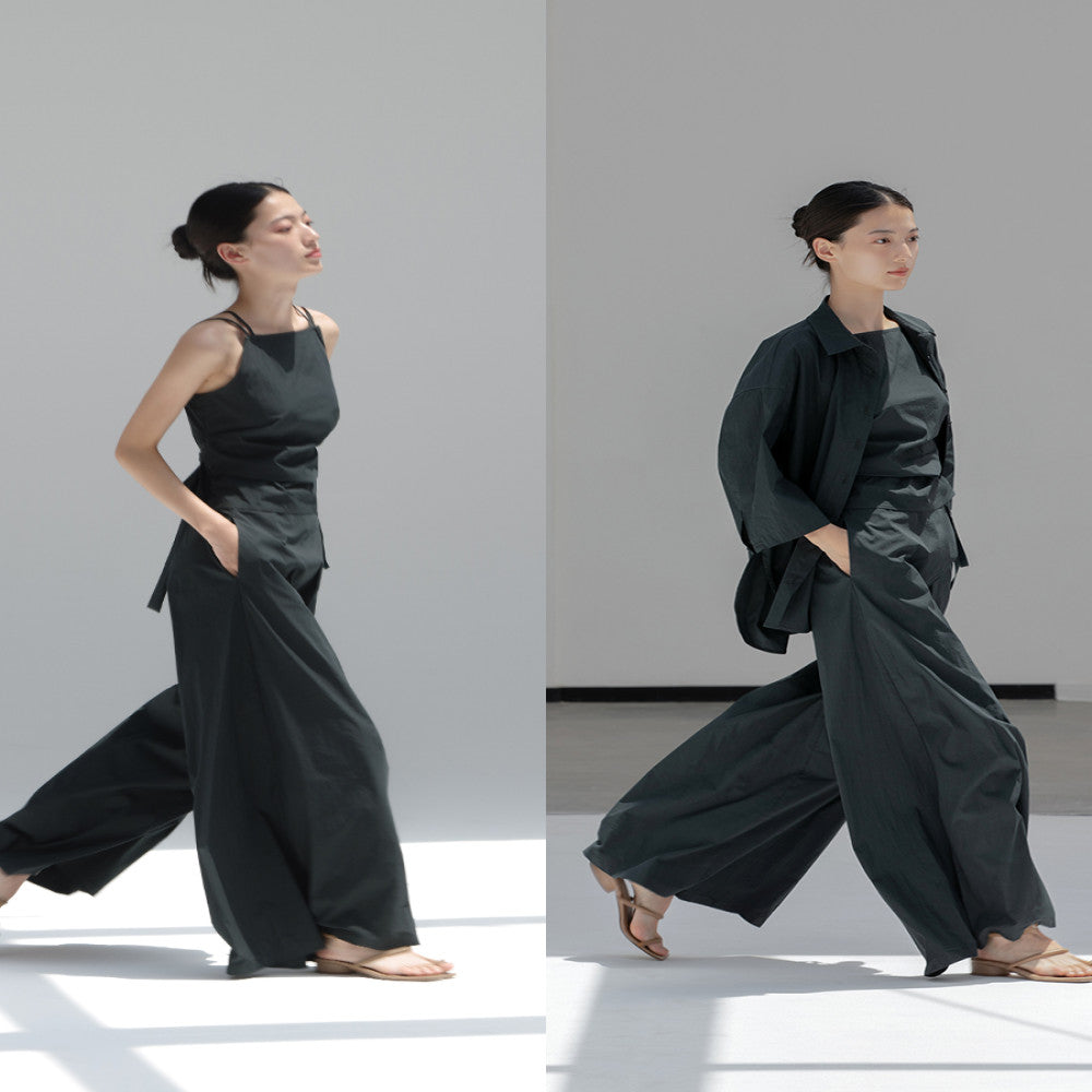 ASAYA-3812: Sleek All-Black Ensemble – Shirt, Sling Top, and Wide-Leg Pants ✨