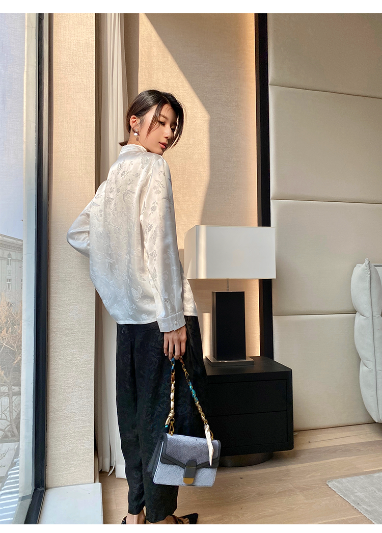 ASAYA4226 🤍 Tang Suit-Inspired Silk Blouse 🦋✨