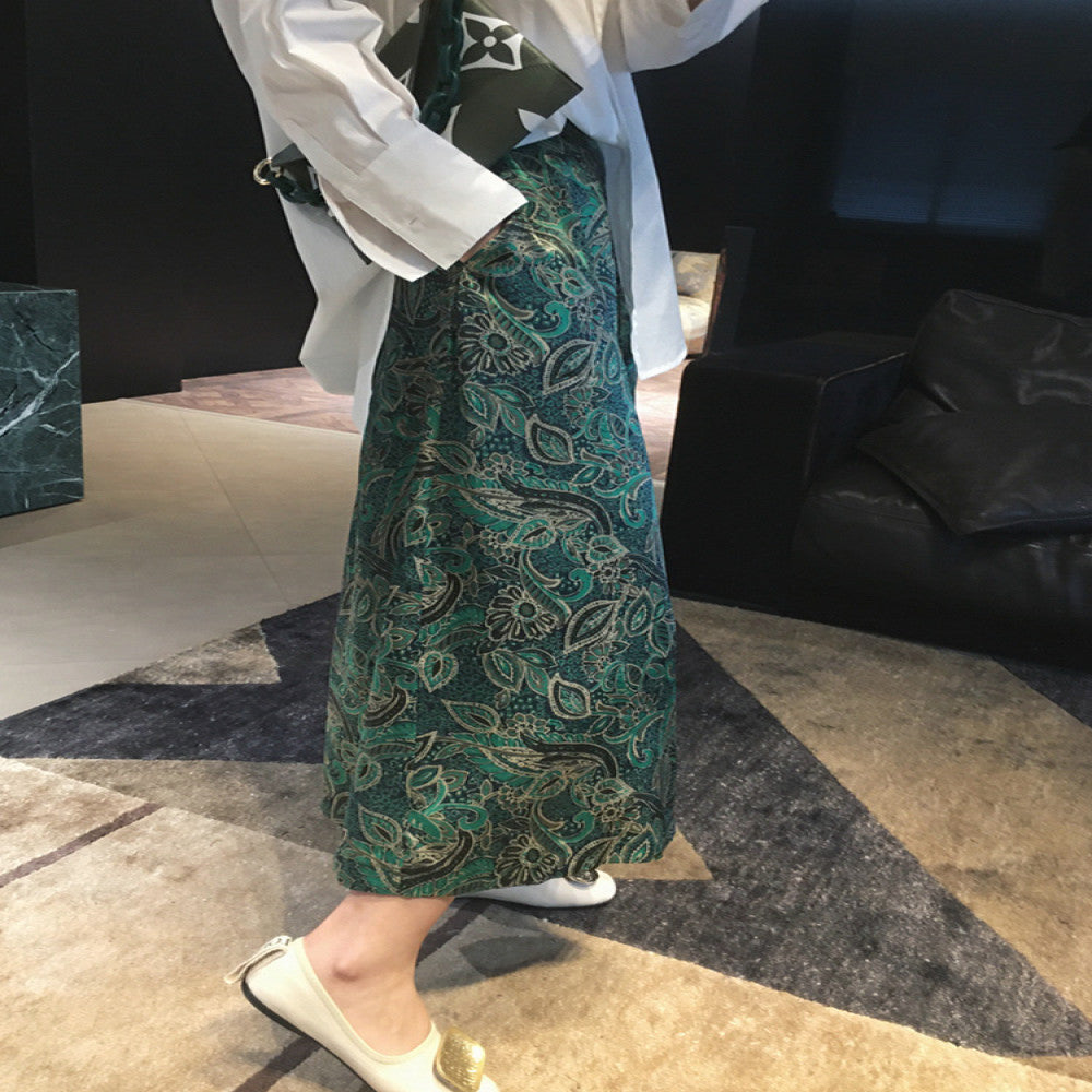 ASAYA4224 💚 Silk Wide-Leg Pants in Elegant Green Paisley Print 🏛️✨