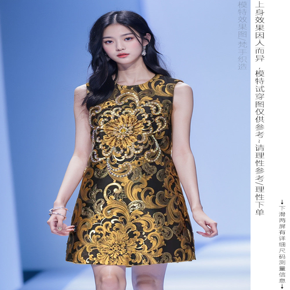 ASAYA3944: Golden Majesty Jacquard Dress ✨
