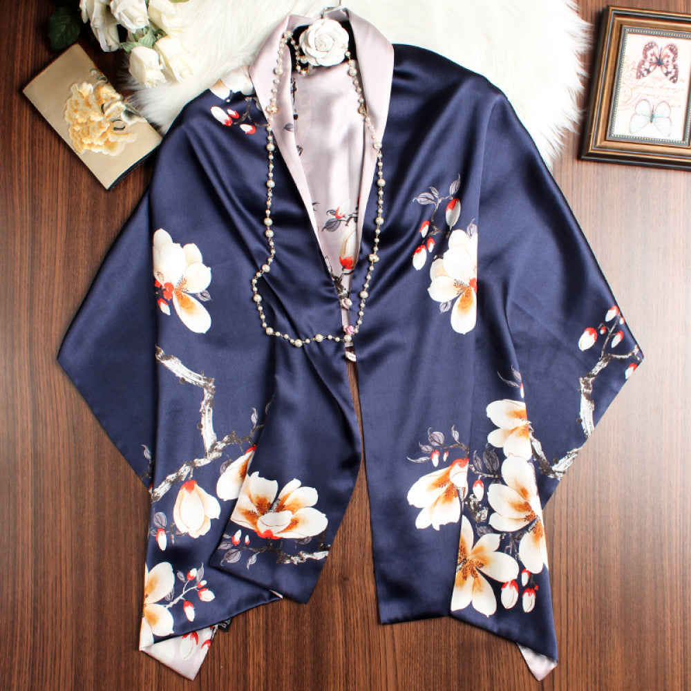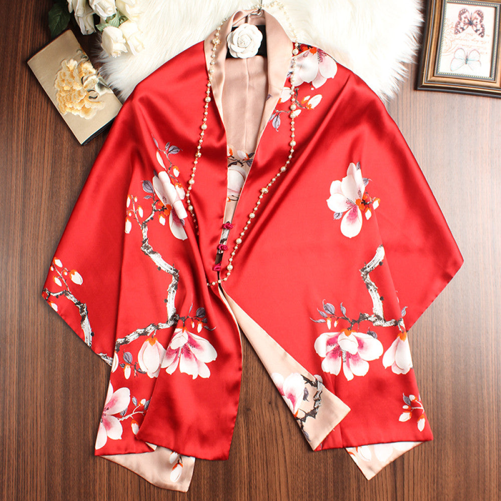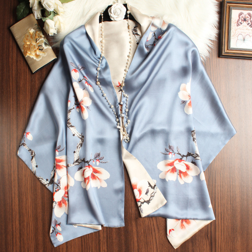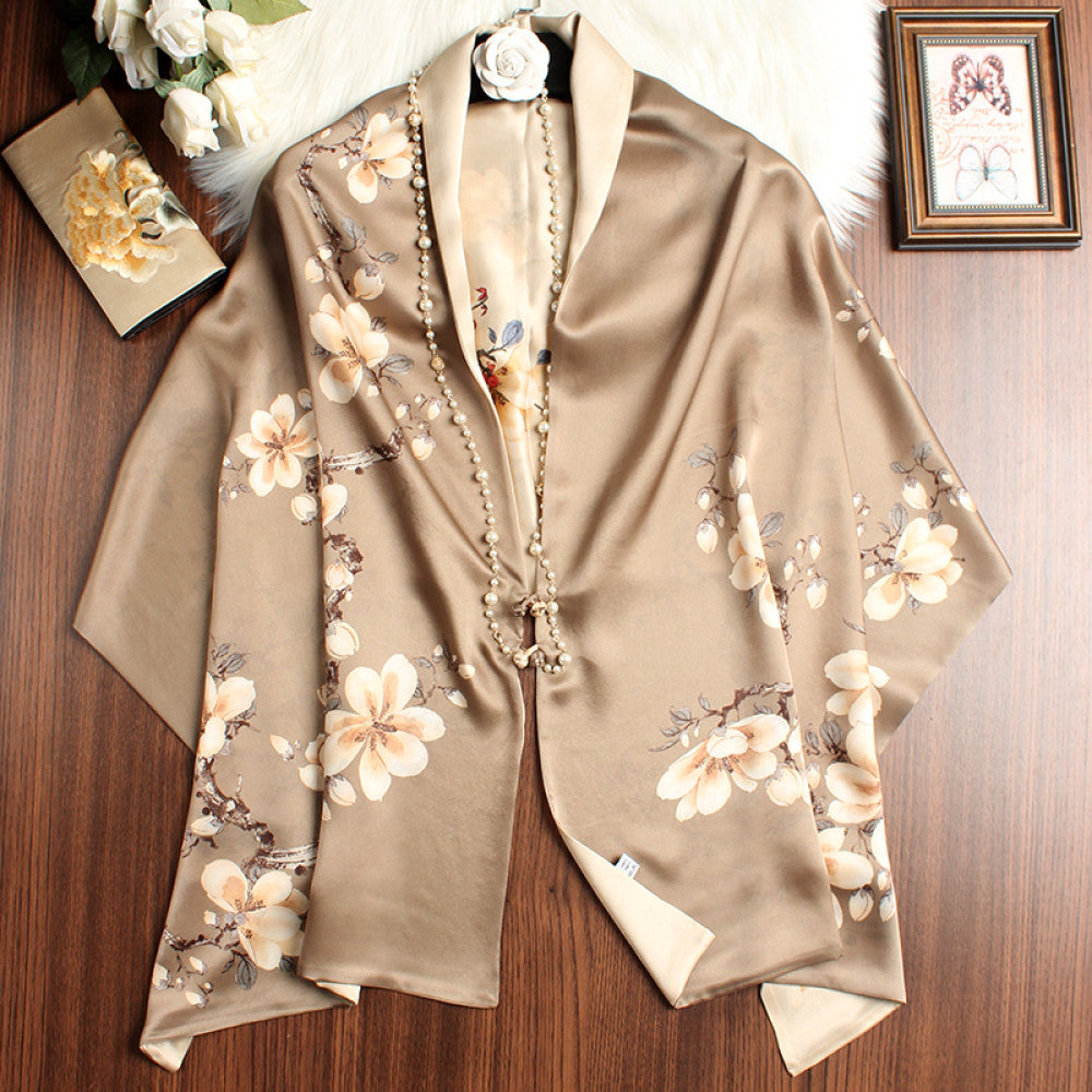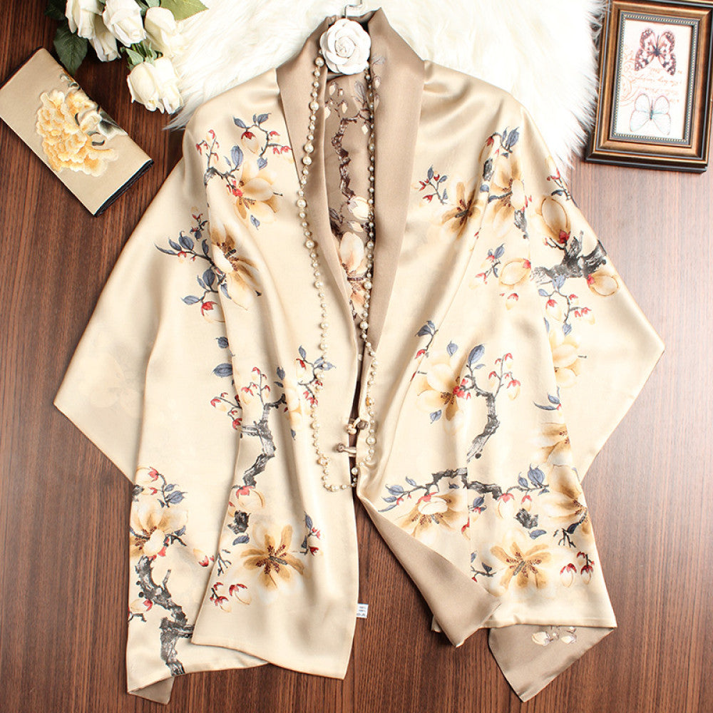 ASAYA4379 - Double-Sided Floral Silk Shawl with Toggle Buttons 🌿🕊️