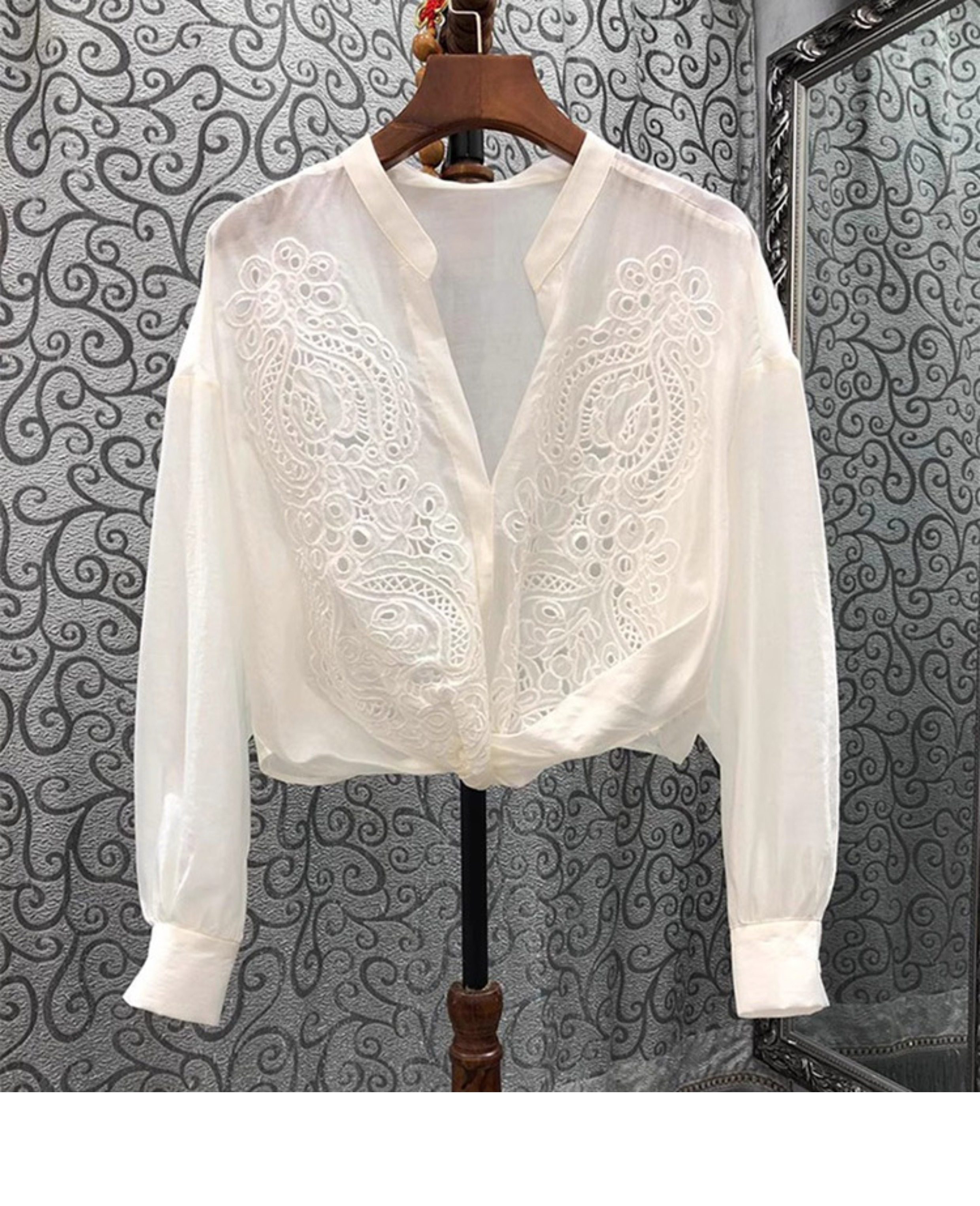 ASAYA5136 – Éclat Embroidery Silk Blouse 🤍✨