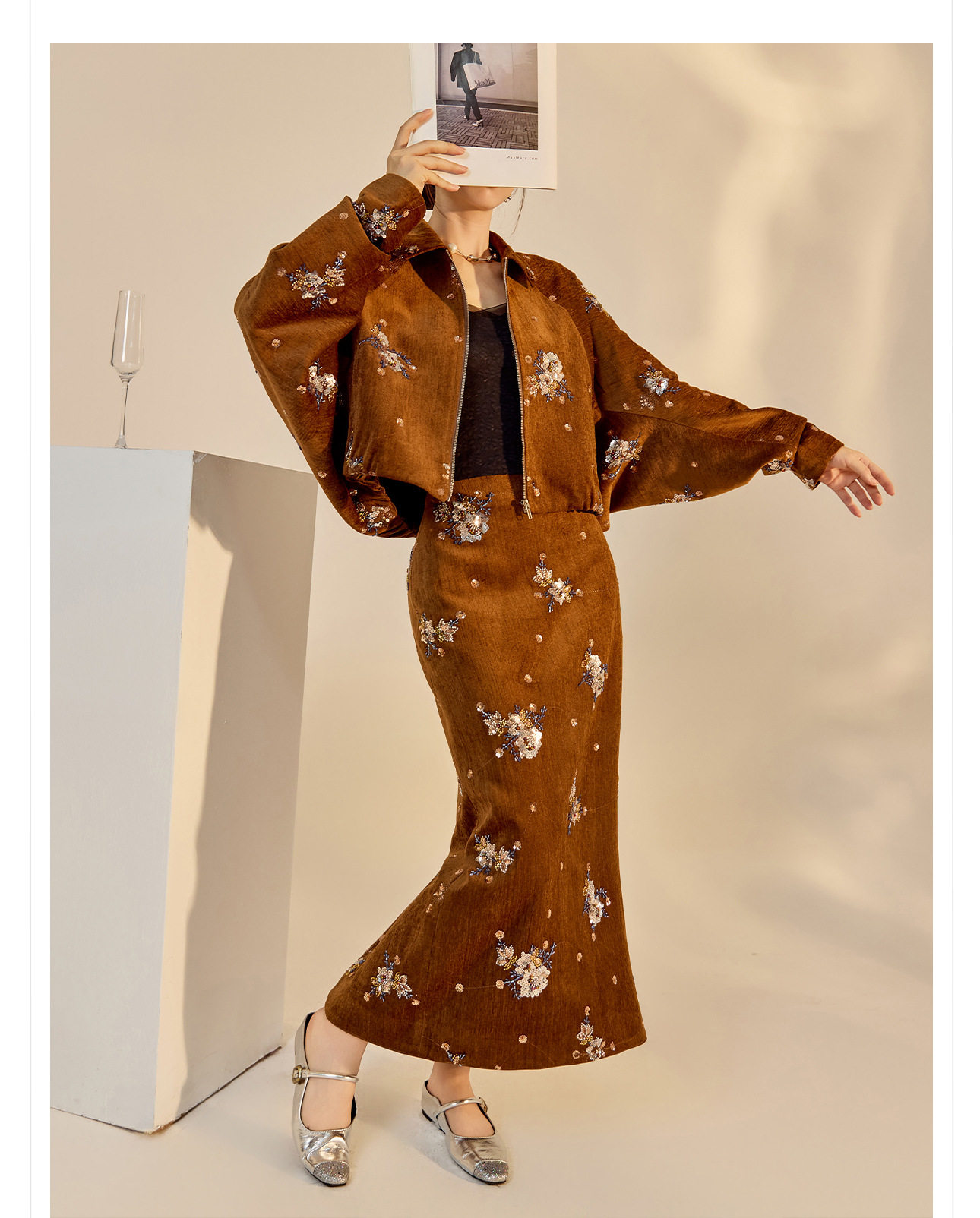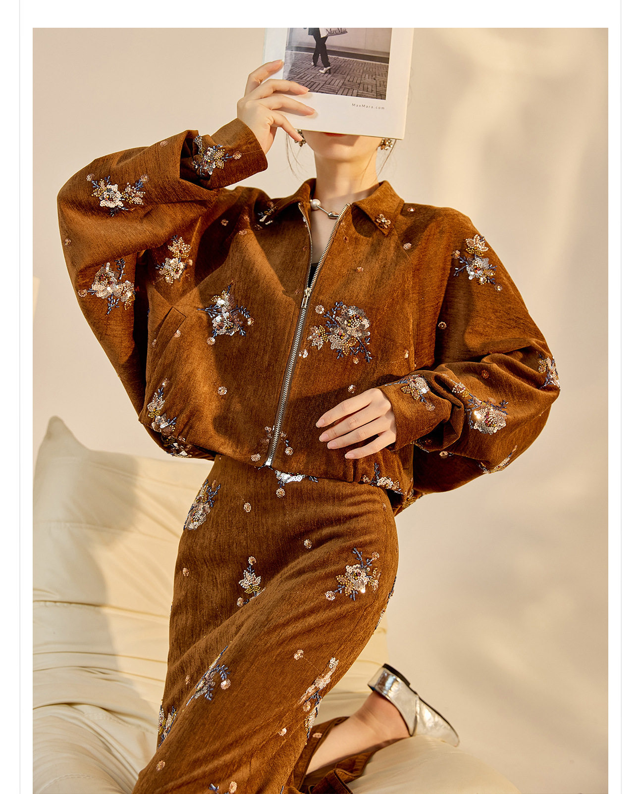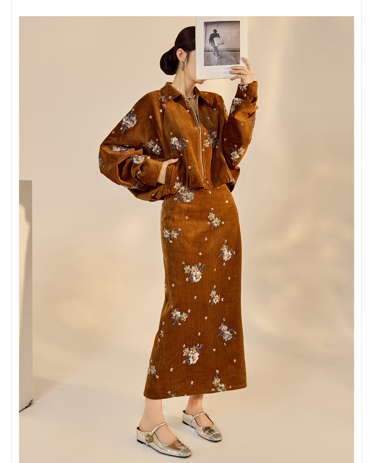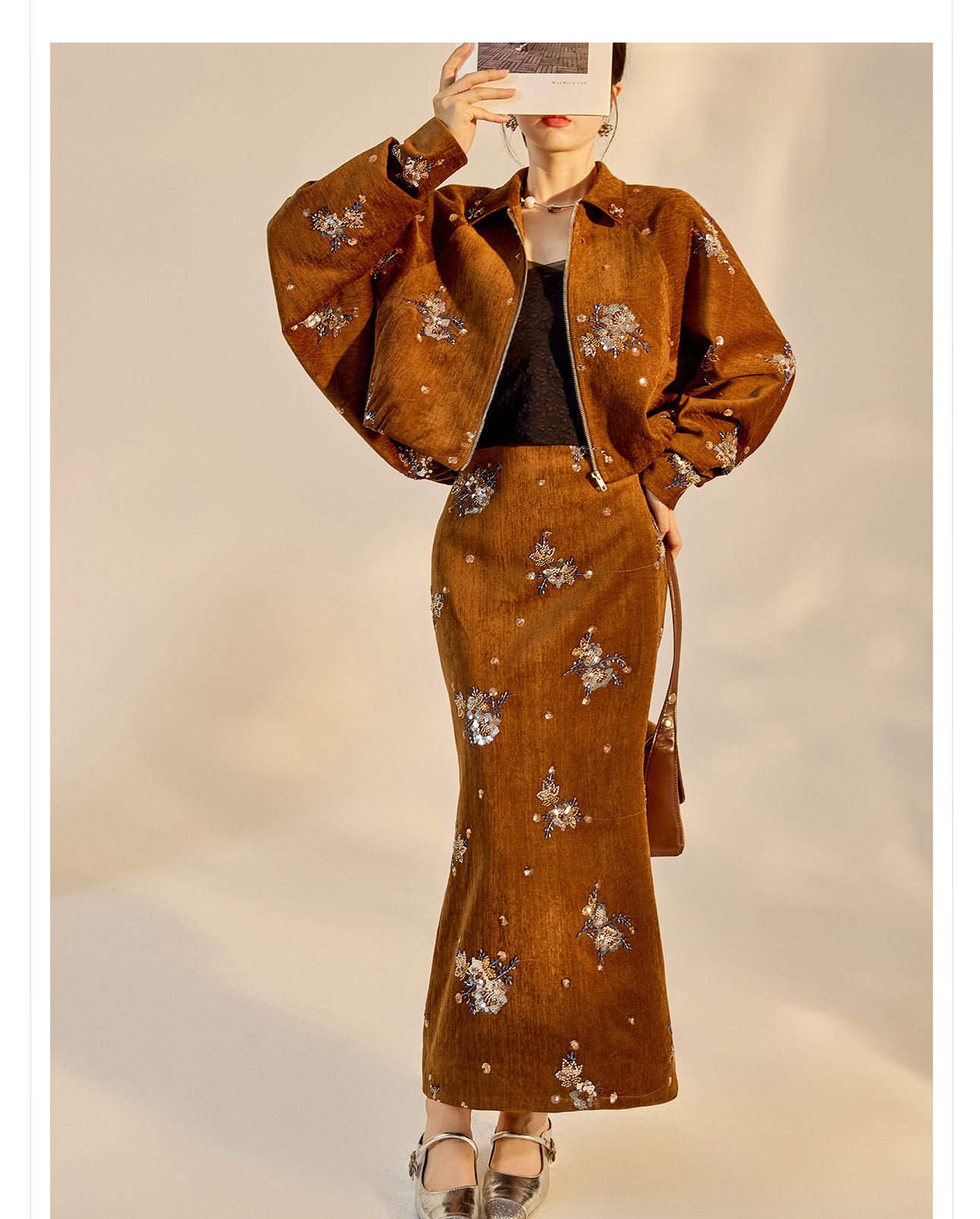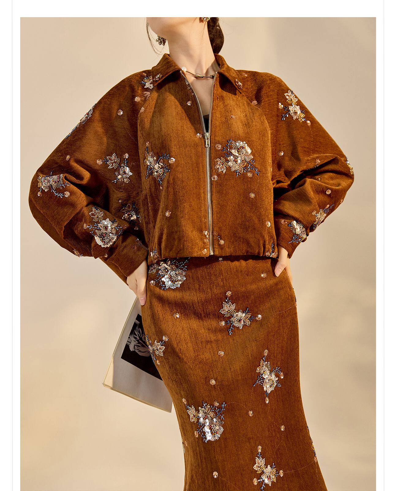 ASAYA5694 – Amber Blossom Velvet Set 🤎✨