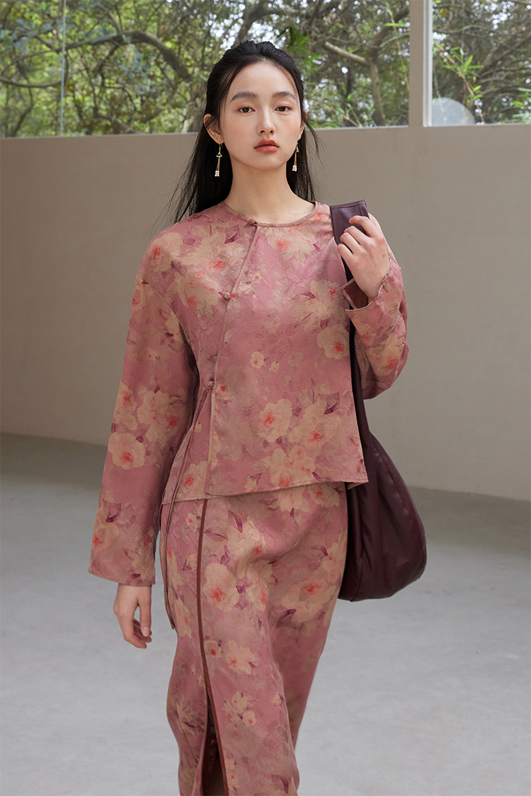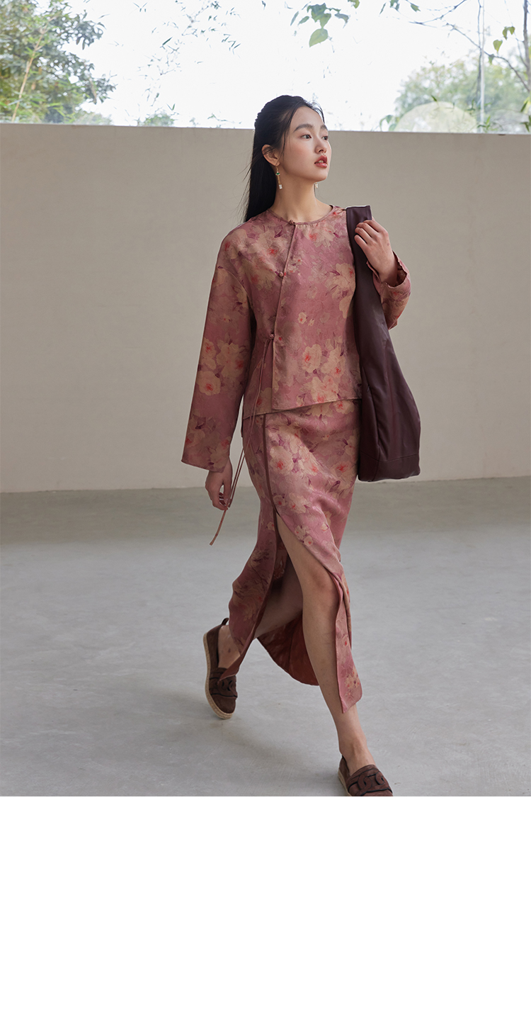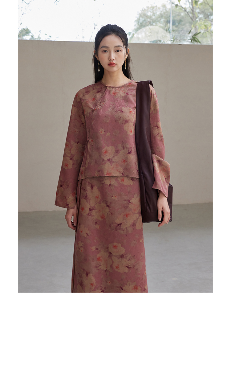 ASAYA3115 Mulberry Silk New Chinese style diagonal placket cheongsam skirt