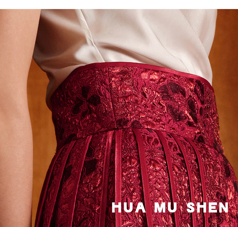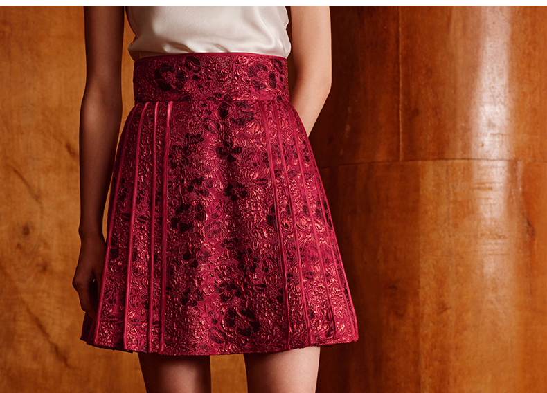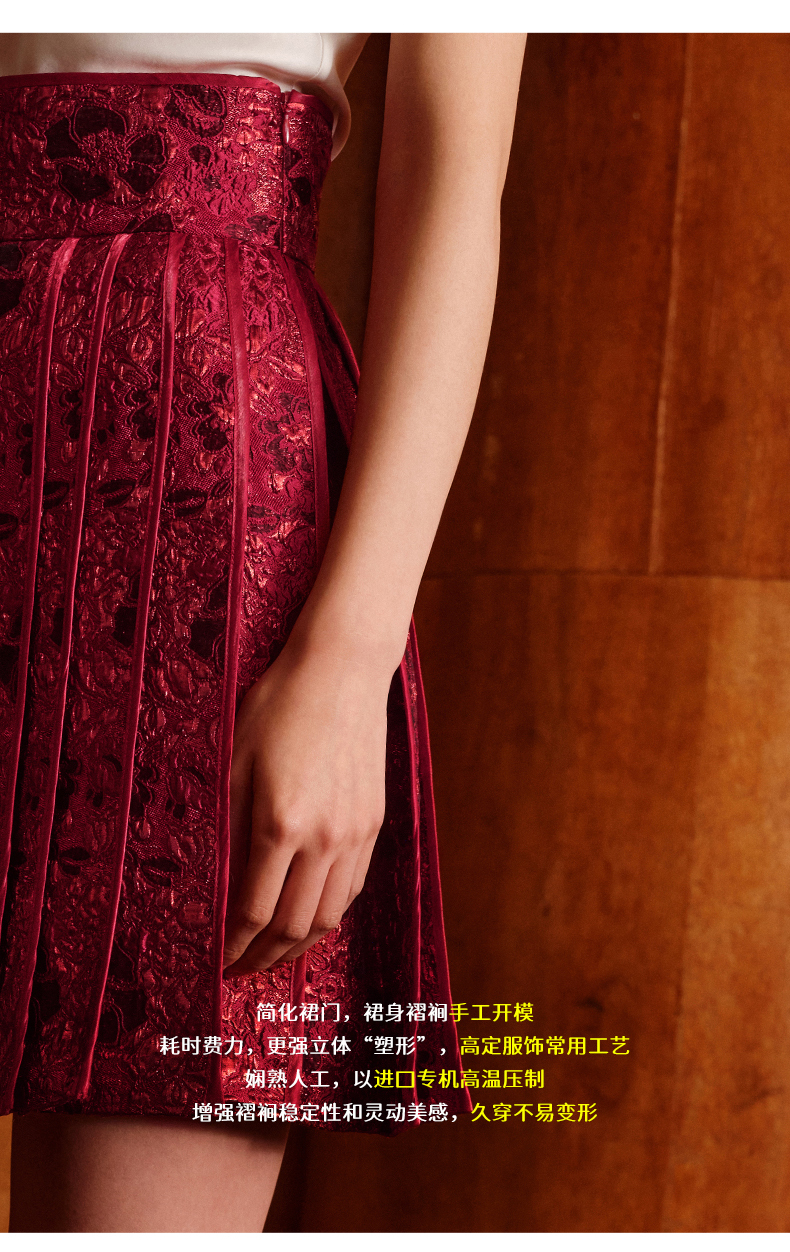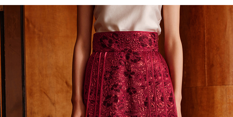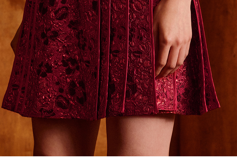 ASAYA5050 – Crimson Bloom Pleated Skirt 🌹💫