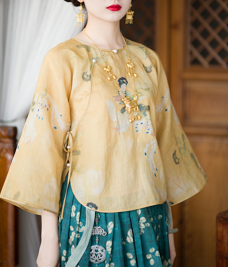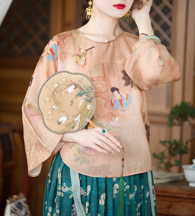 ASAYA3227 Chinese retro style in various colors, inverted large-sleeved loose daily tops
