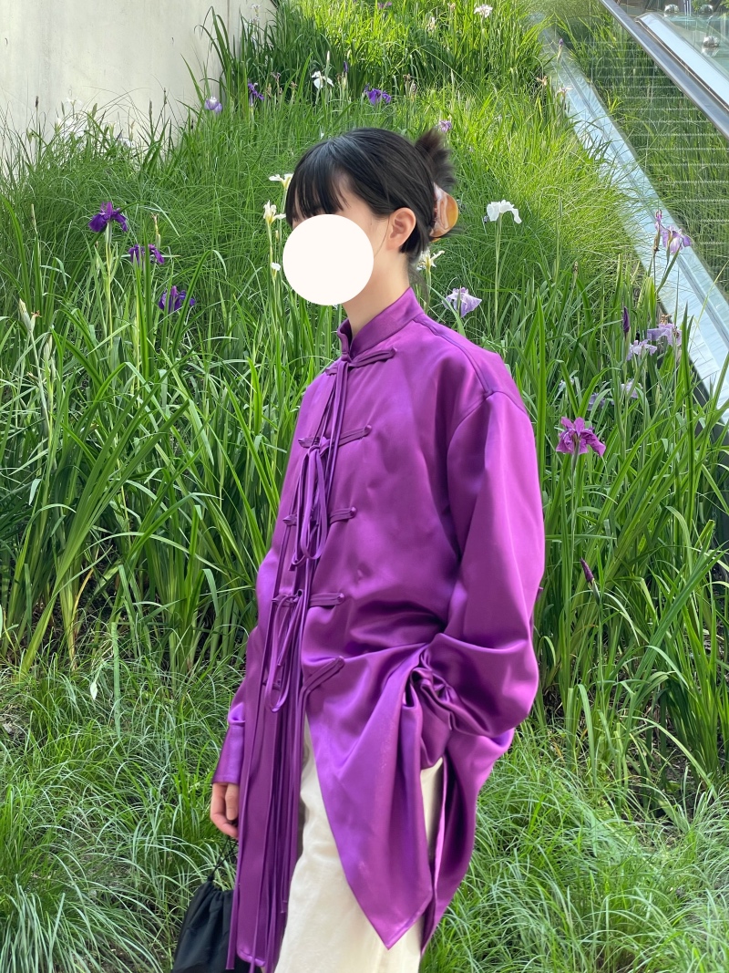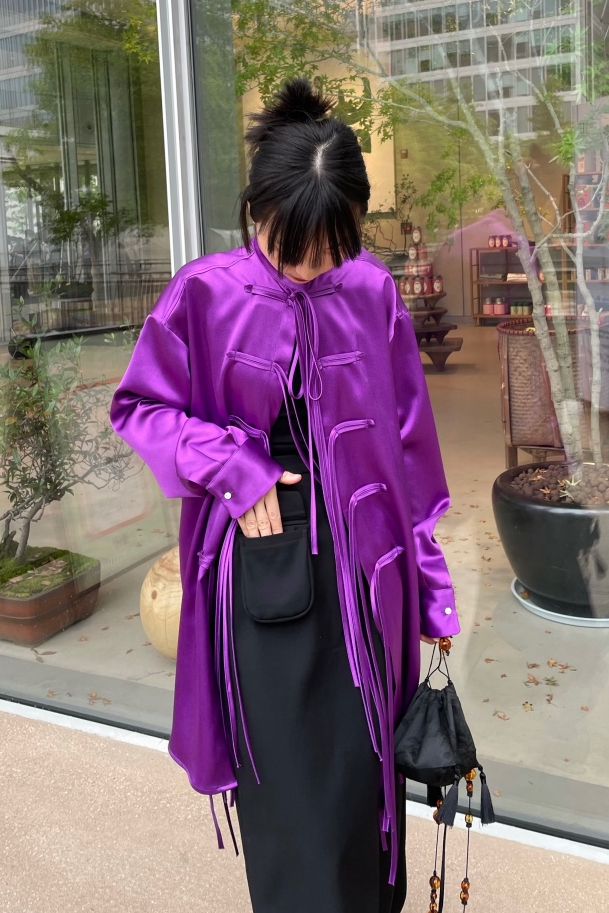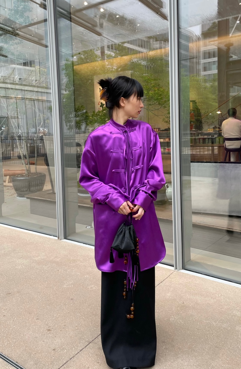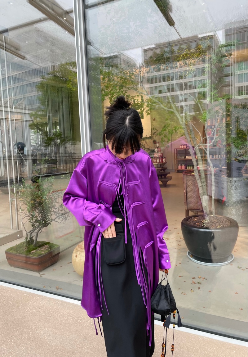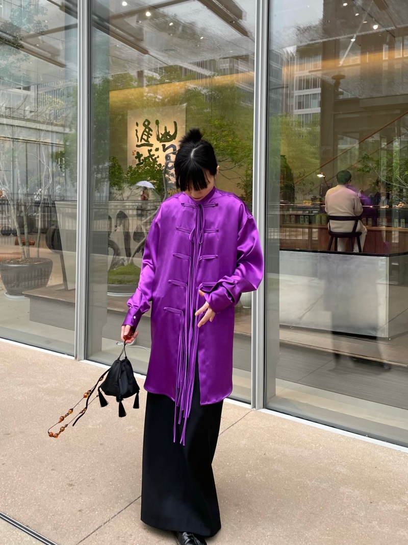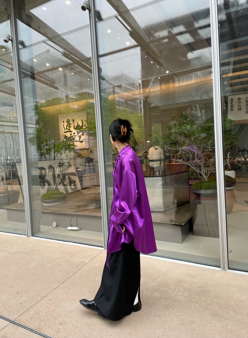 Asaya839 - ilikeiitsomuchban satin drape purple new Chinese stand-up collar shirt