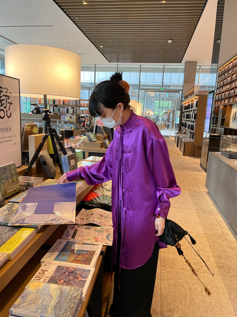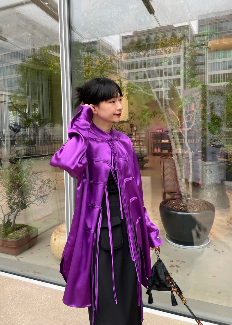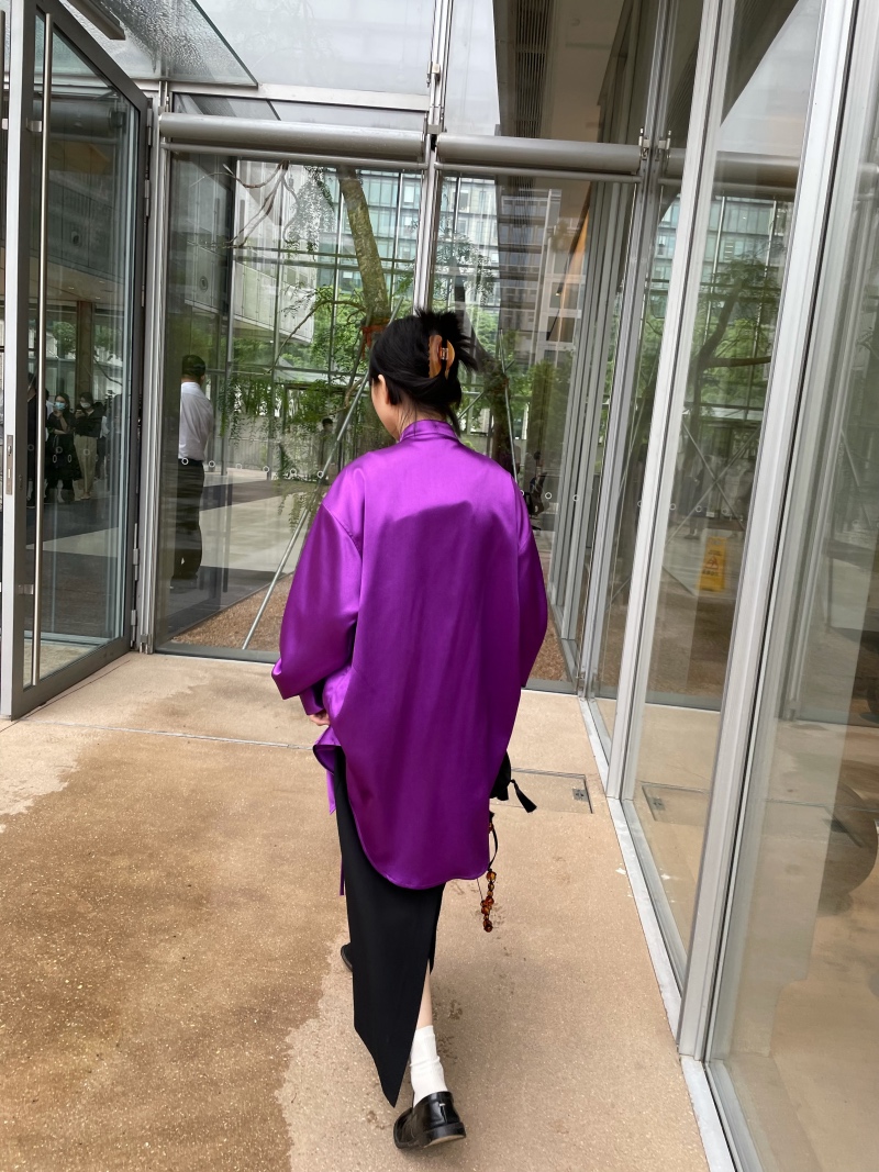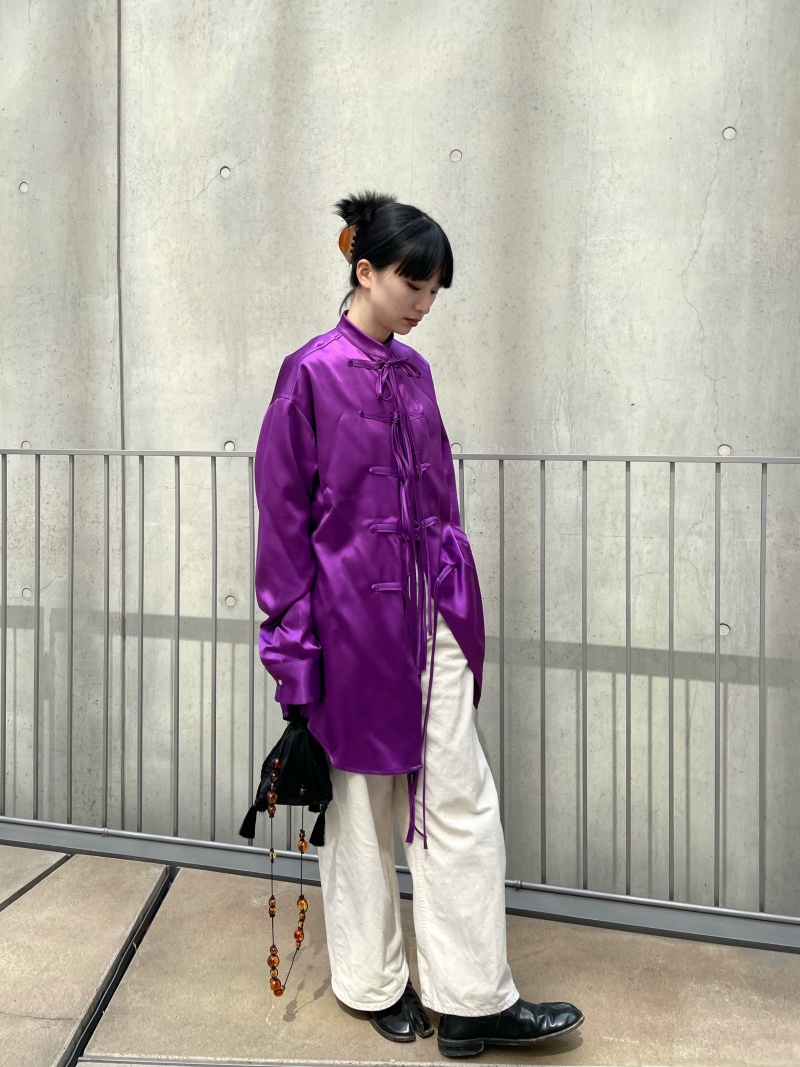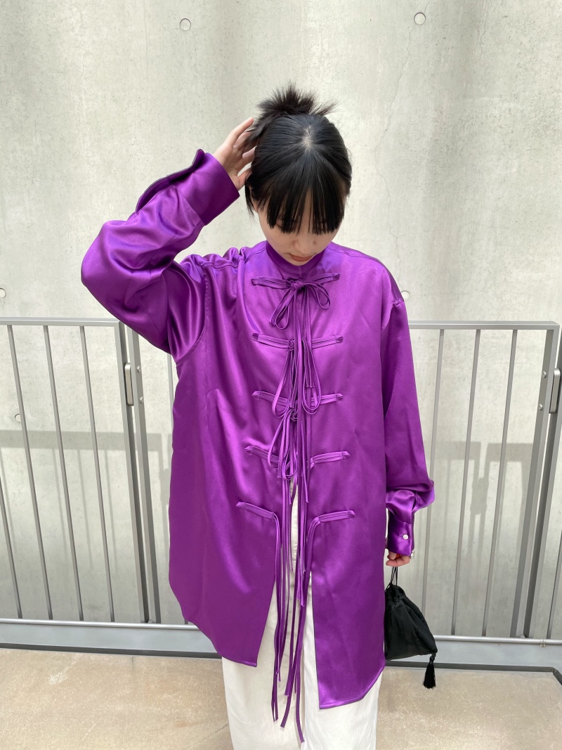 Asaya839 - ilikeiitsomuchban satin drape purple new Chinese stand-up collar shirt