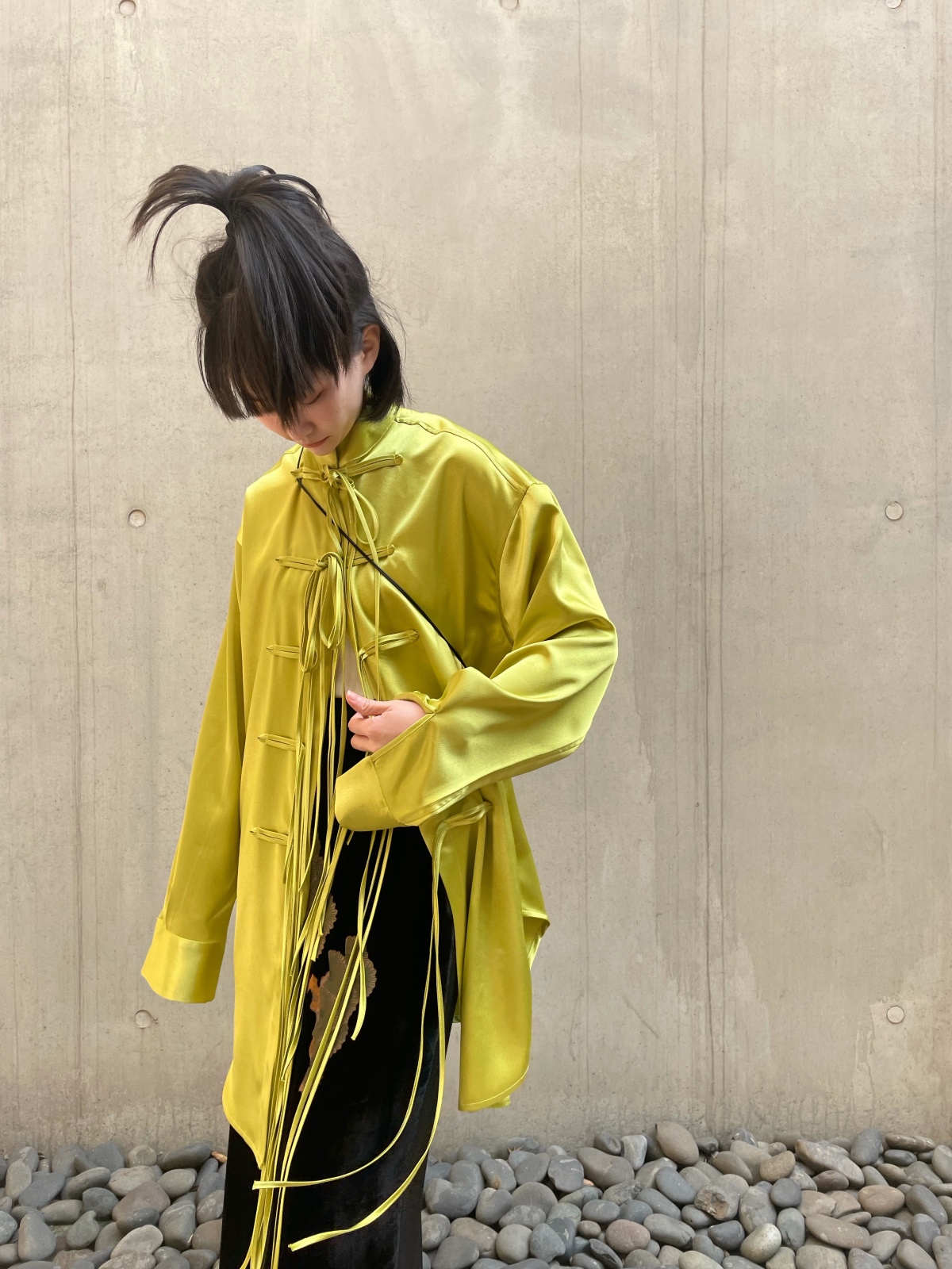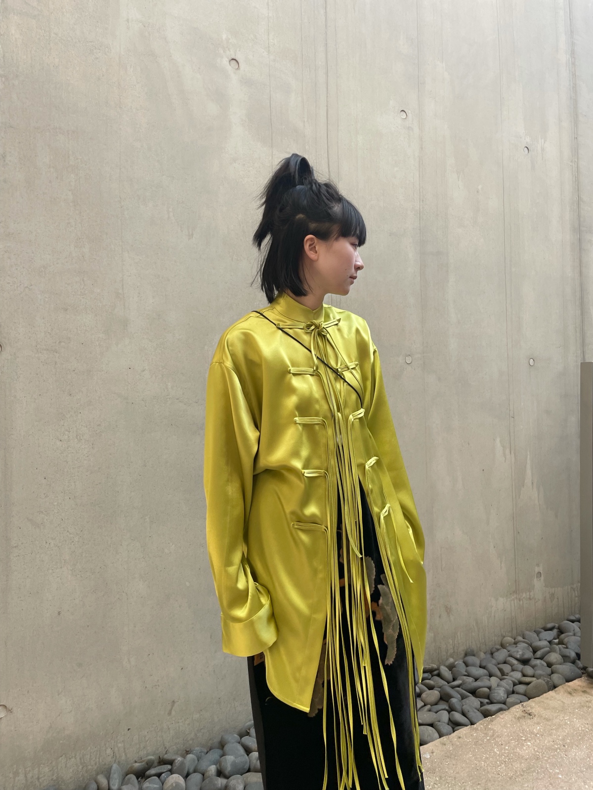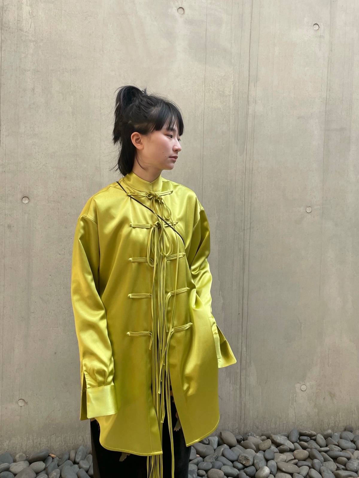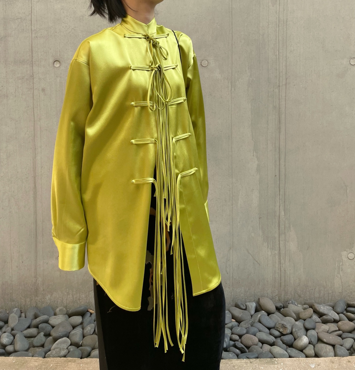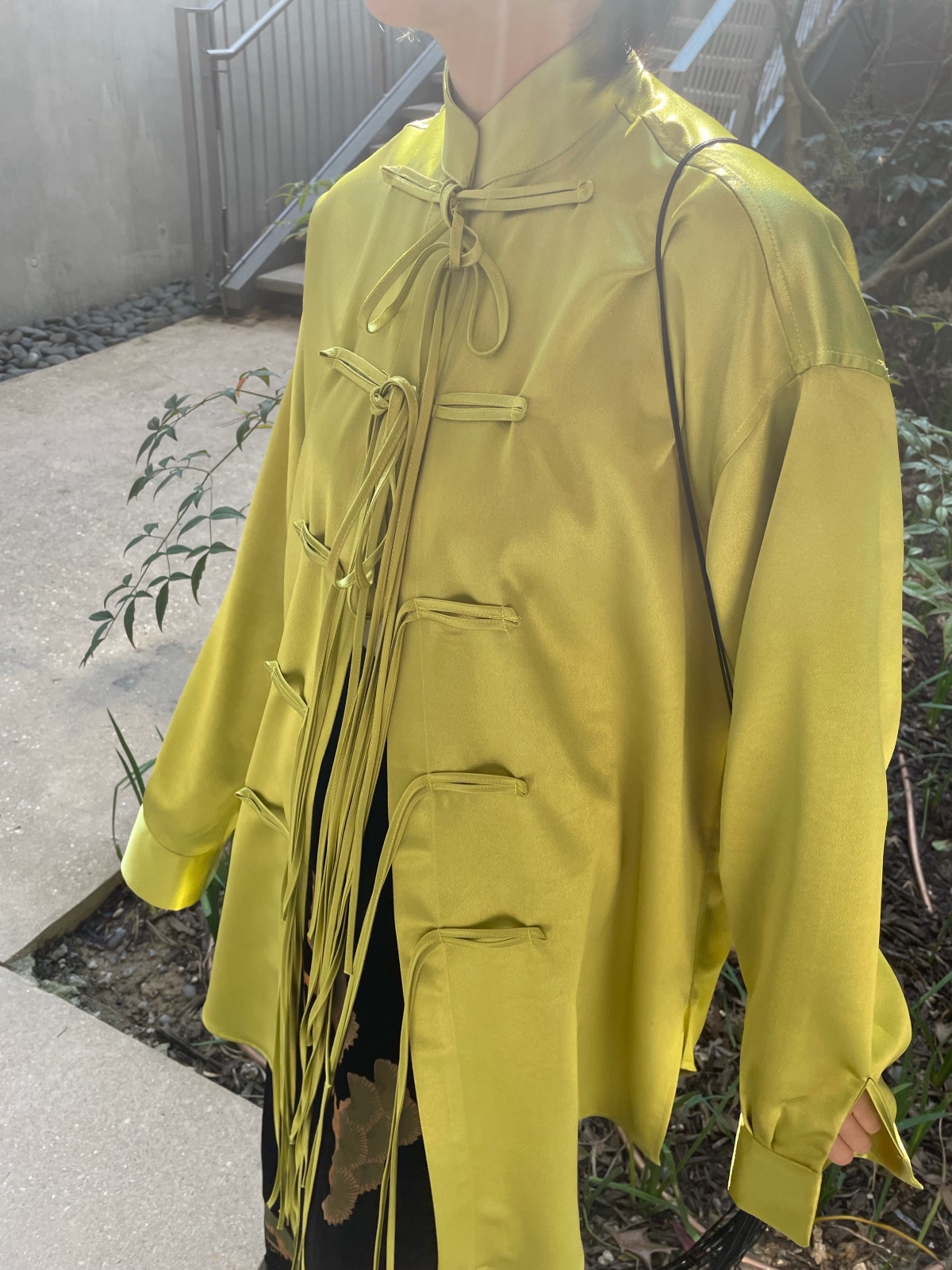Asaya948 - Ilikeitomouch original design new Chinese style improved lace up green satin green shirt