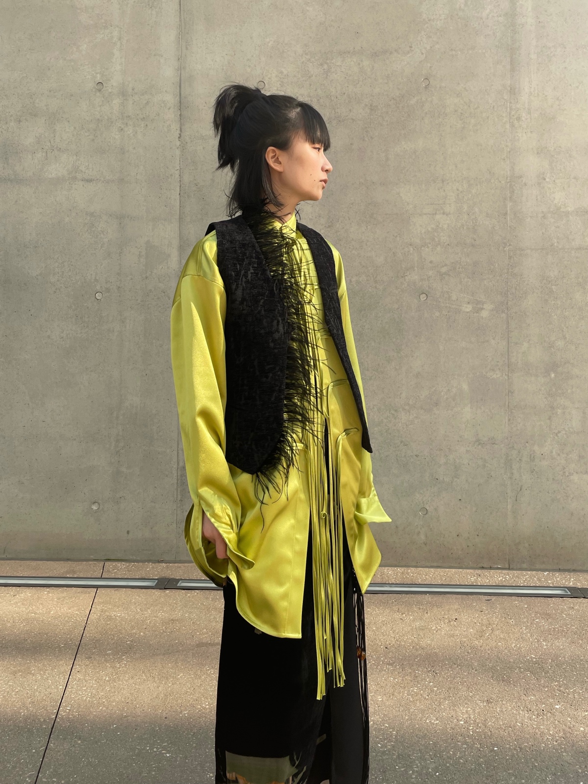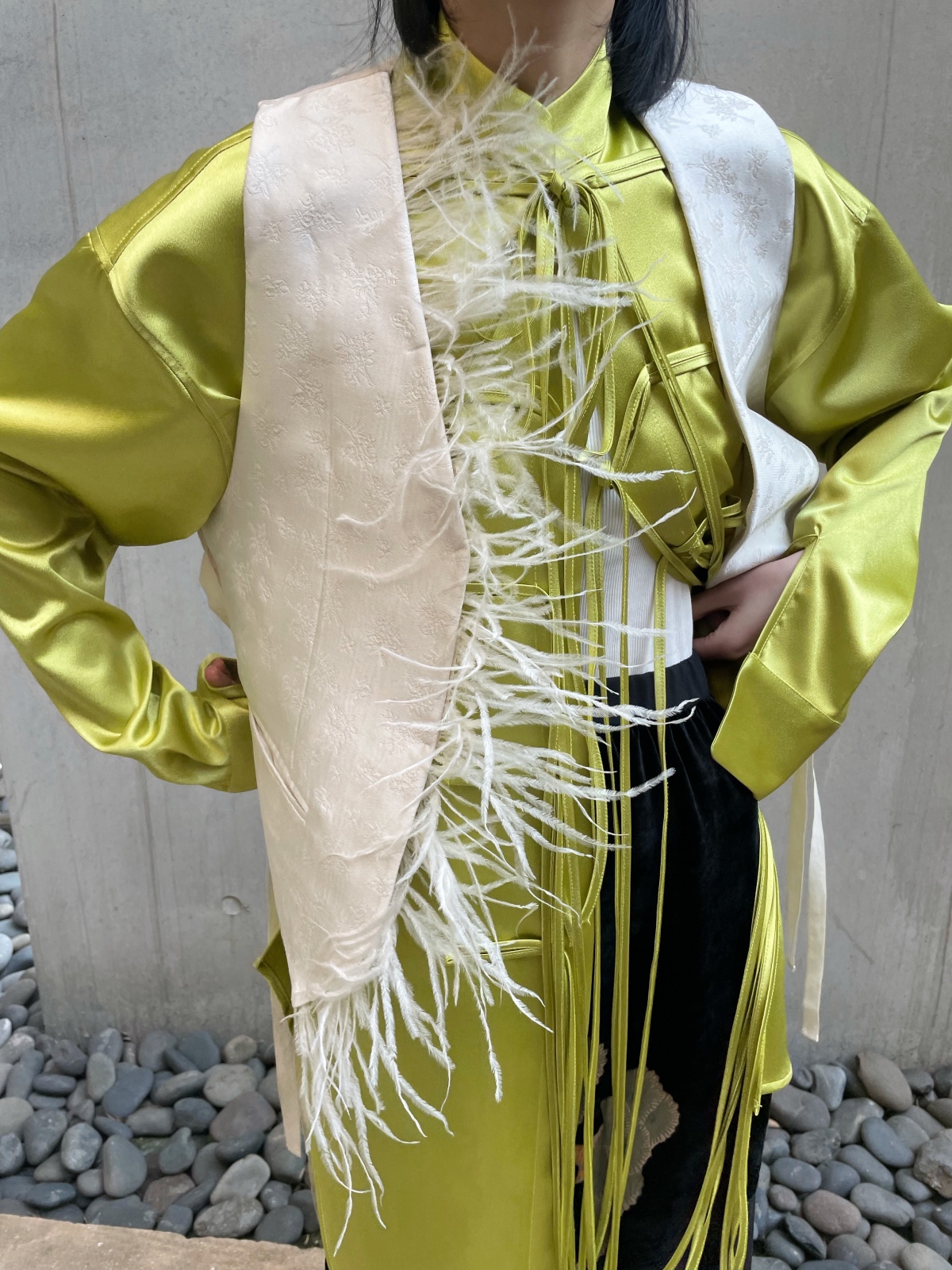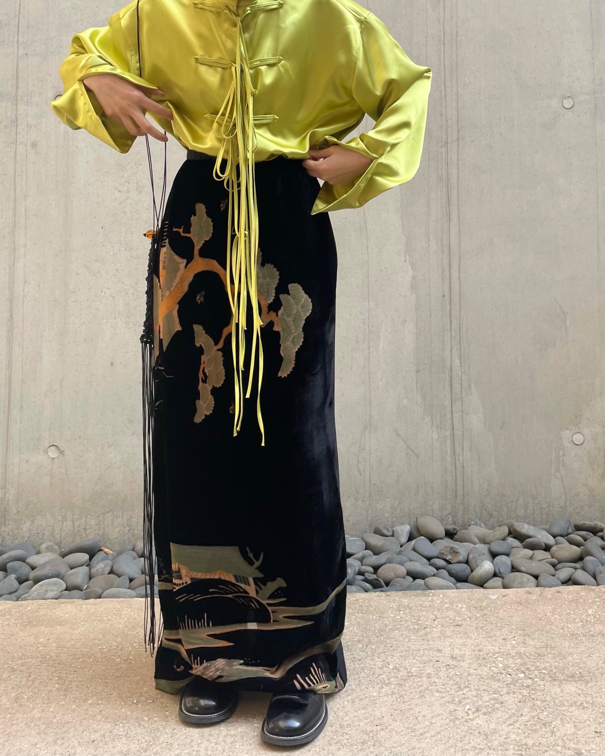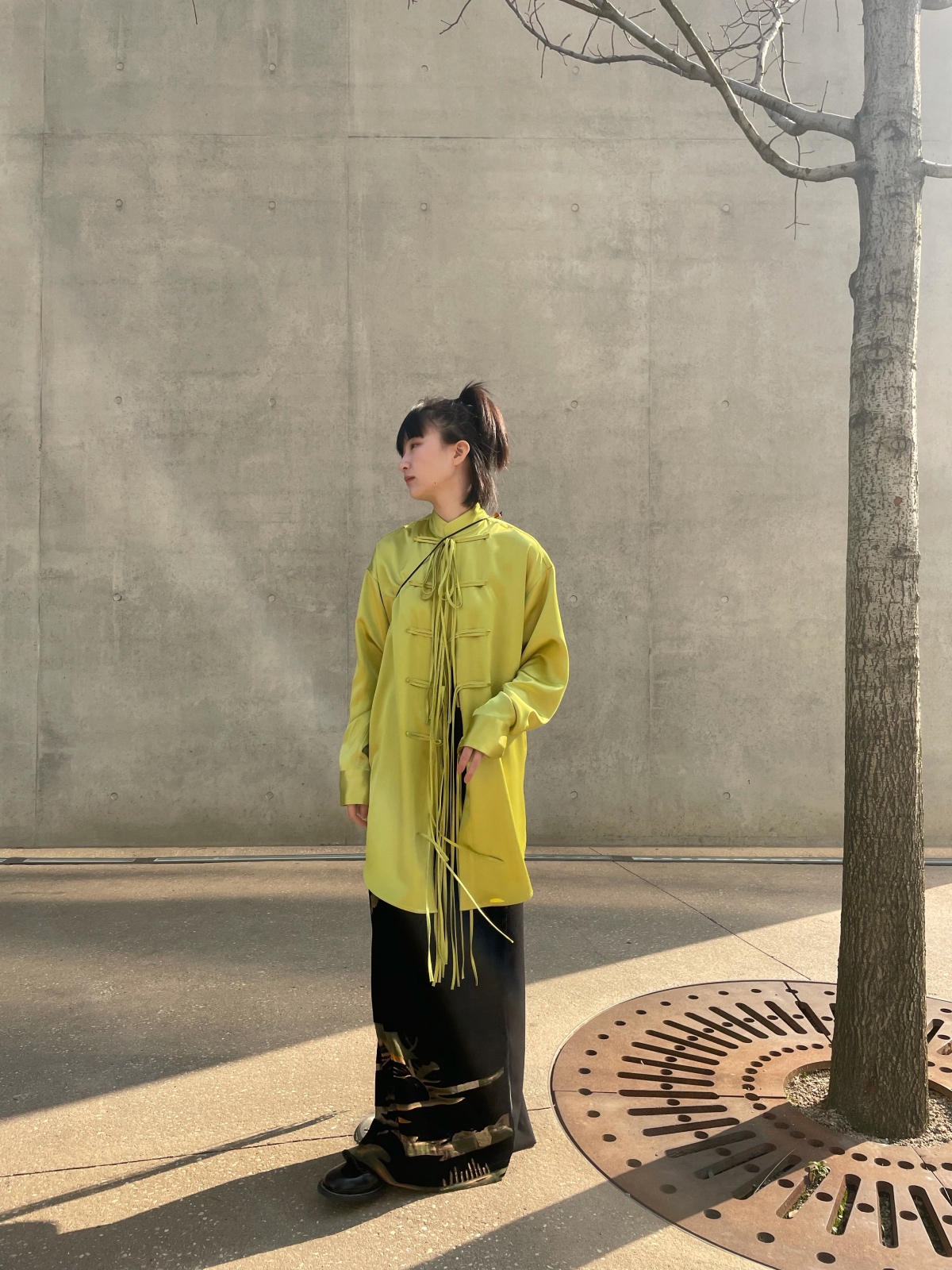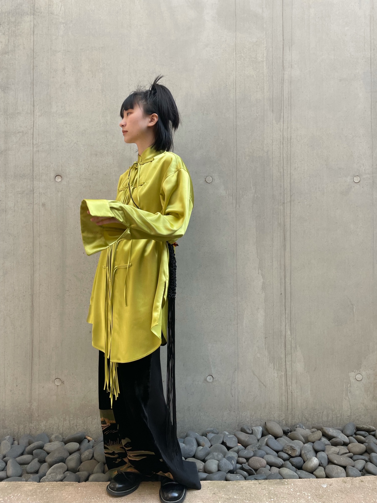 Asaya948 - Ilikeitomouch original design new Chinese style improved lace up green satin green shirt