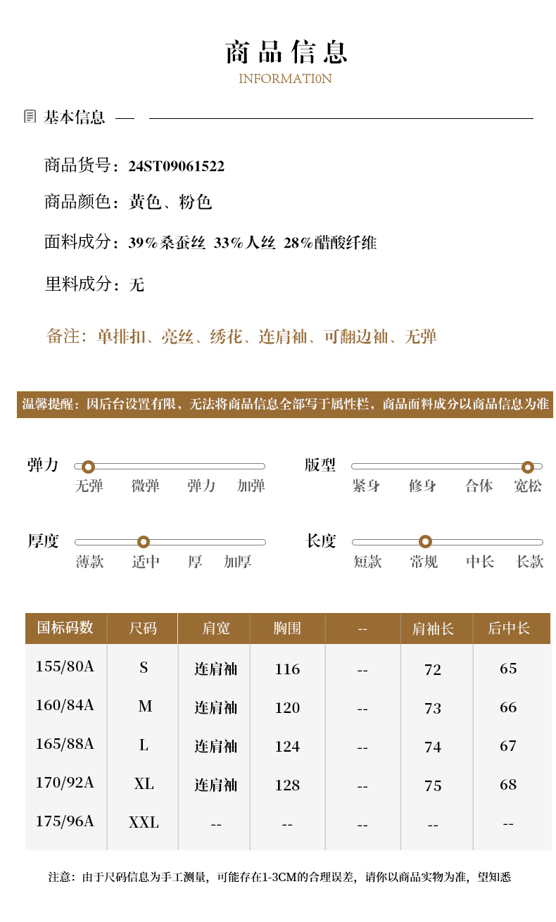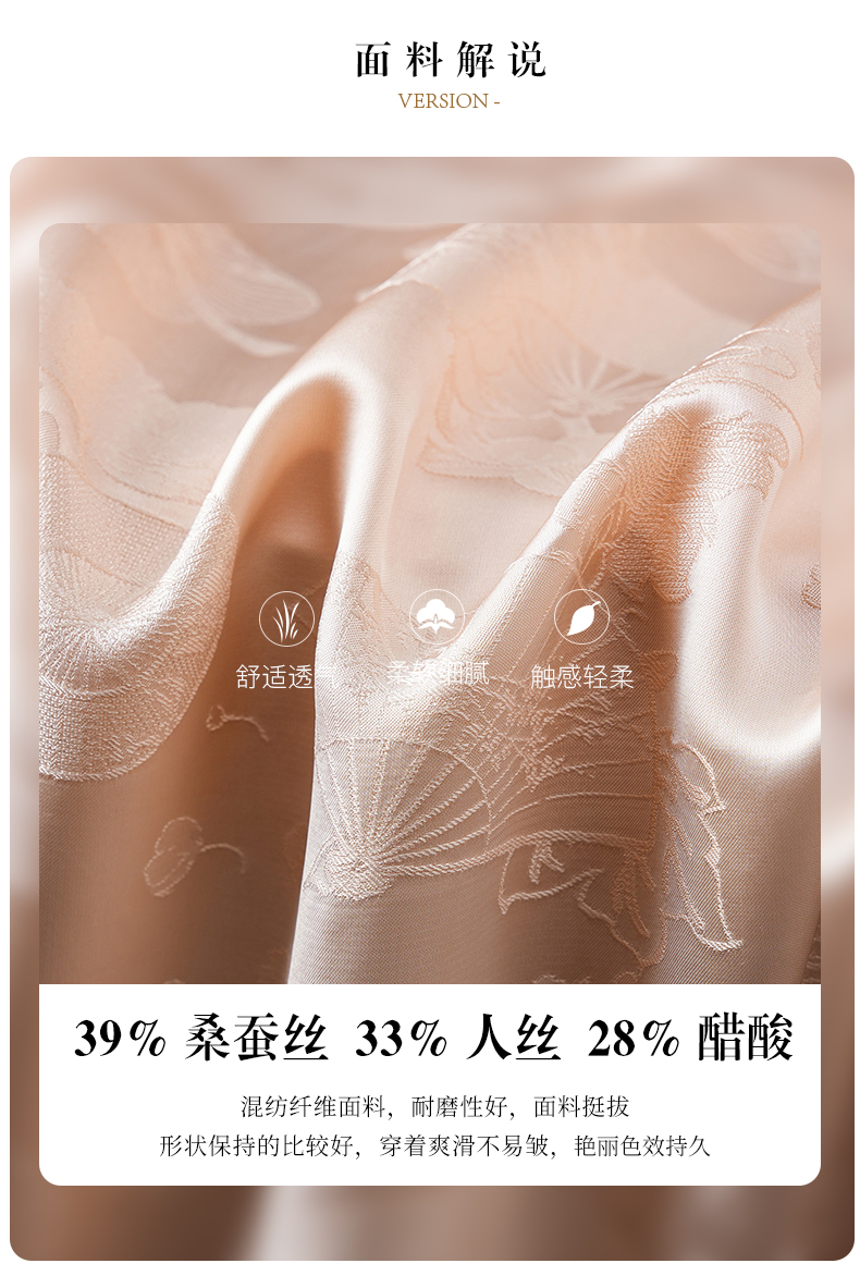 | Material composition | Mulberry silk 39% Other materials 33% Acetate fiber 28% |
