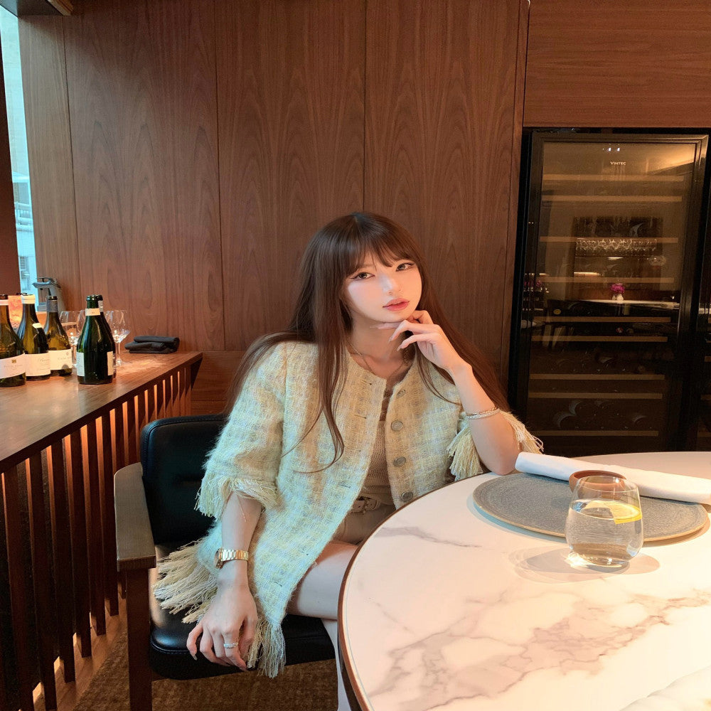 ASAYA4605 – Golden Fringe Tweed Jacket ✨🌼
