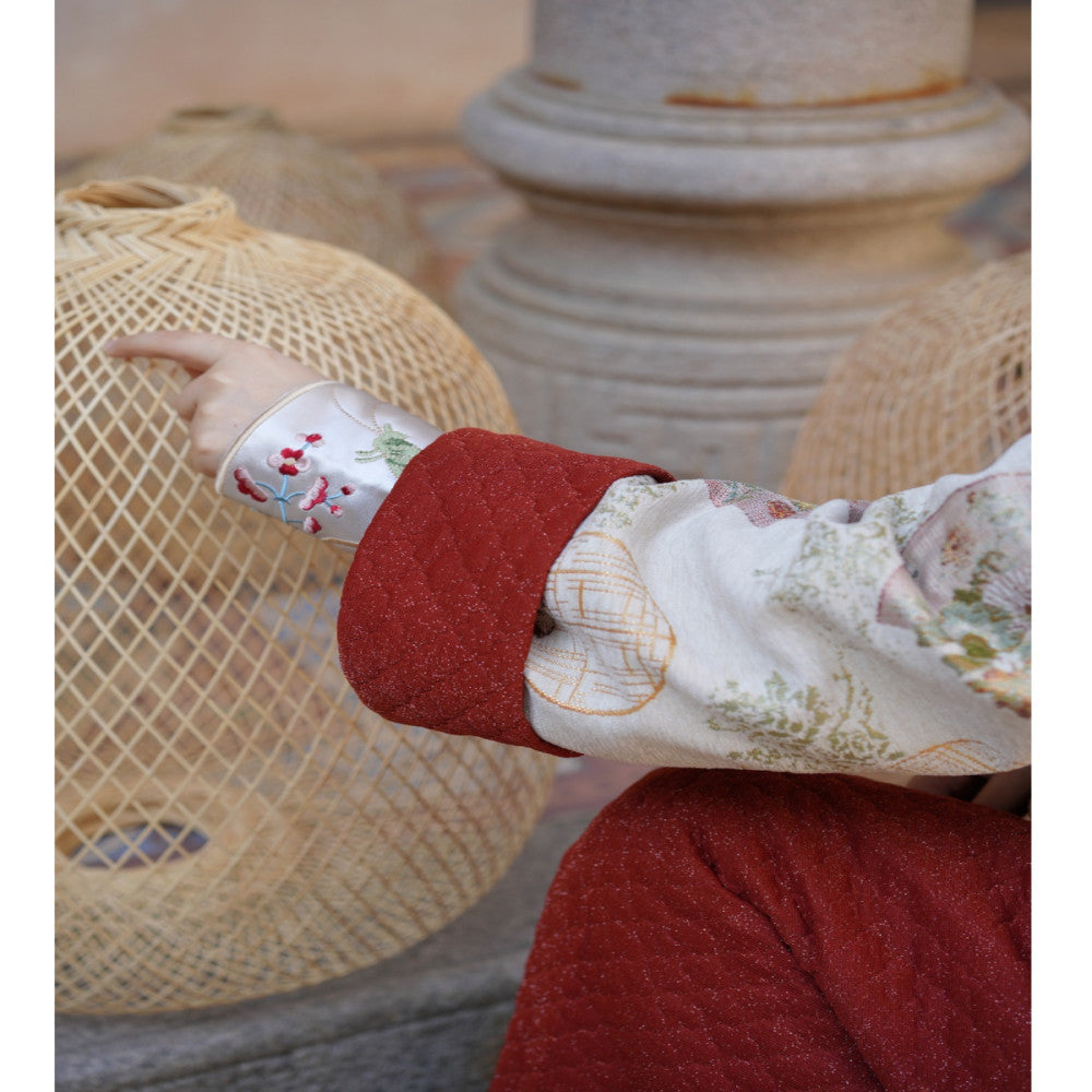 | Color classification | New Fish Tail Half Skirt Edition Red Embroidered Cuffs Bottom Knitted Puff Pinched Half Skirt Snow Neil Plush Cotton Jacket |