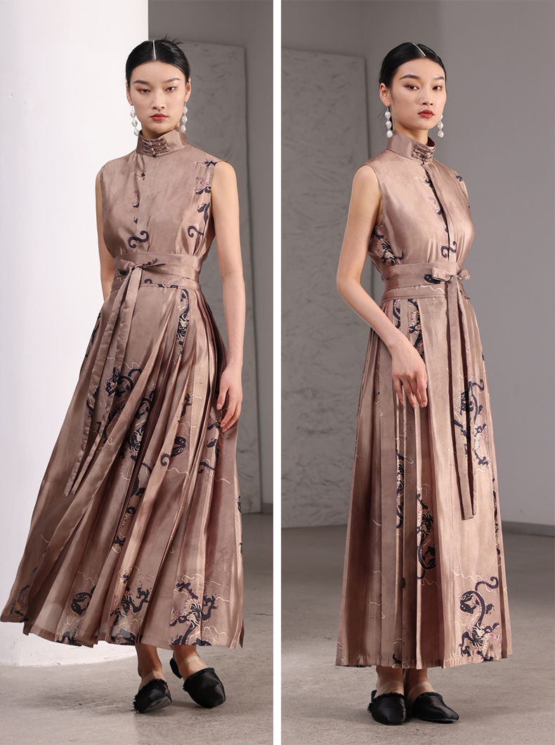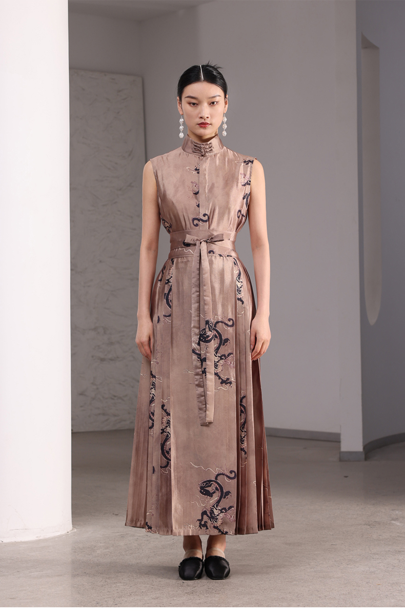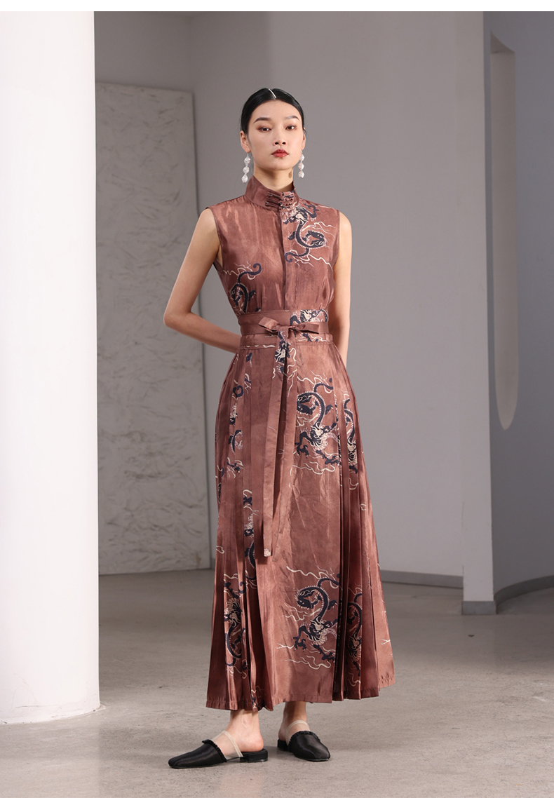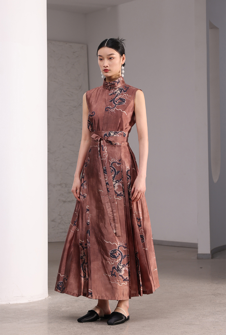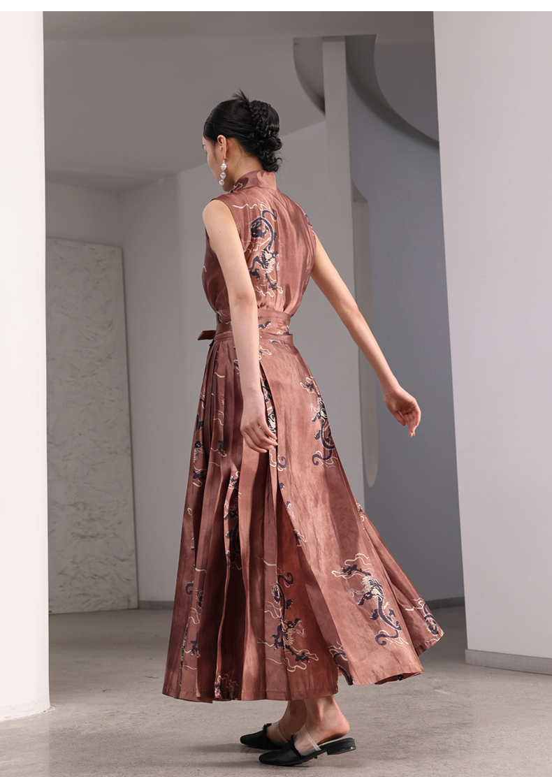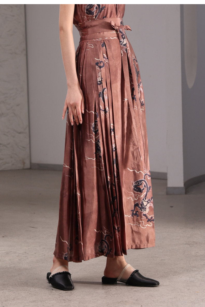 ASAYA3451 Ancient Print Style Pleated Skirt