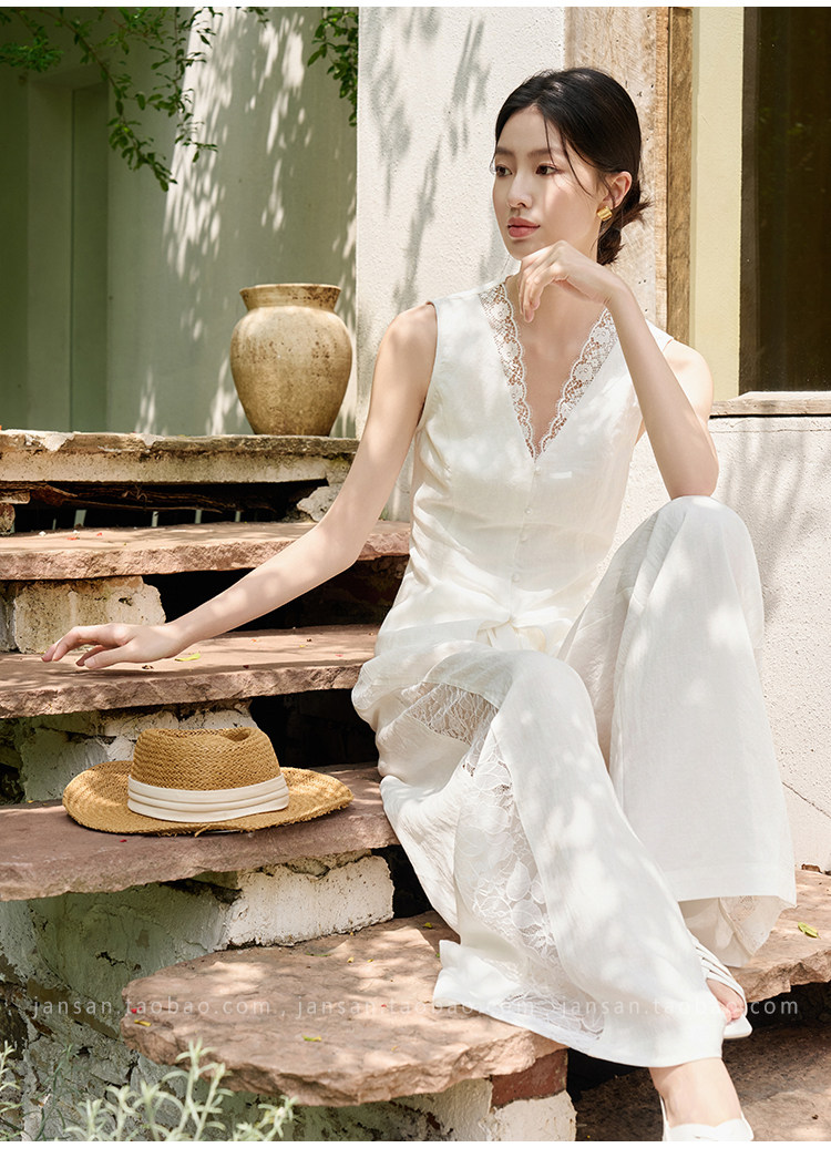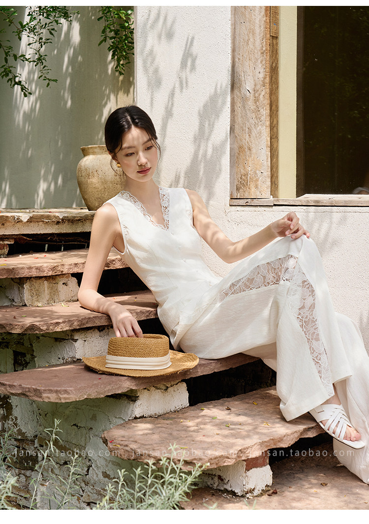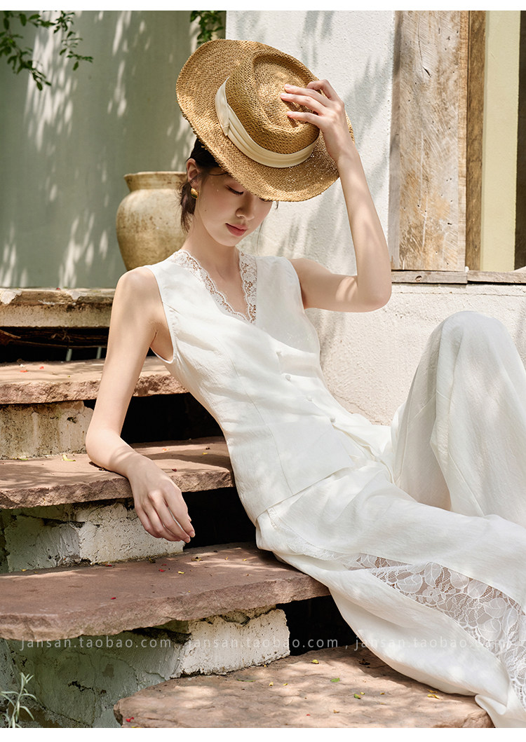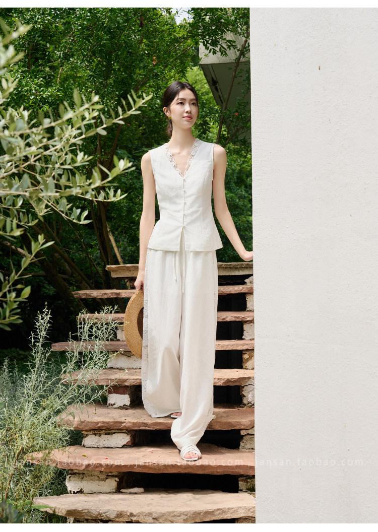 ASAYA5349 – Serene Lace Linen Set 🤍✨