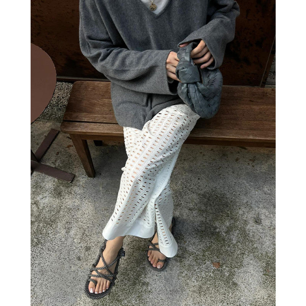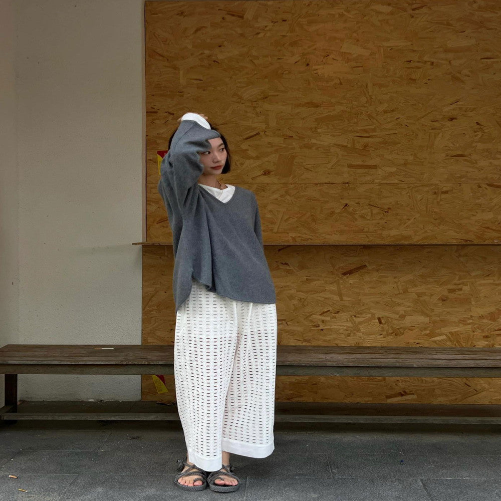 ASAYA4305 - White Hollow Wide-Leg Pants 🤍✨