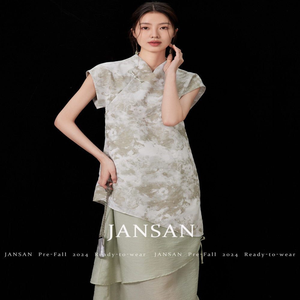 ASAYA4337 - Ink-Wash Jacquard Layered Qipao Dress 🌿🕊💫