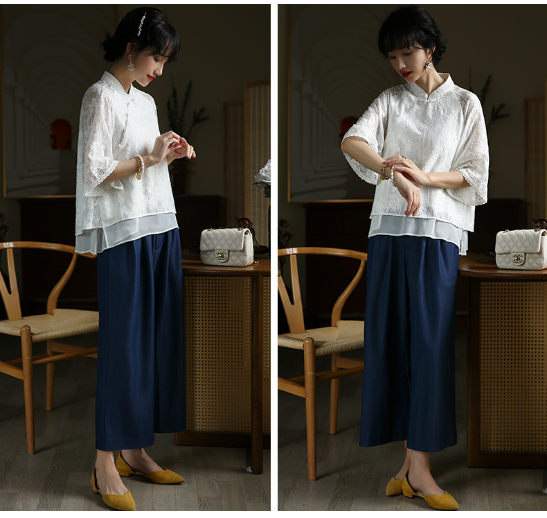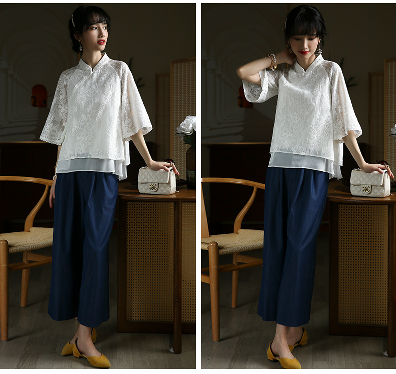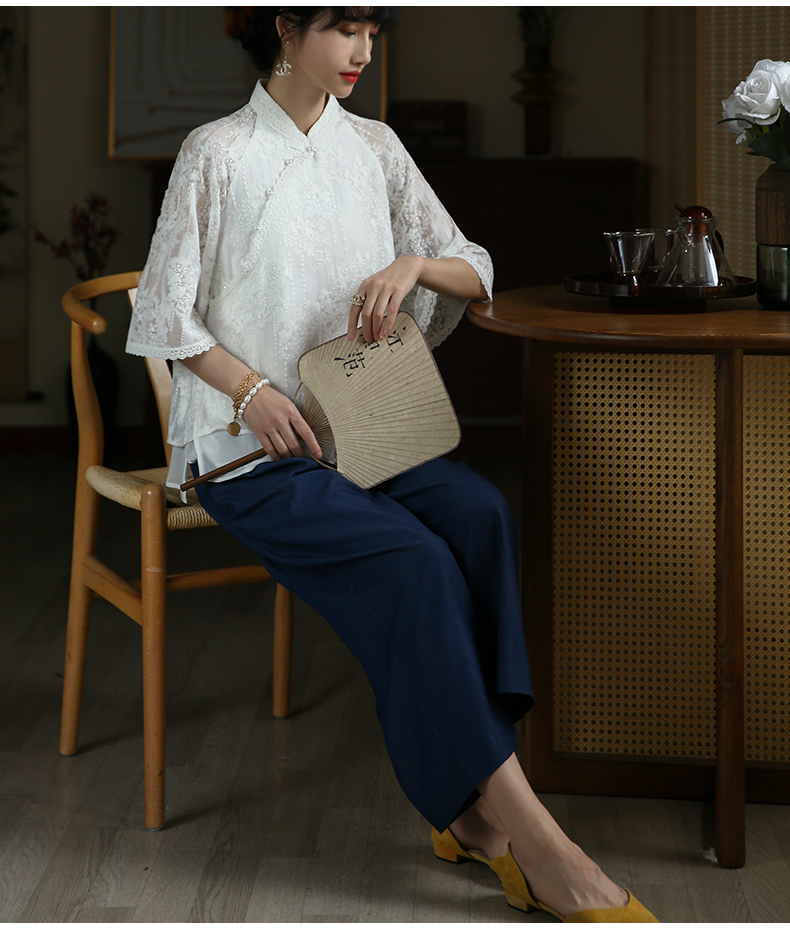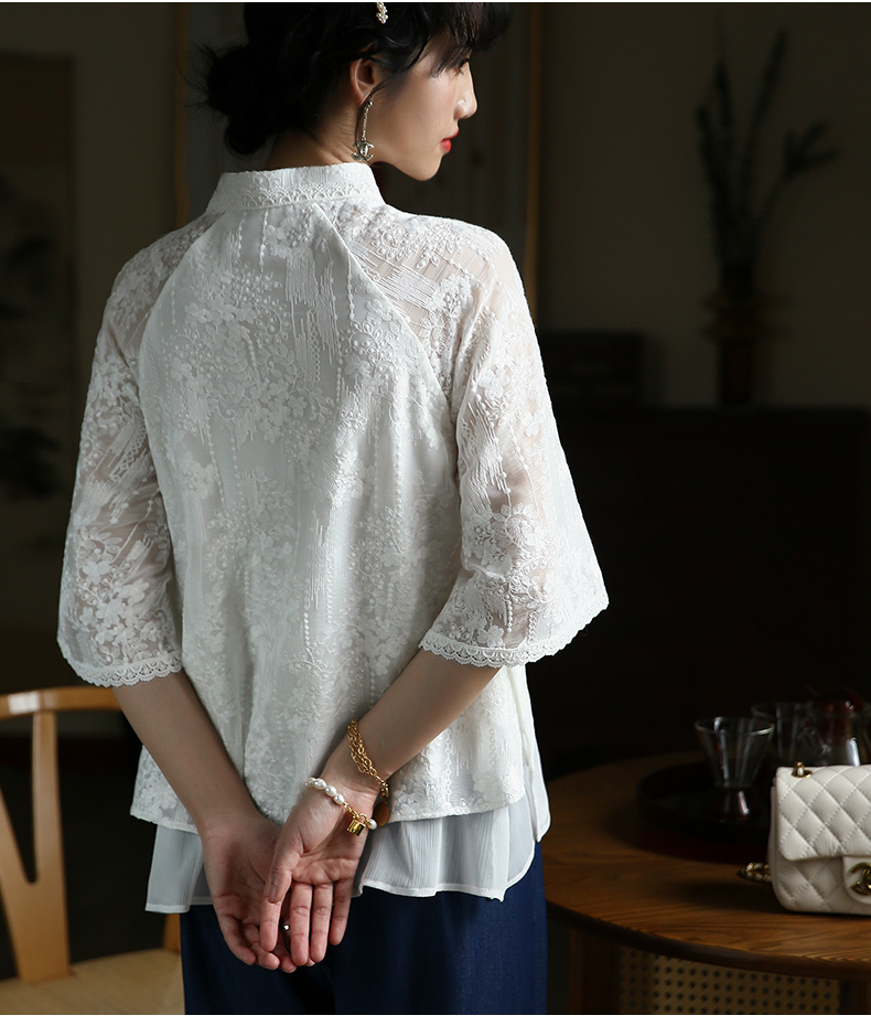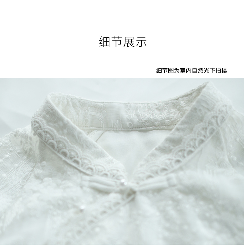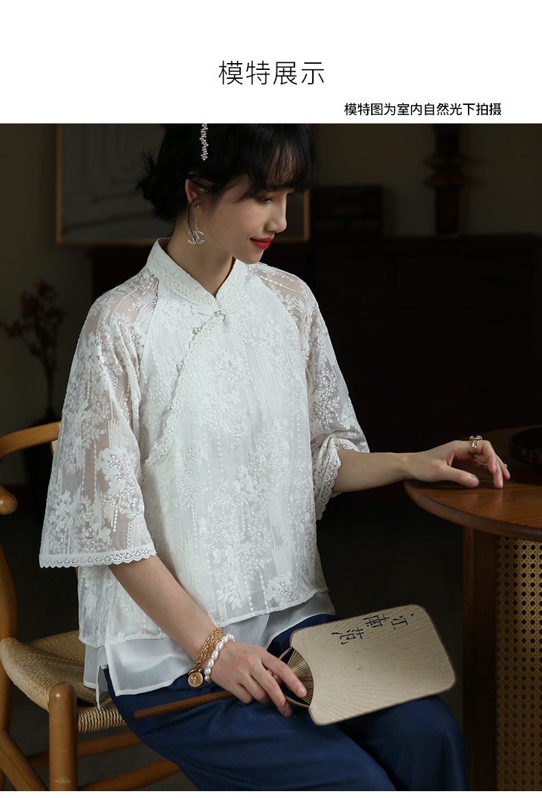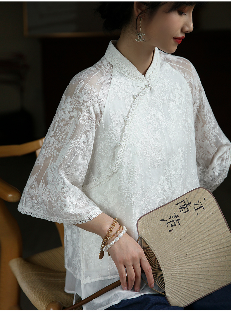 ASAYA3446 White lace modified cheongsam short top Republic of China style retro elegant fresh tea dress shirt