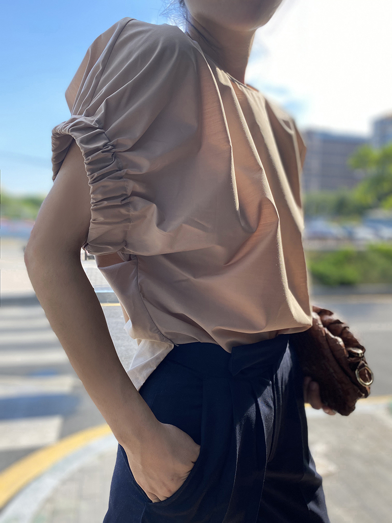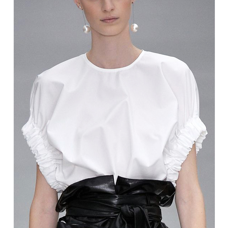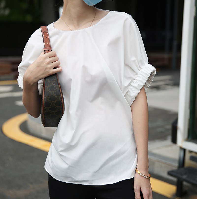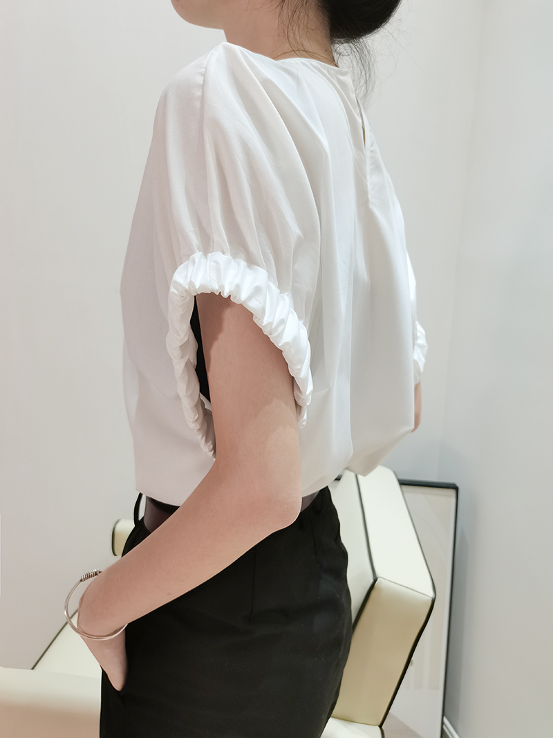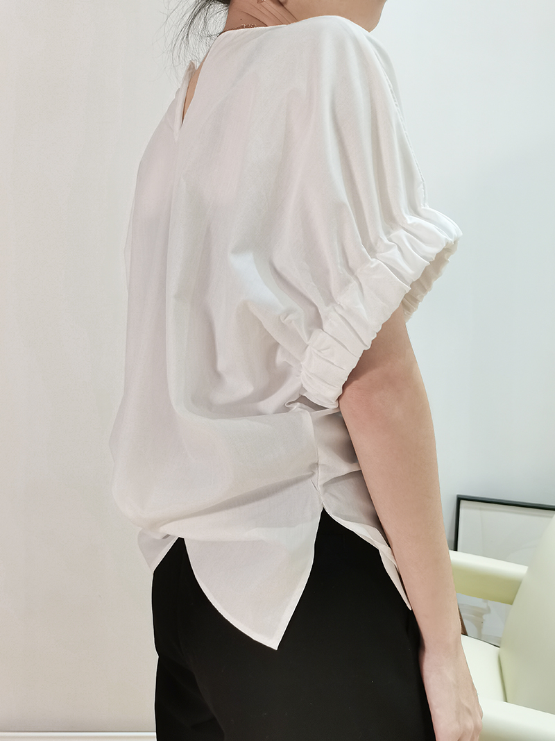 ASAYA3060 unique sleeve cotton shirt short-sleeved top white anti-wrinkle shirt
