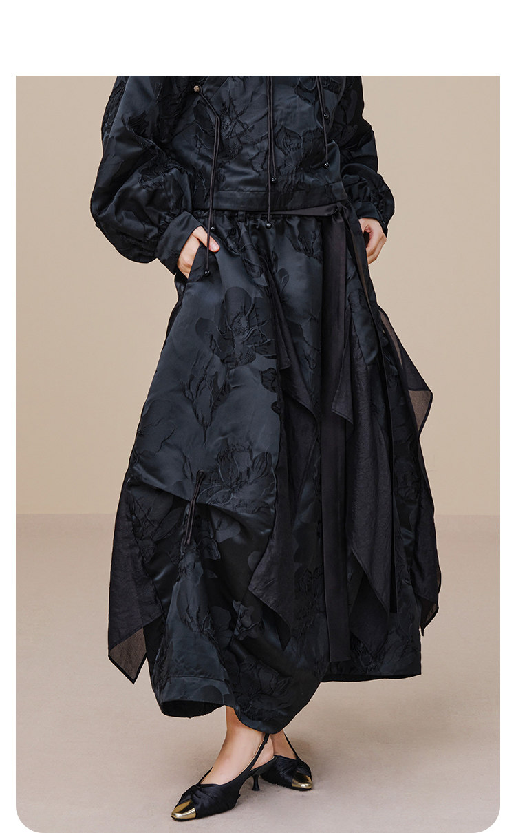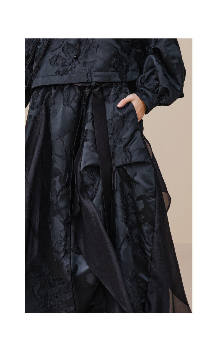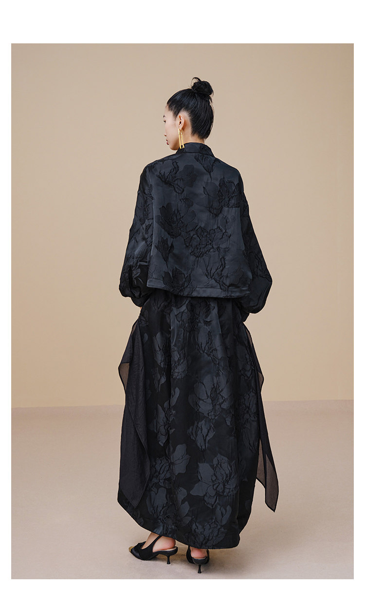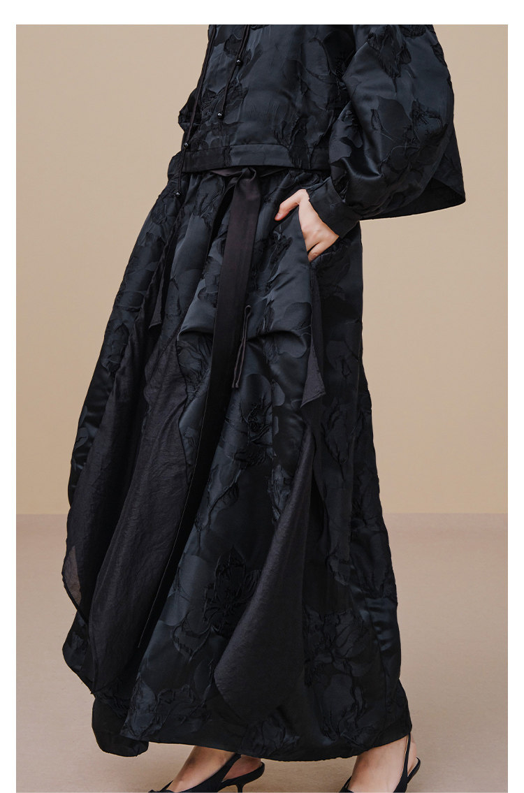 ASAYA5517 – Midnight Bloom Jacquard Skirt 🖤🌑