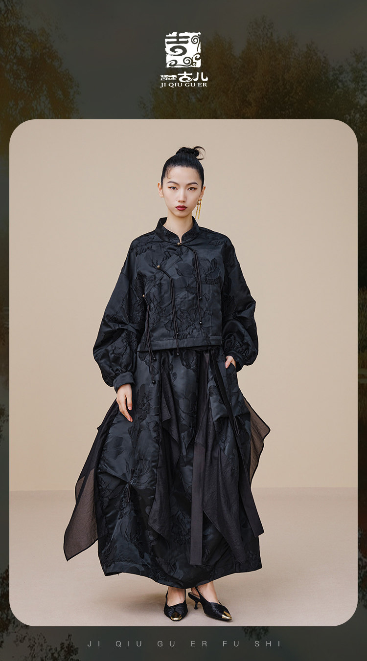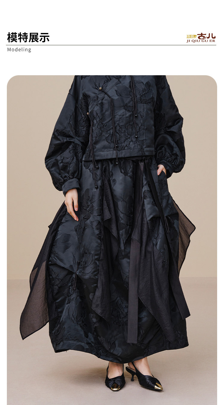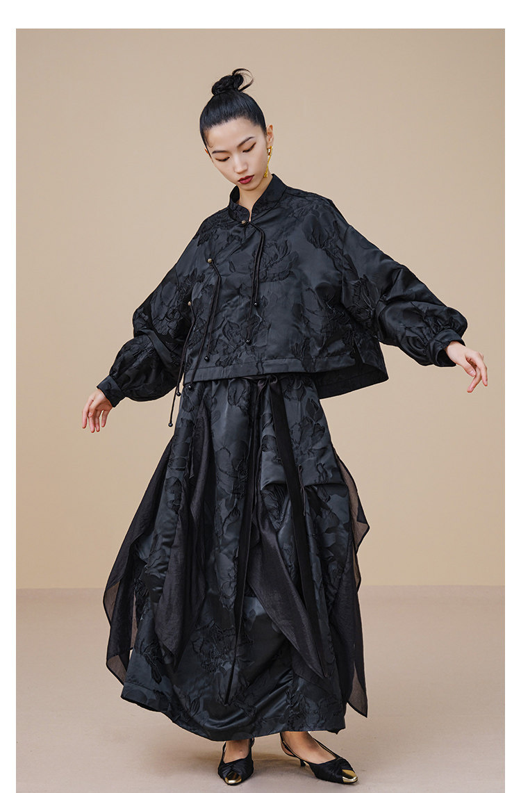 ASAYA5517 – Midnight Bloom Jacquard Skirt 🖤🌑